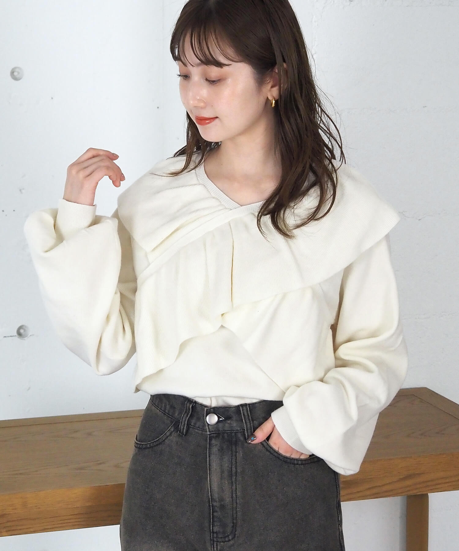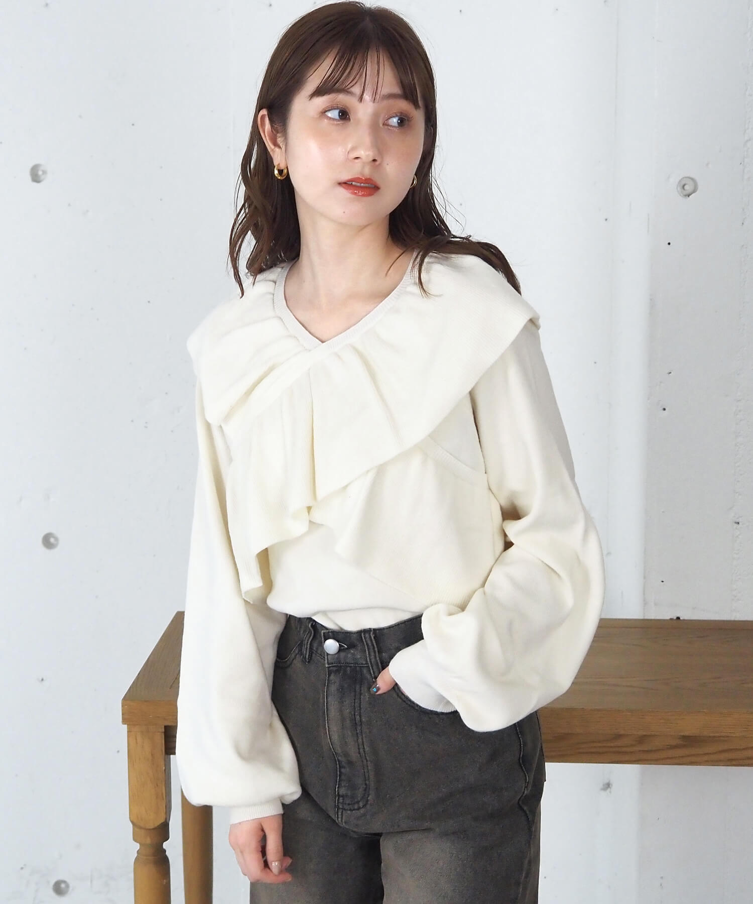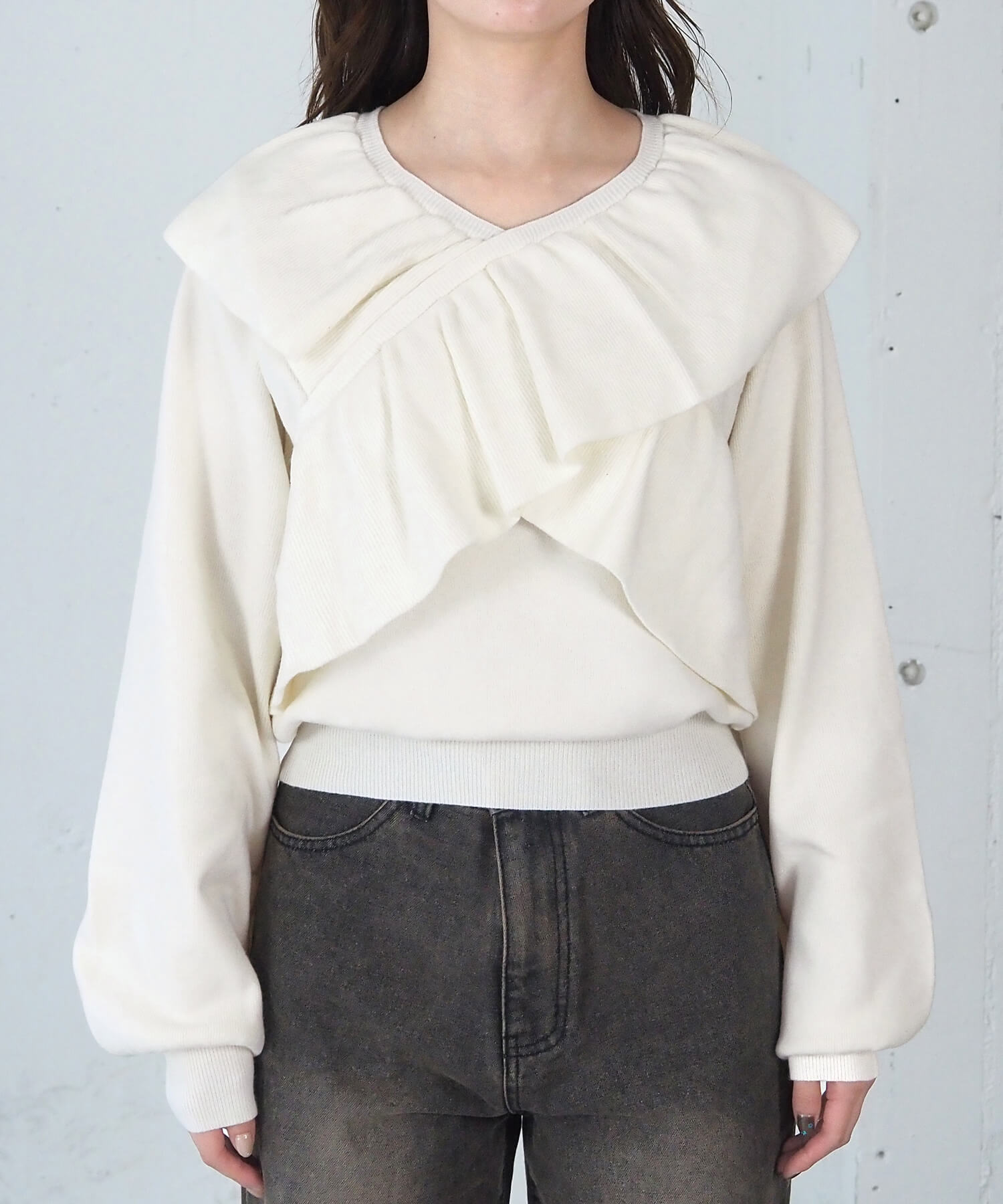 ・Vネックで顔周りをすっきりと。可愛いだけじゃない、クールさをプラスしたデザインで大人っぽい着こなしがかないます。