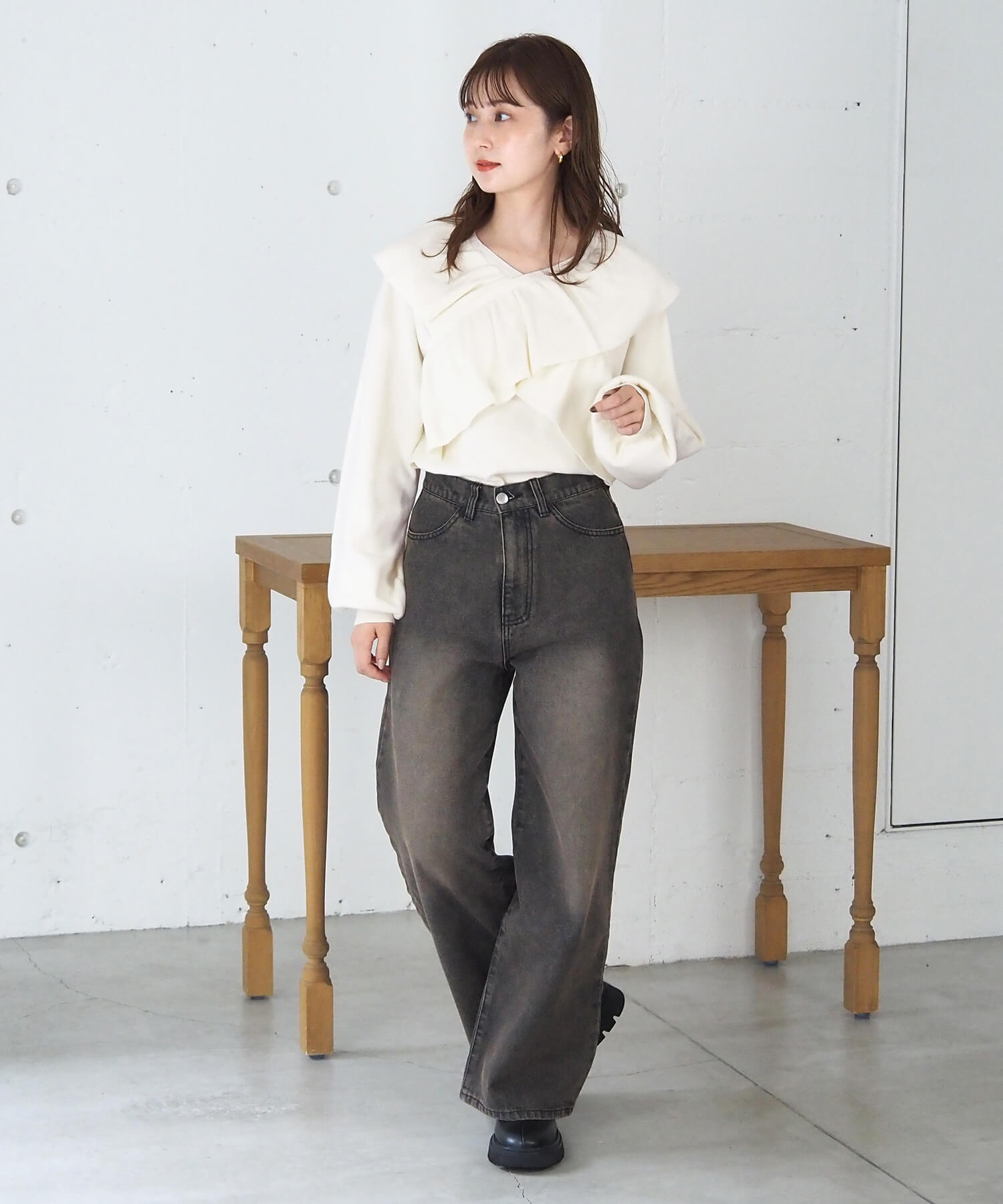 ・デニムでカジュアルに。フレアやワイド、シルエット問わず高相性です。