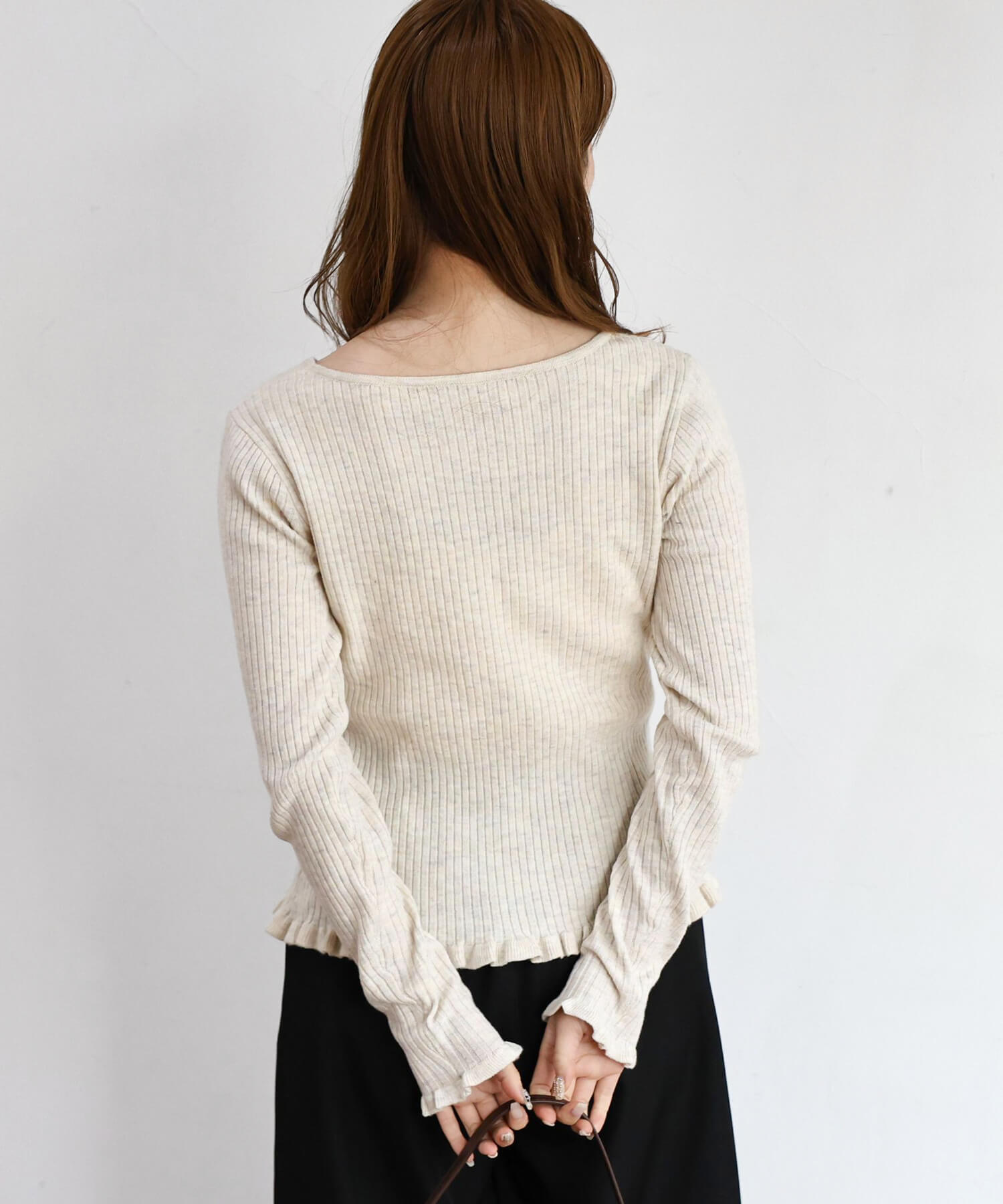 ・裾と袖口に施されたフリルでさりげなく華やかさもプラス。