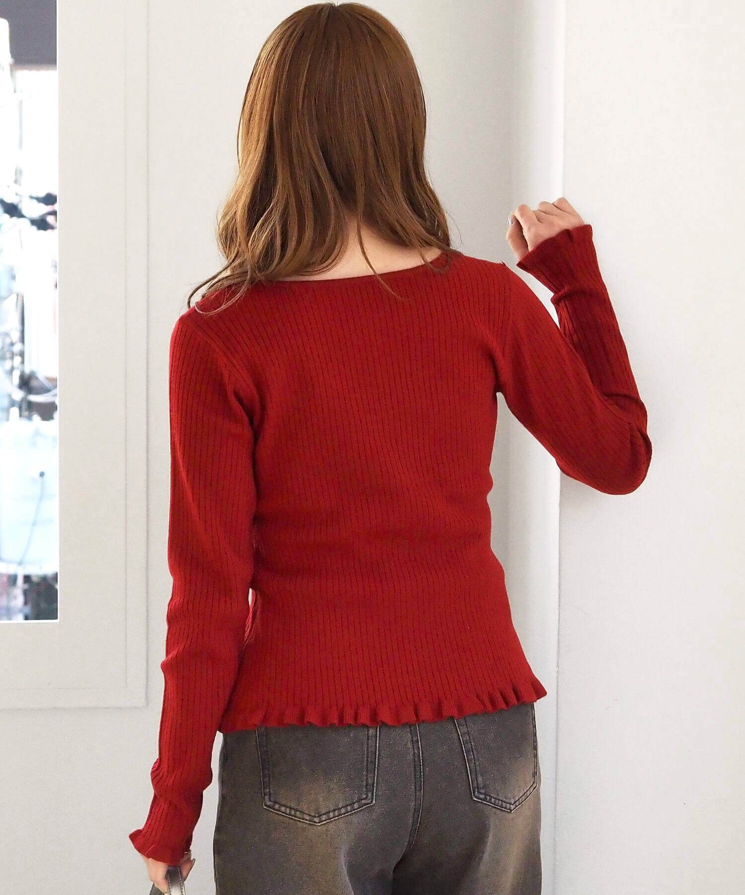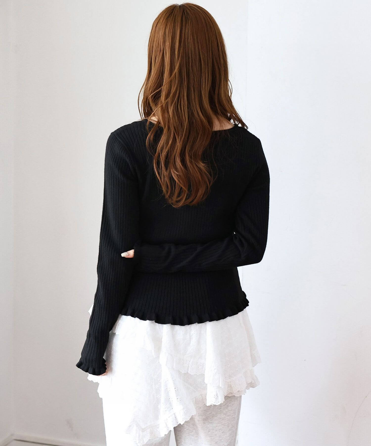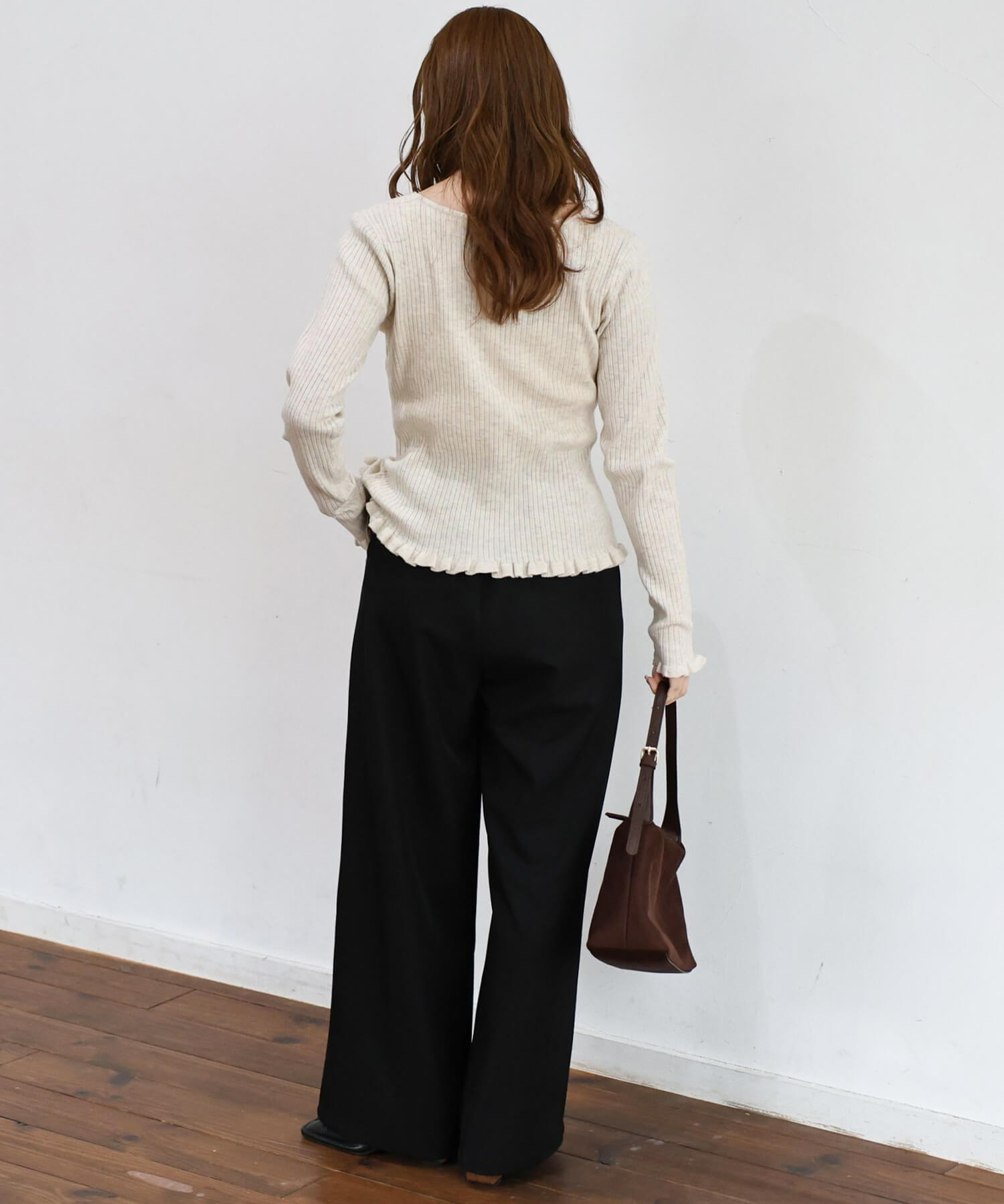・リブの縦長効果と程よいフィット感で、すっきりとした着こなしが叶います。