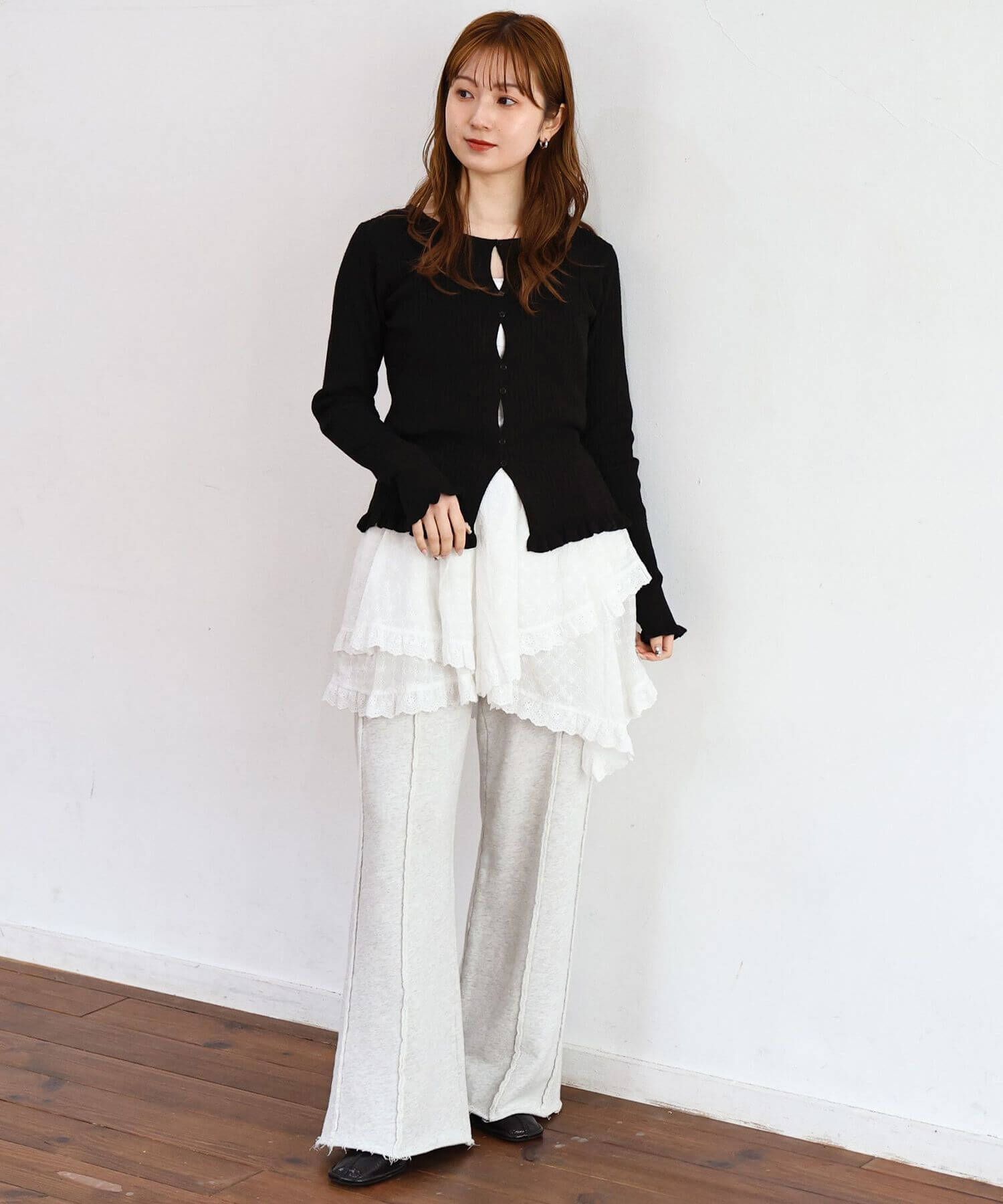 ・ワンピースやレーススカートなど、旬のレイヤードスタイルにも最適です。