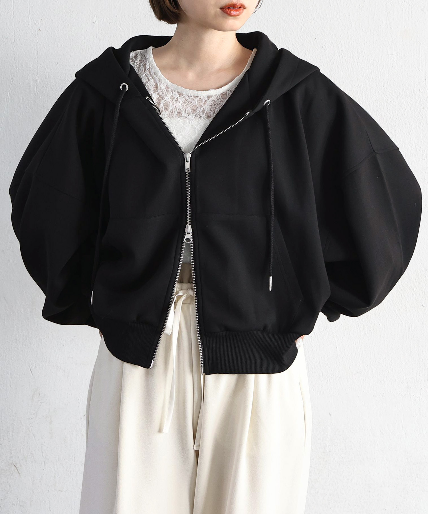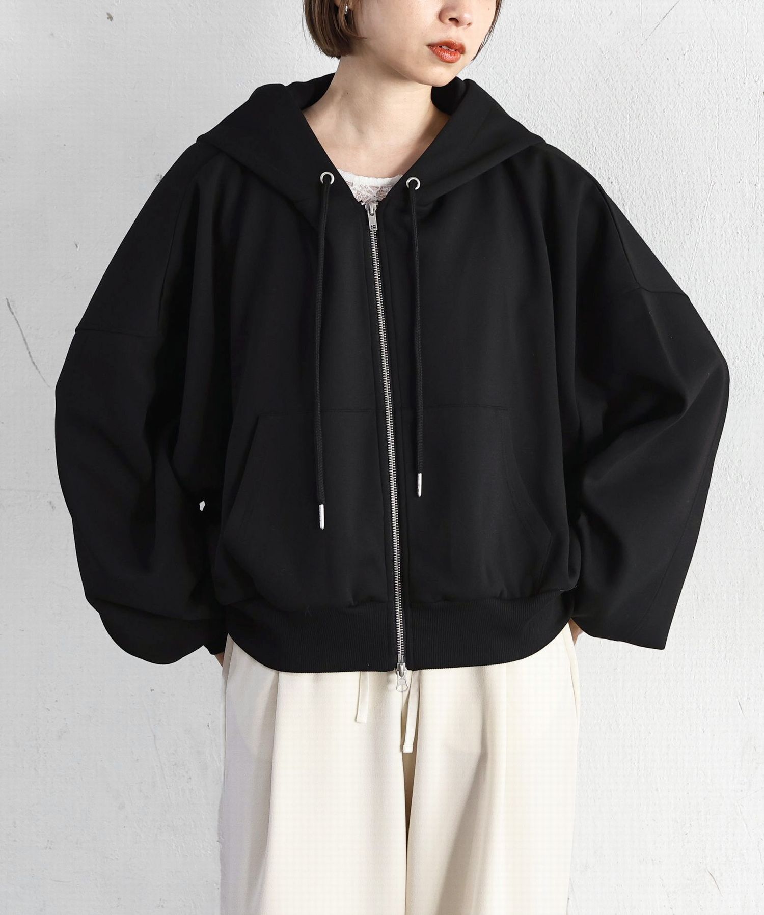 ・フロントはダブルジップで機能性も◎シルエットのアレンジも楽しめます。