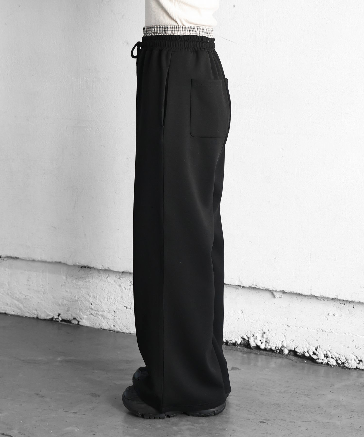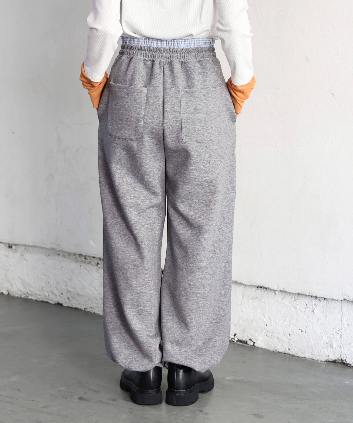 ・上品なハリが特徴のダンボール素材を使用したスウェットパンツです。
