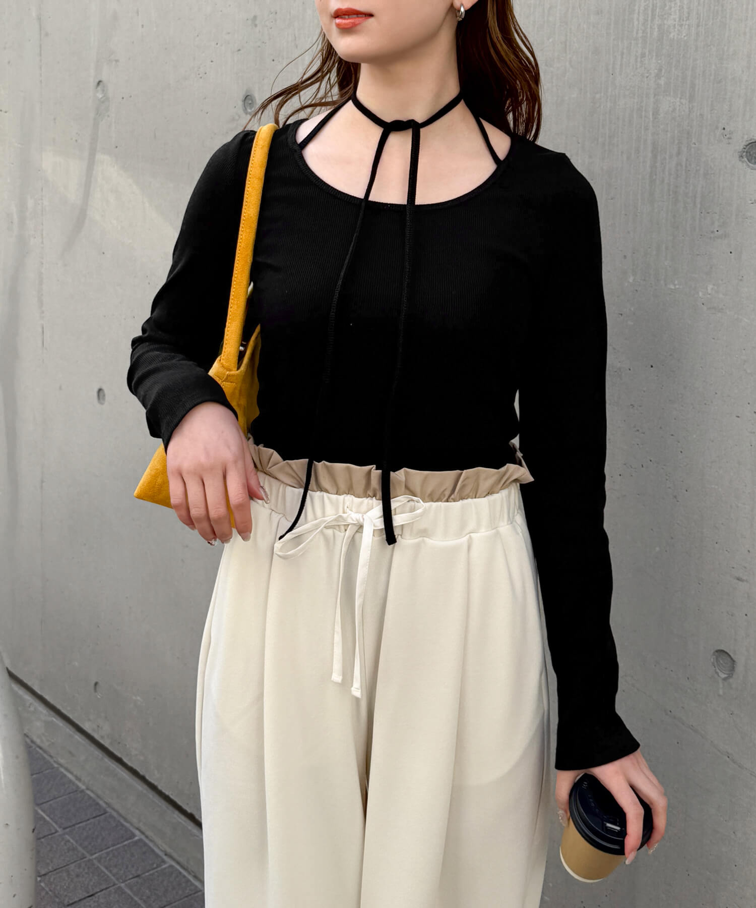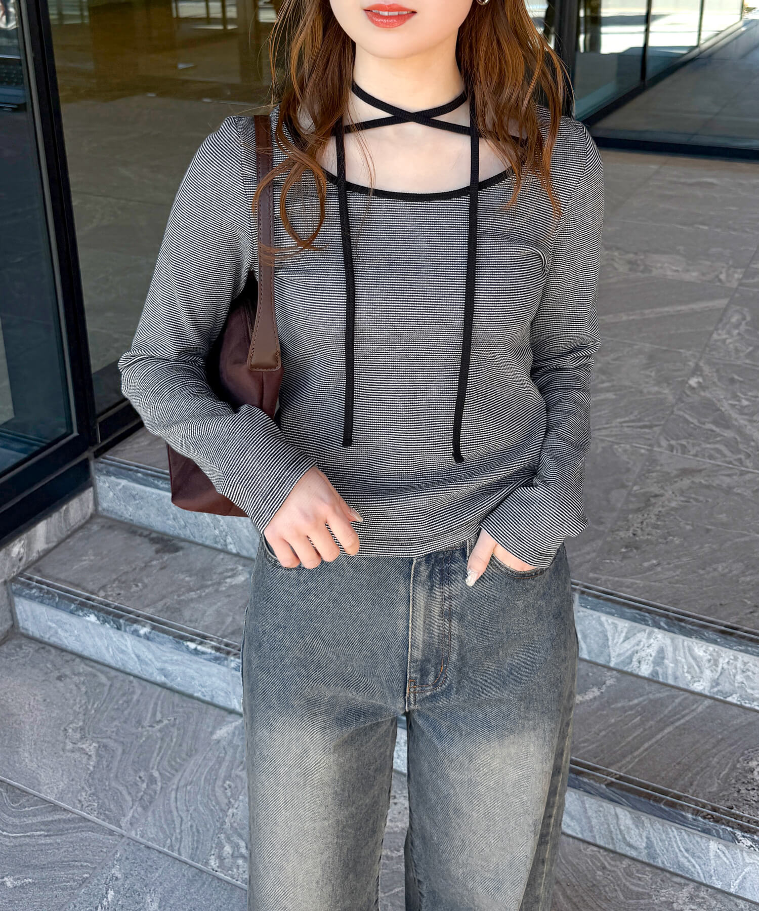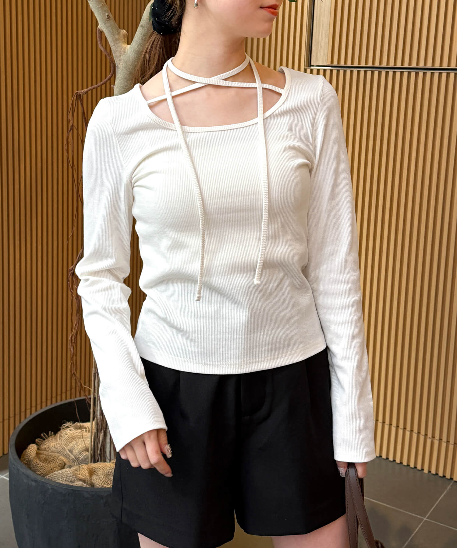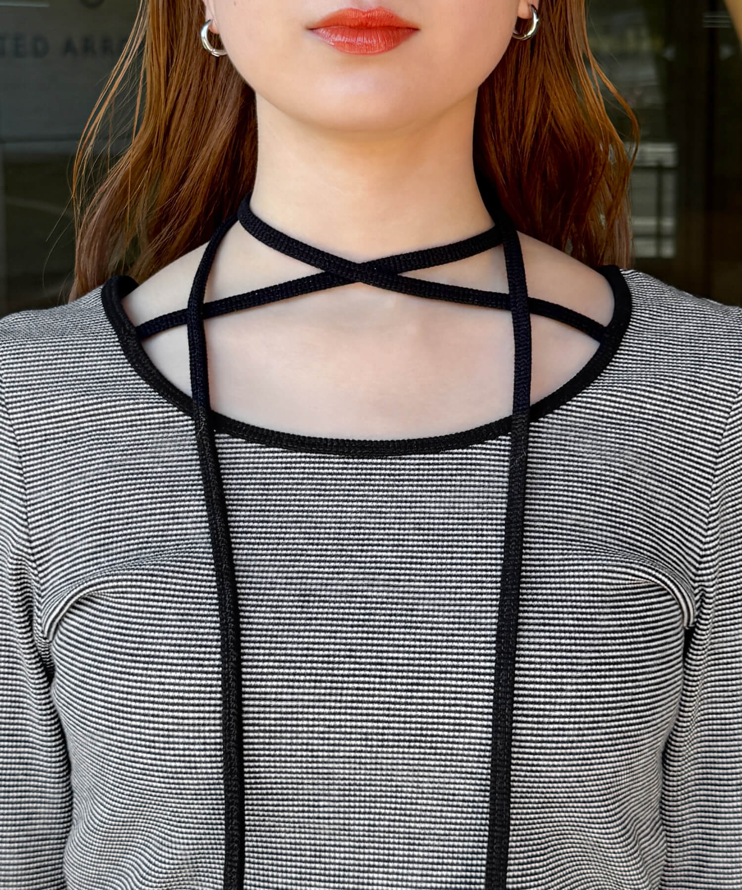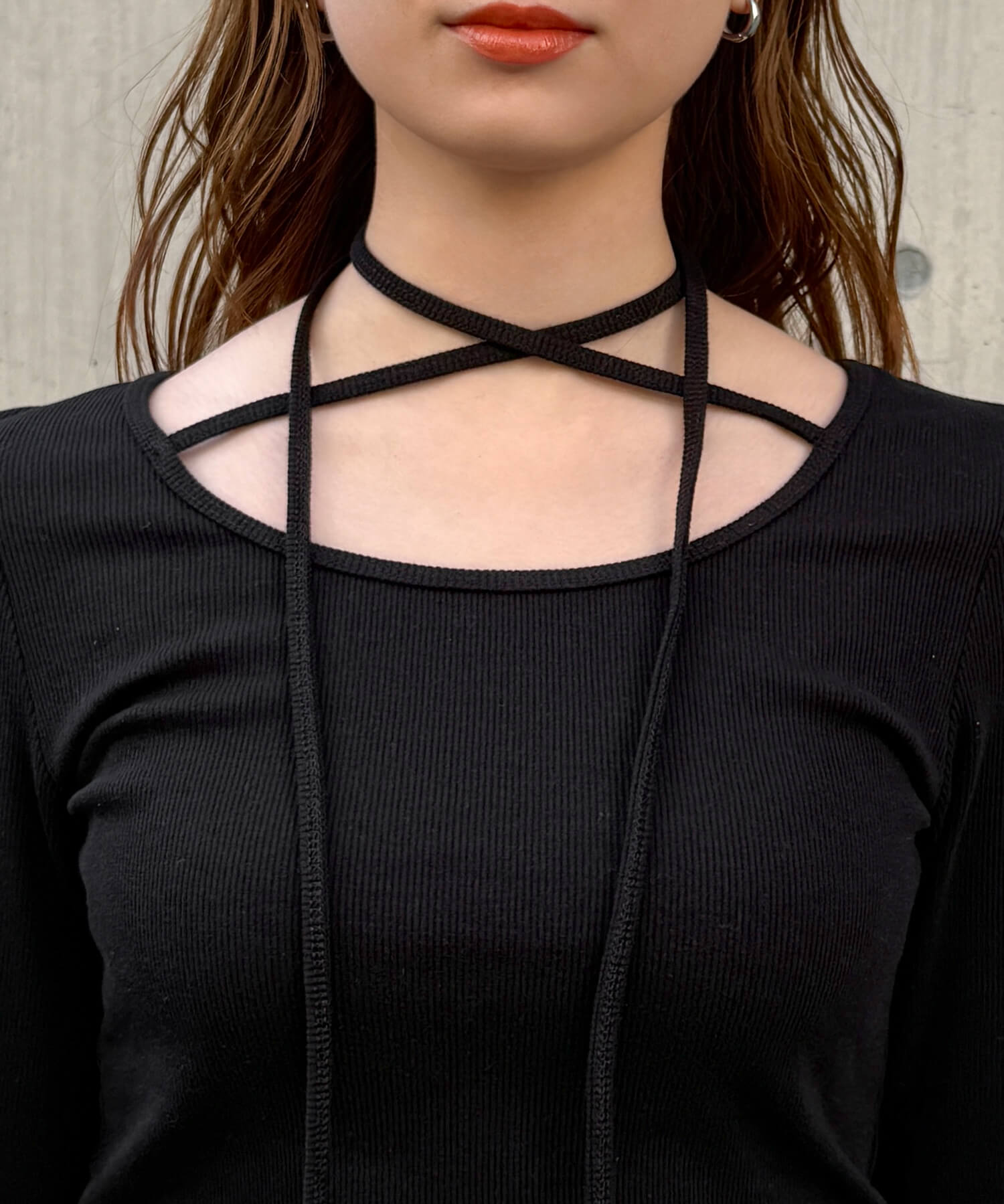・ベーシックな長袖トップスにチョーカーがドッキングした、デザインカットソーです。