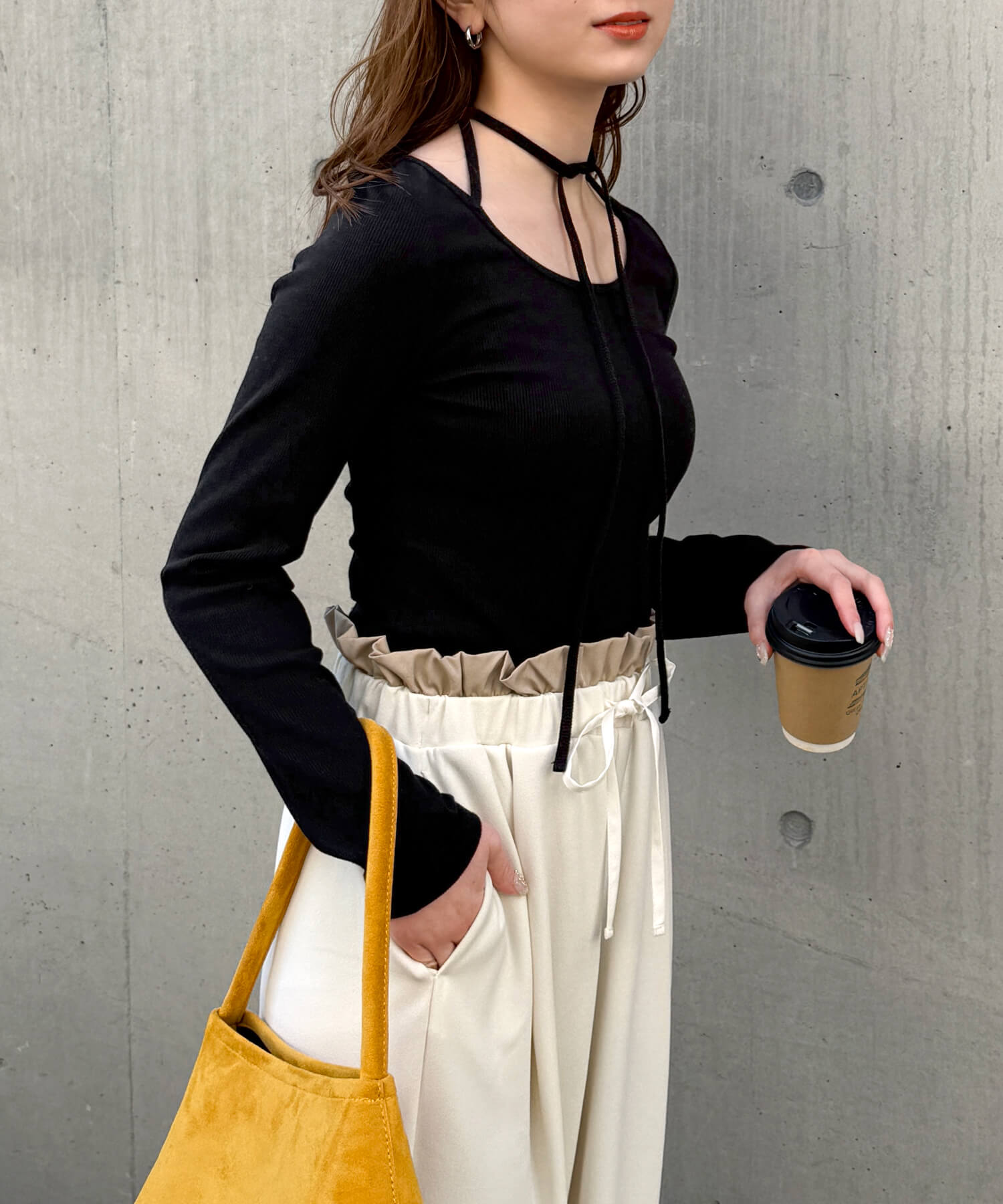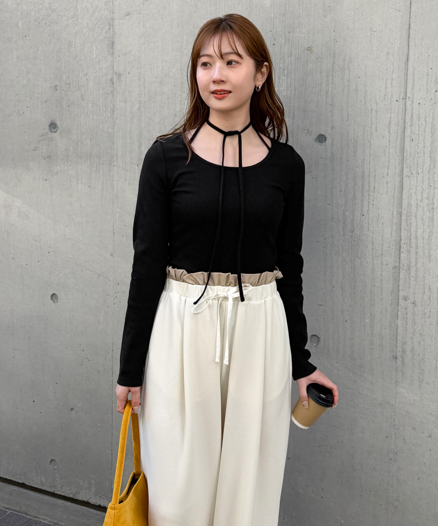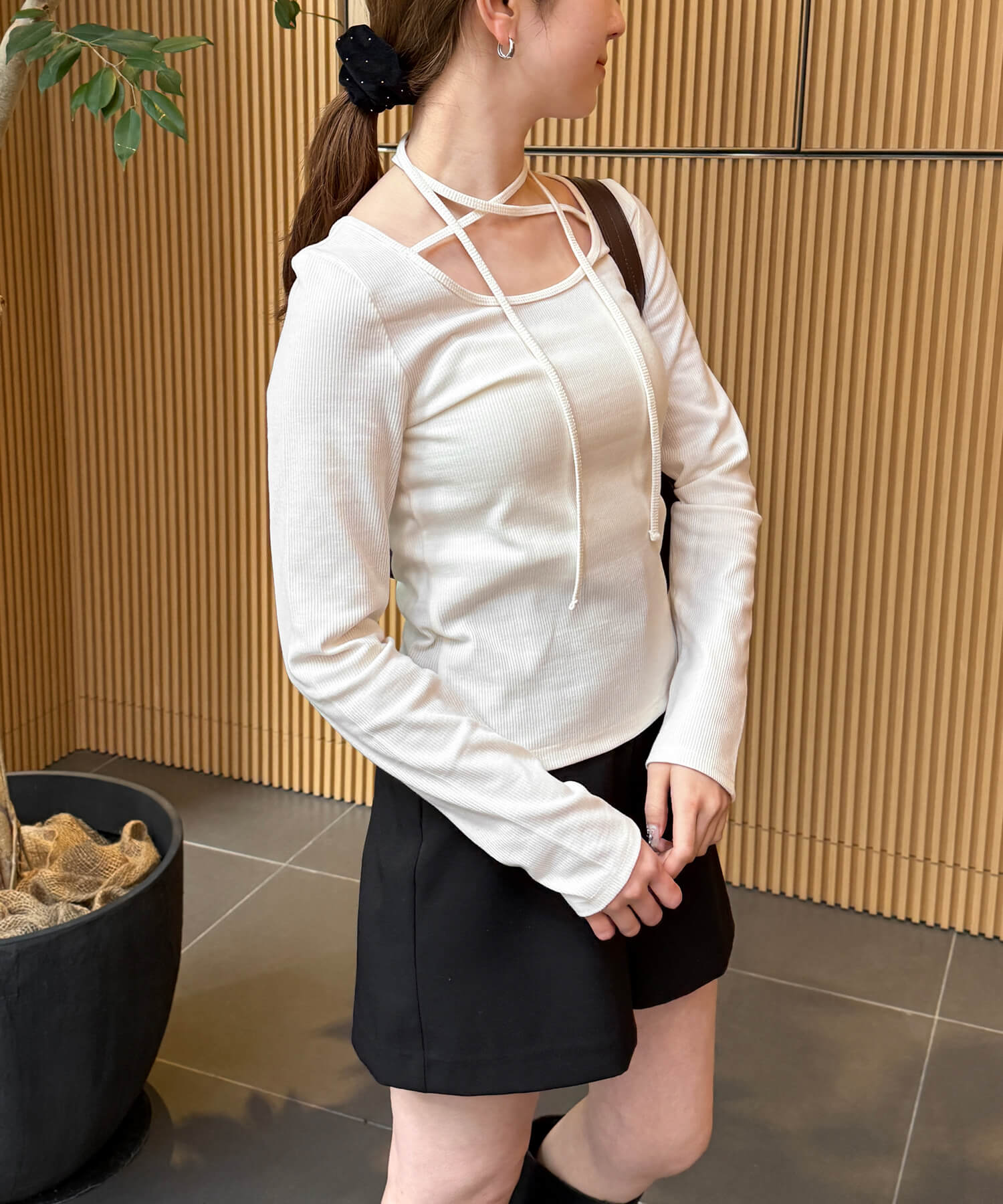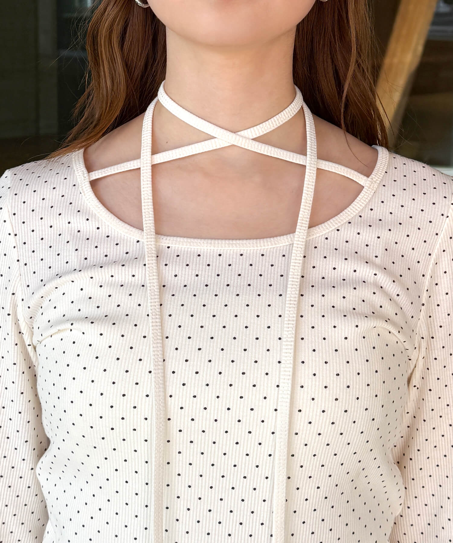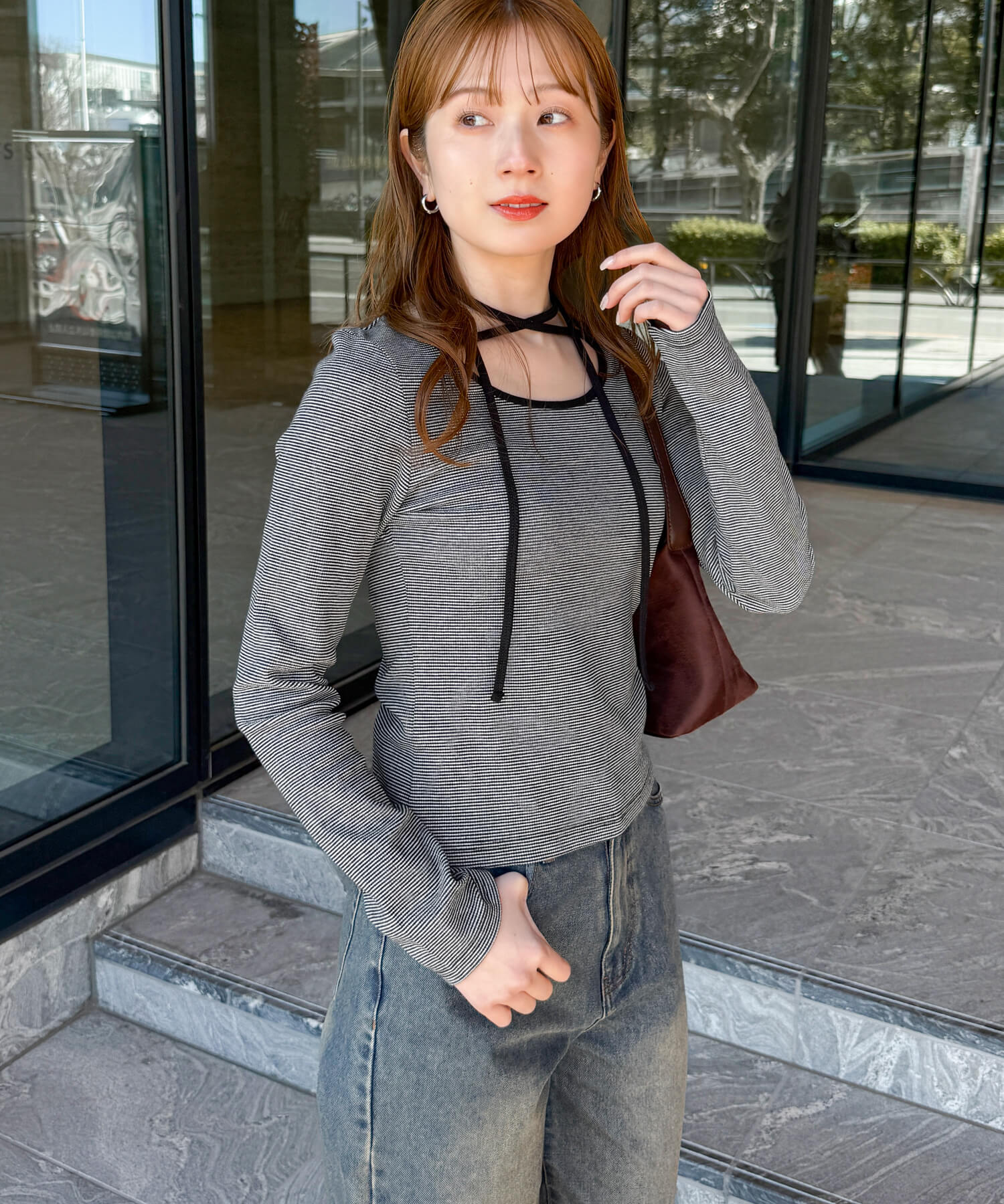 ・ベーシックな長袖トップスにチョーカーがドッキングした、デザインカットソーです。