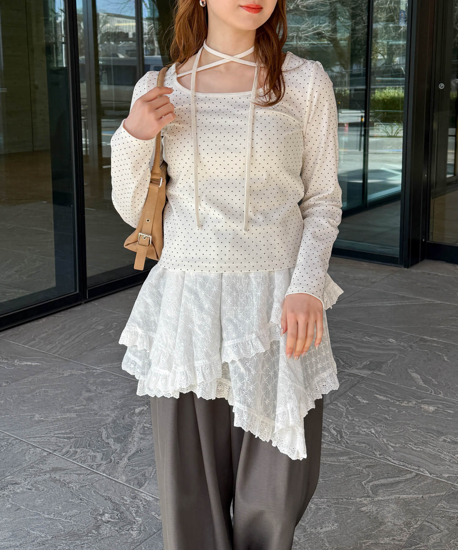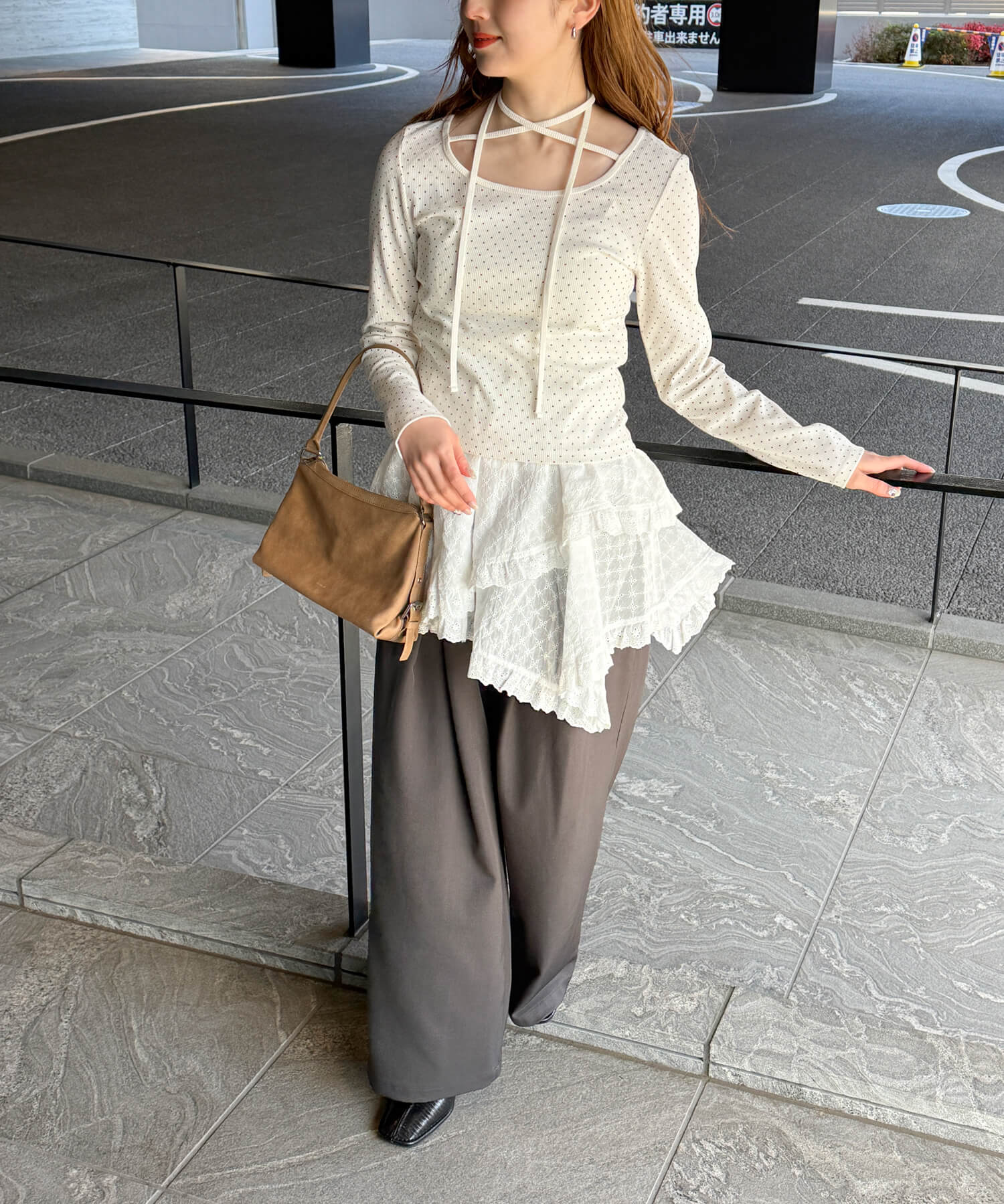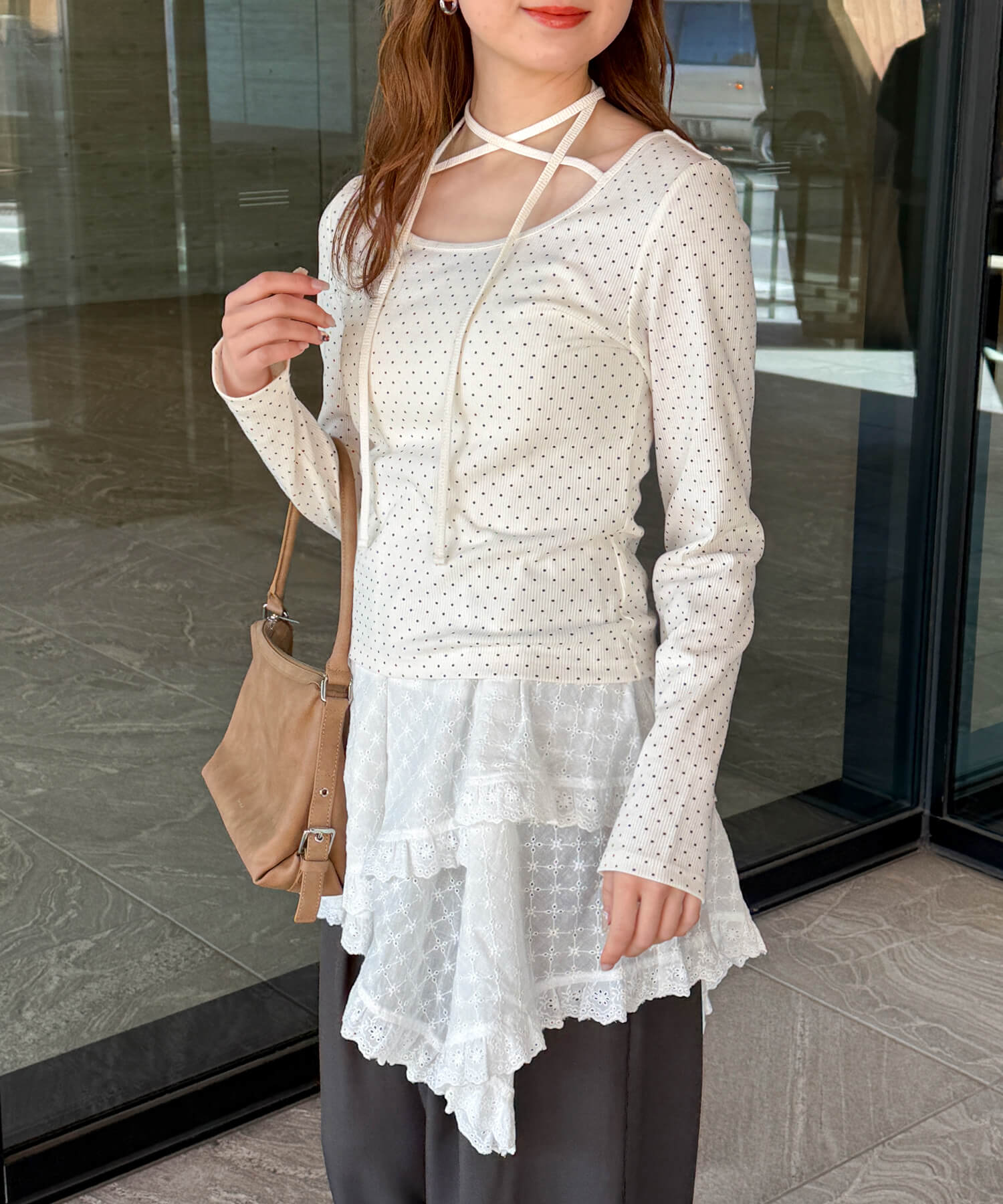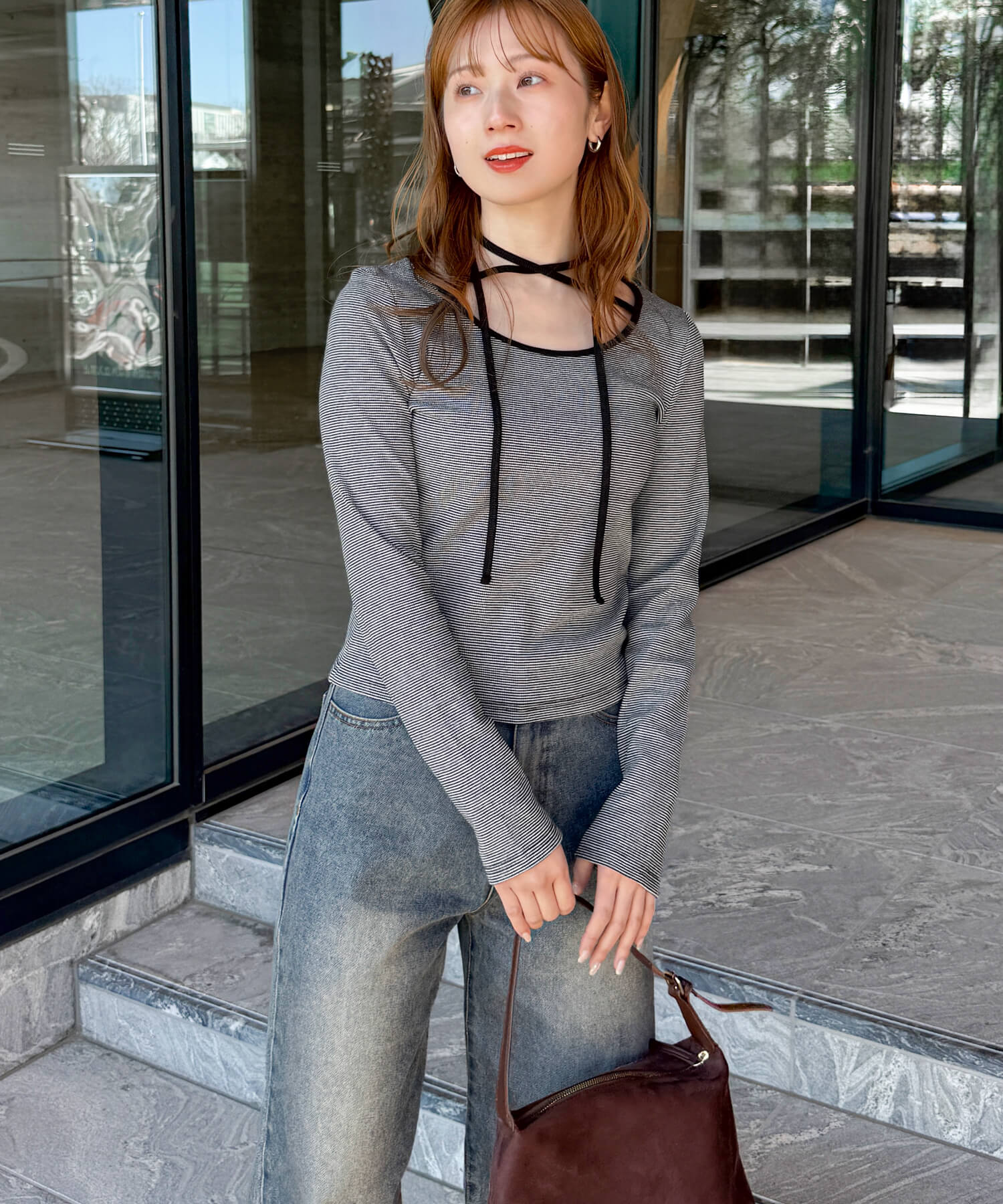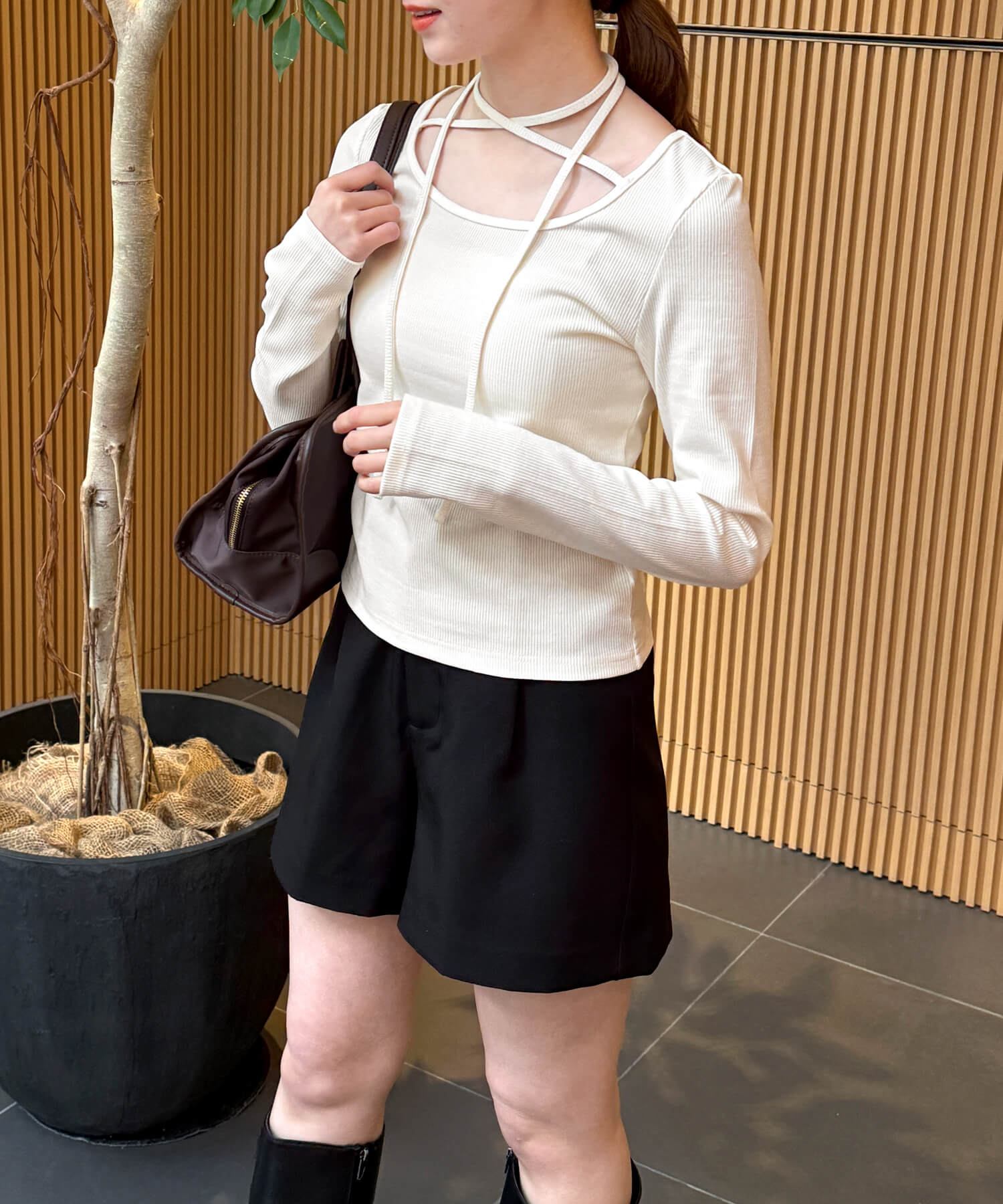 ・ベーシックな長袖トップスにチョーカーがドッキングした、デザインカットソーです。