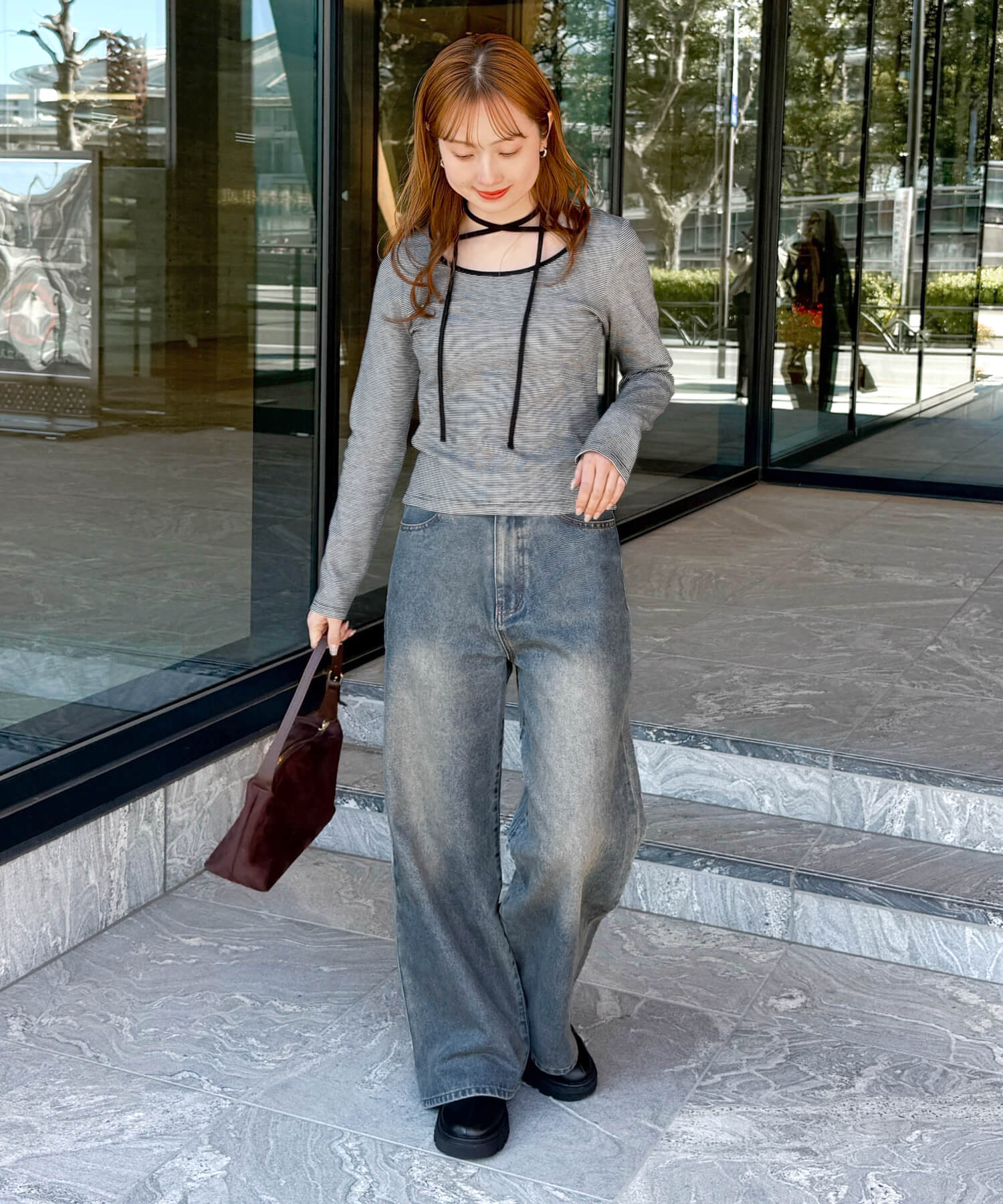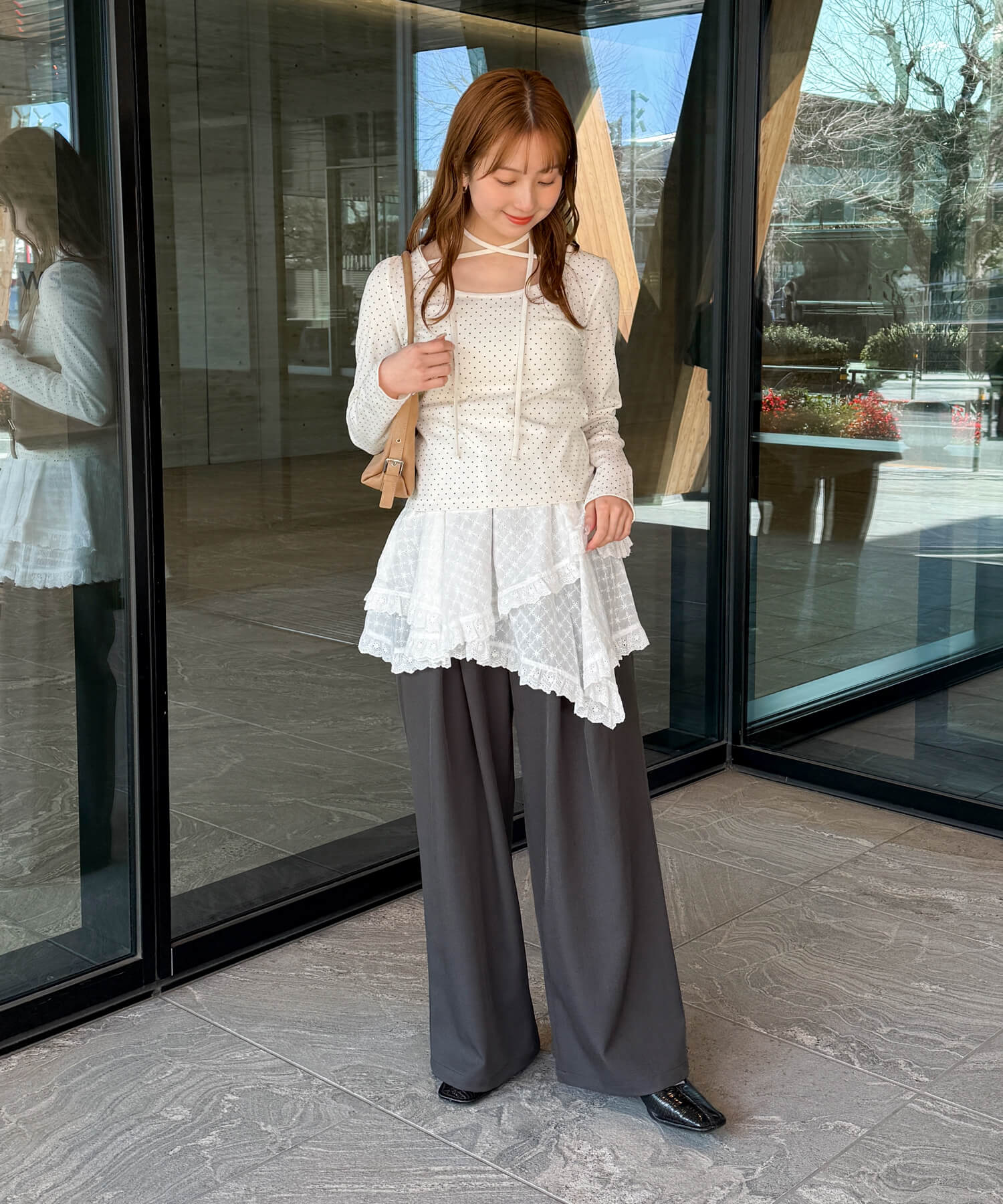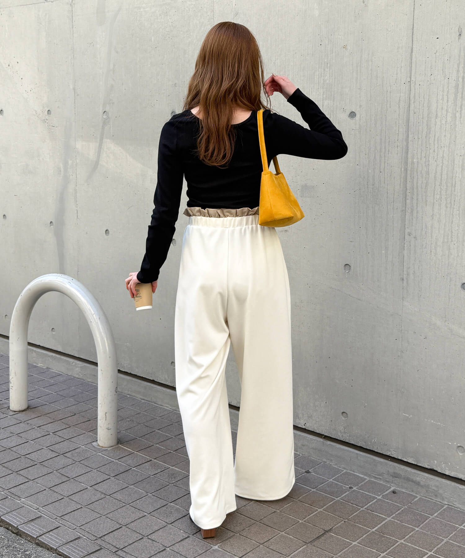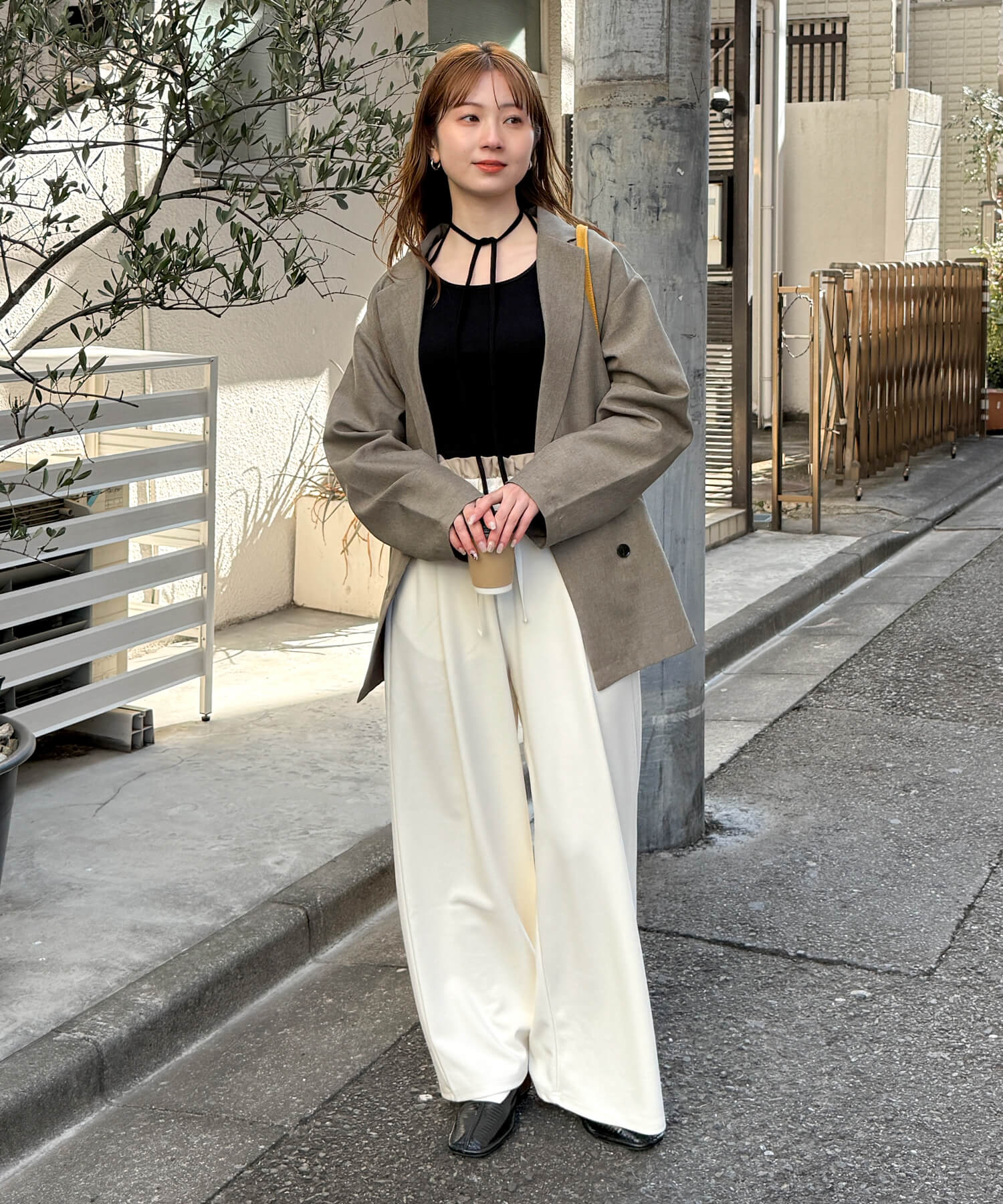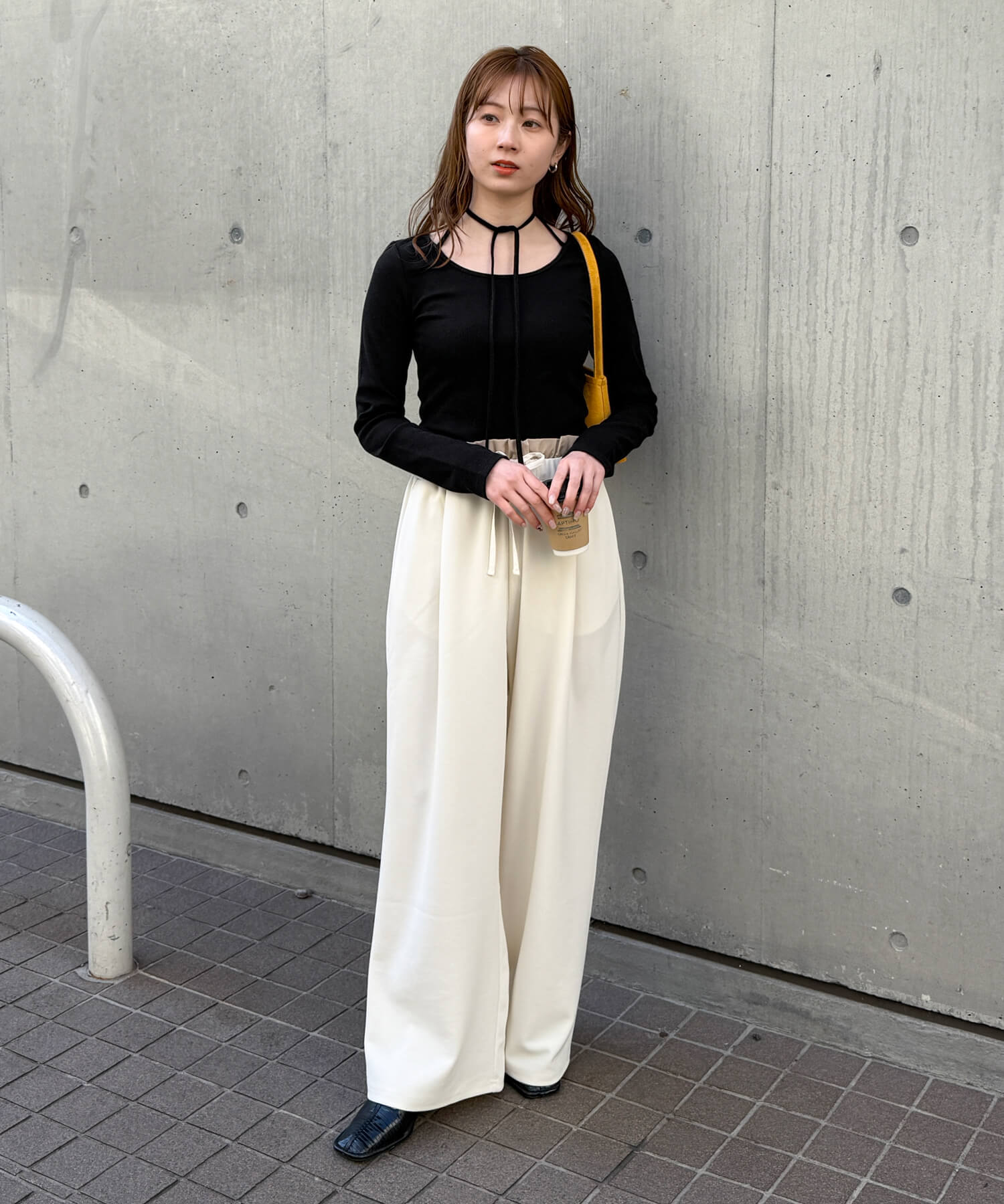 ・すっきり見えするデザインなので、トレンドのワイドパンツと好相性です。