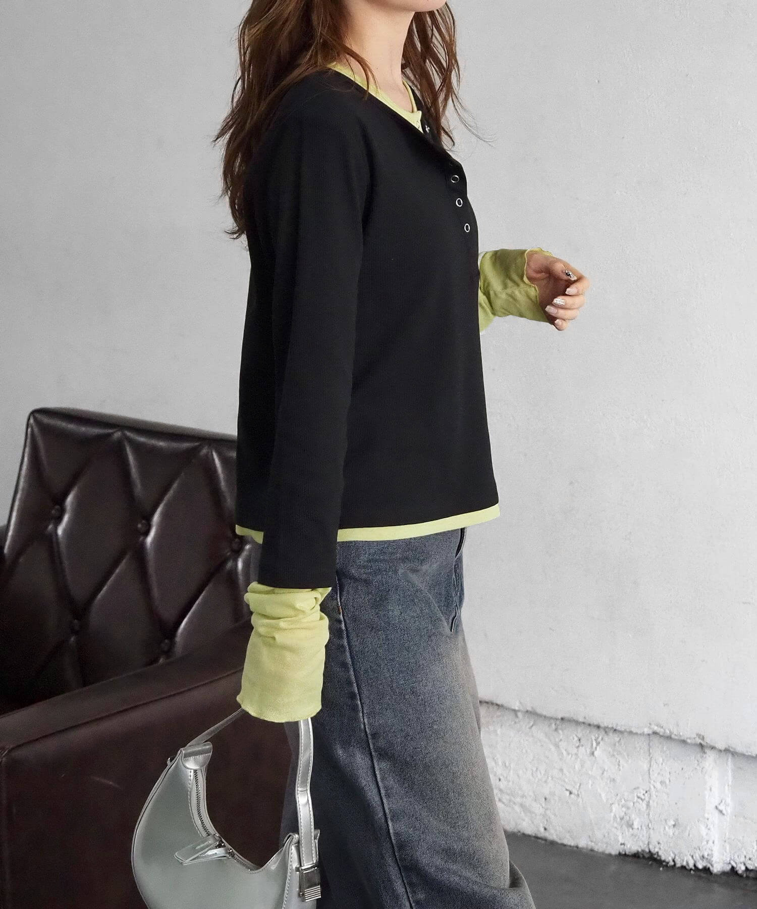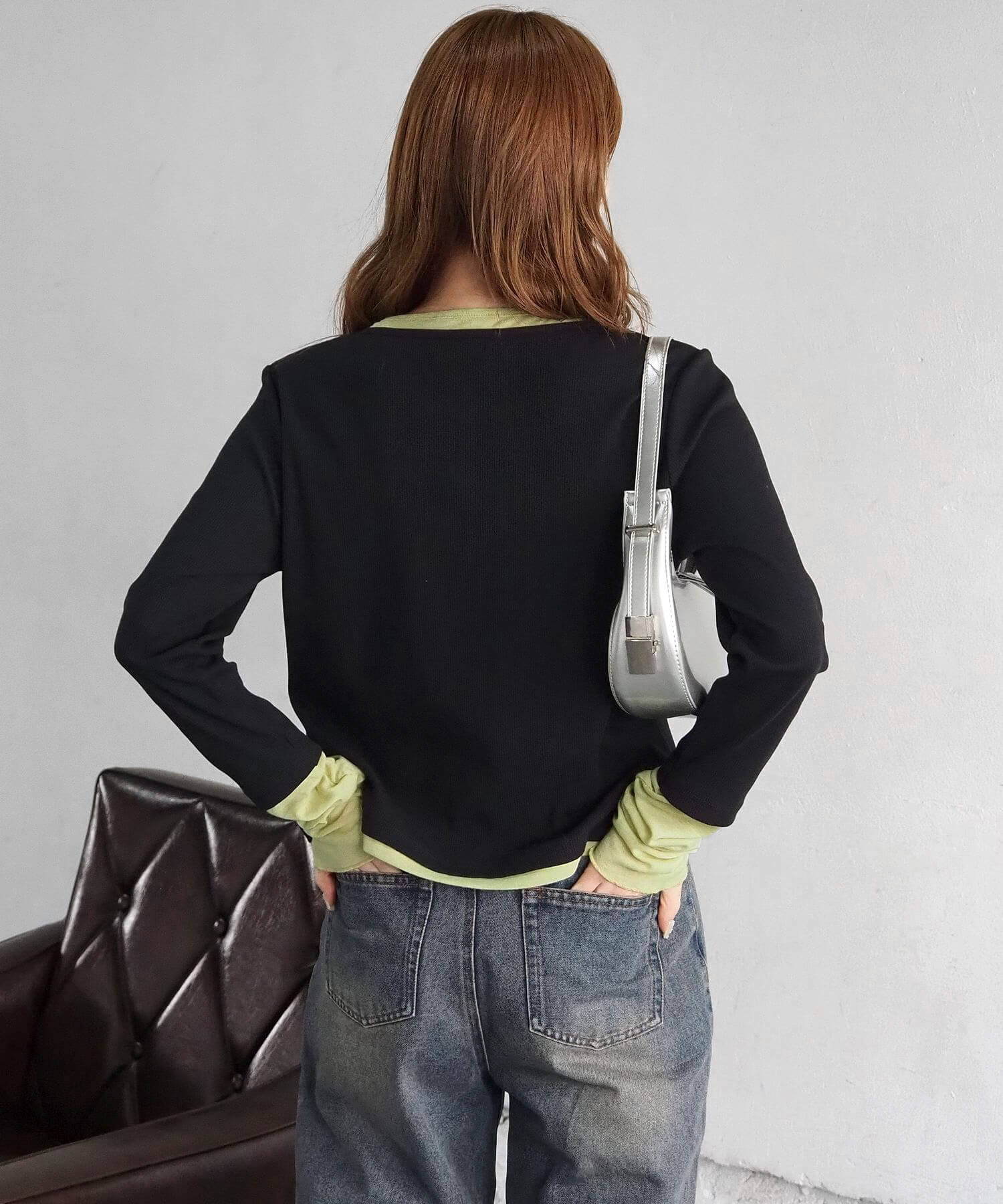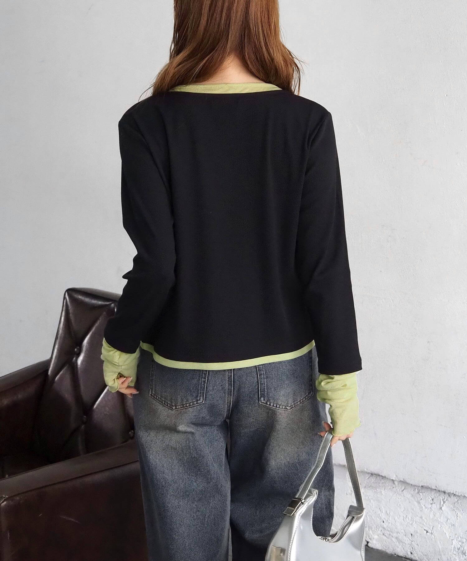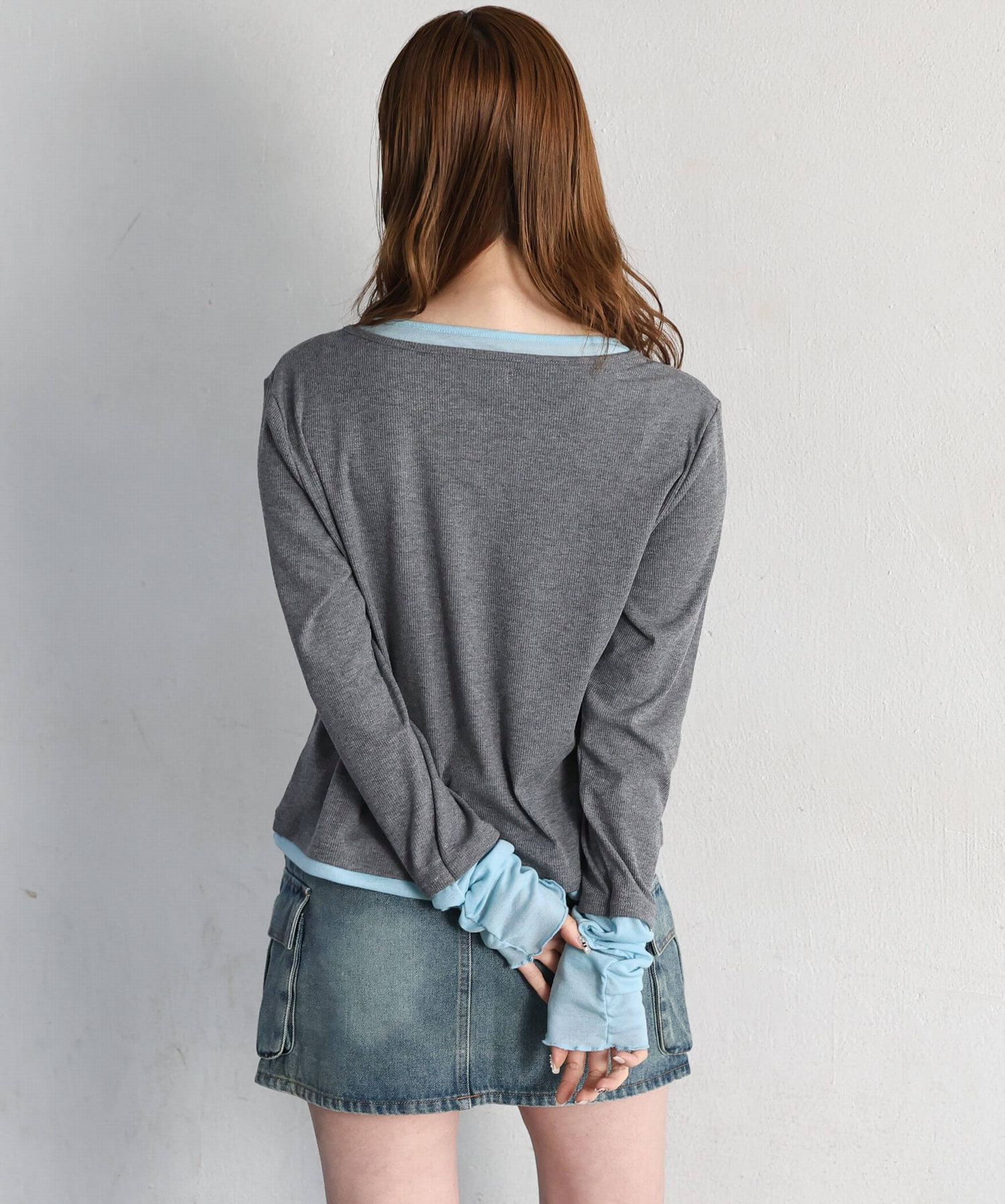 ・長袖を2枚重ね着したような、デザインカットソーです。