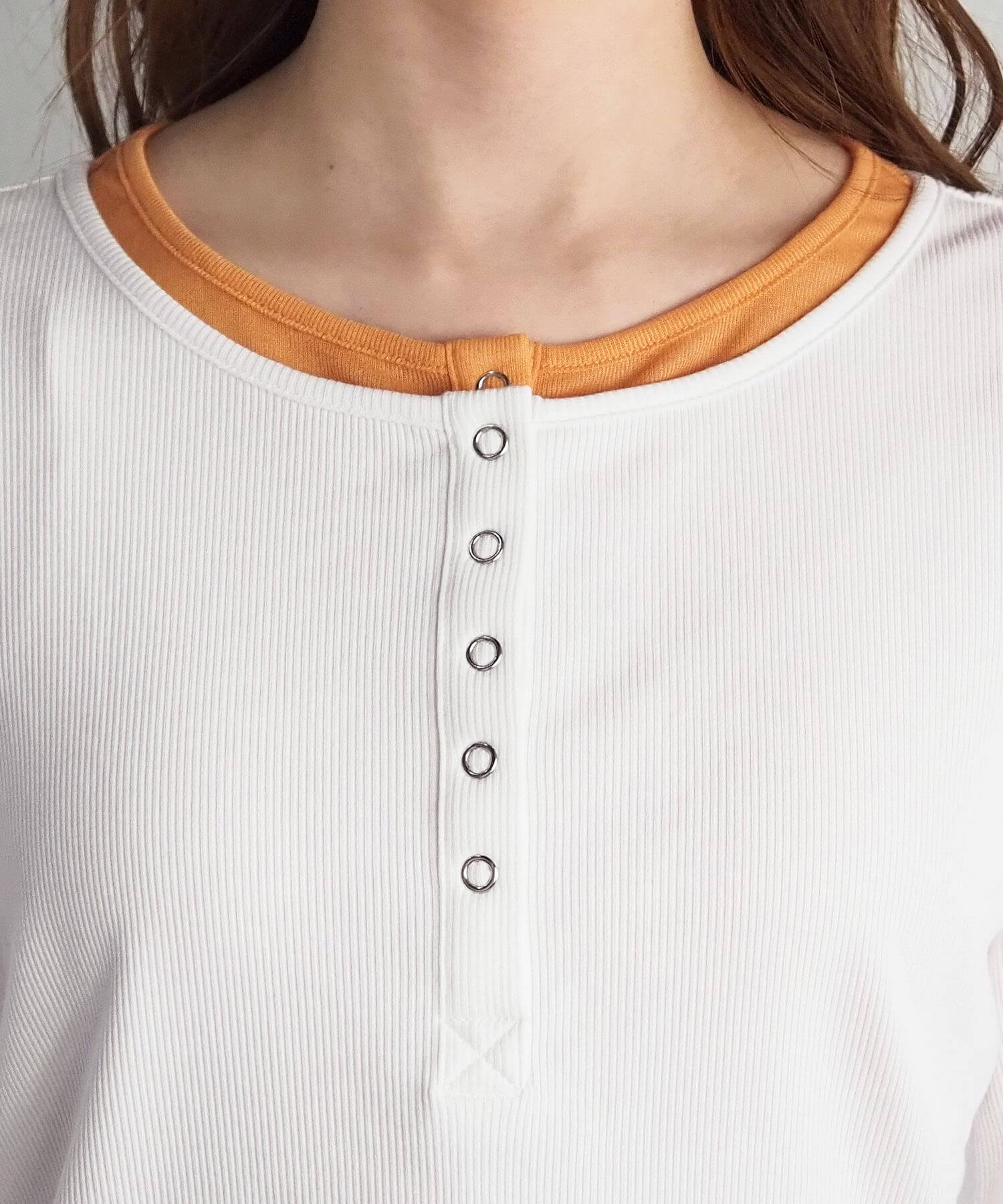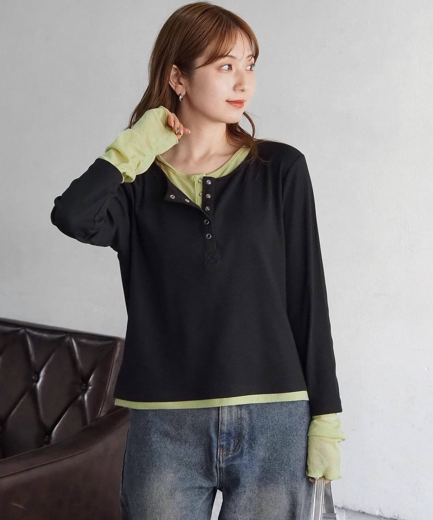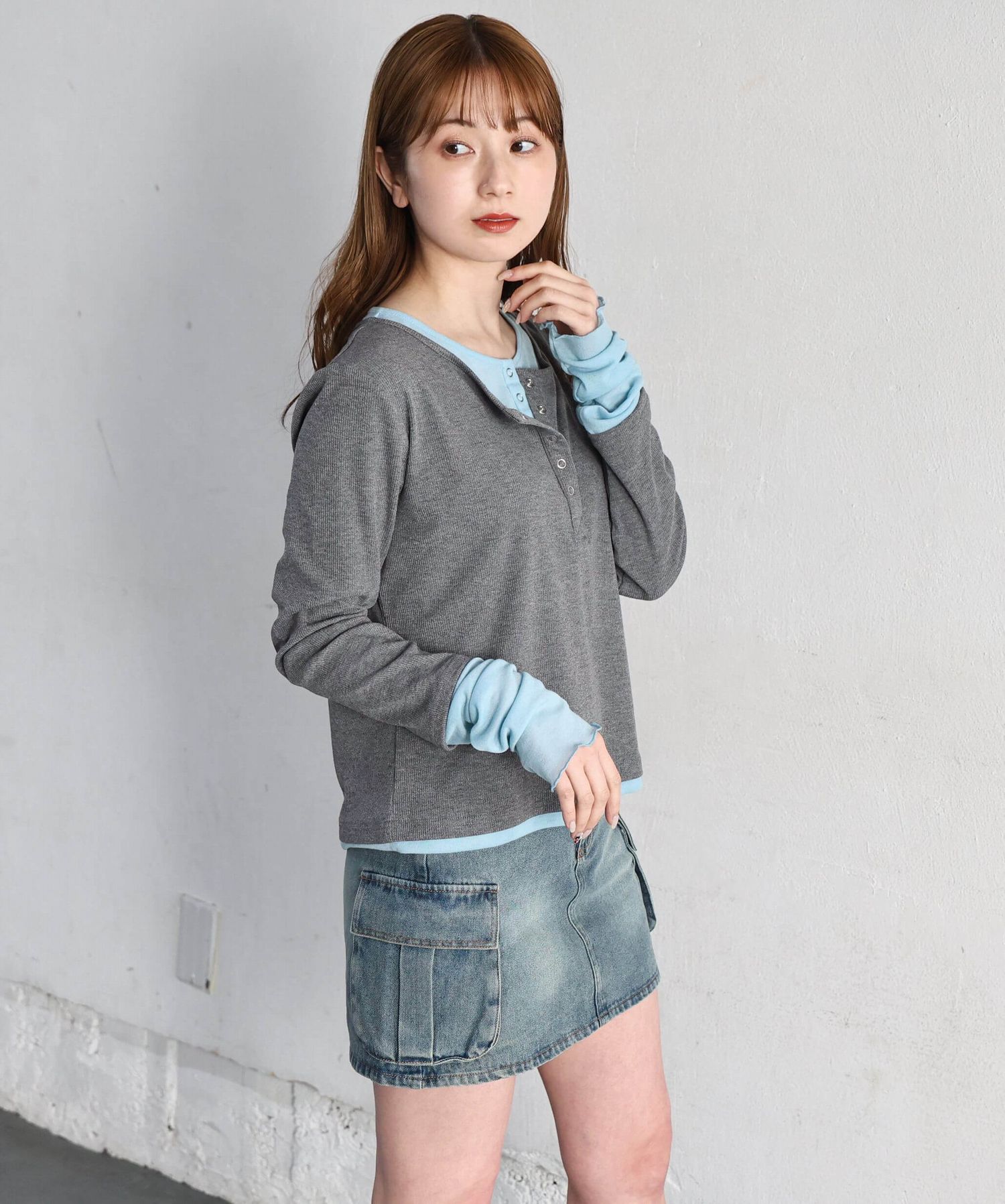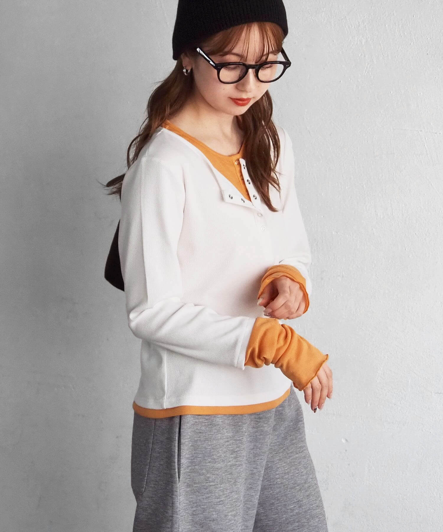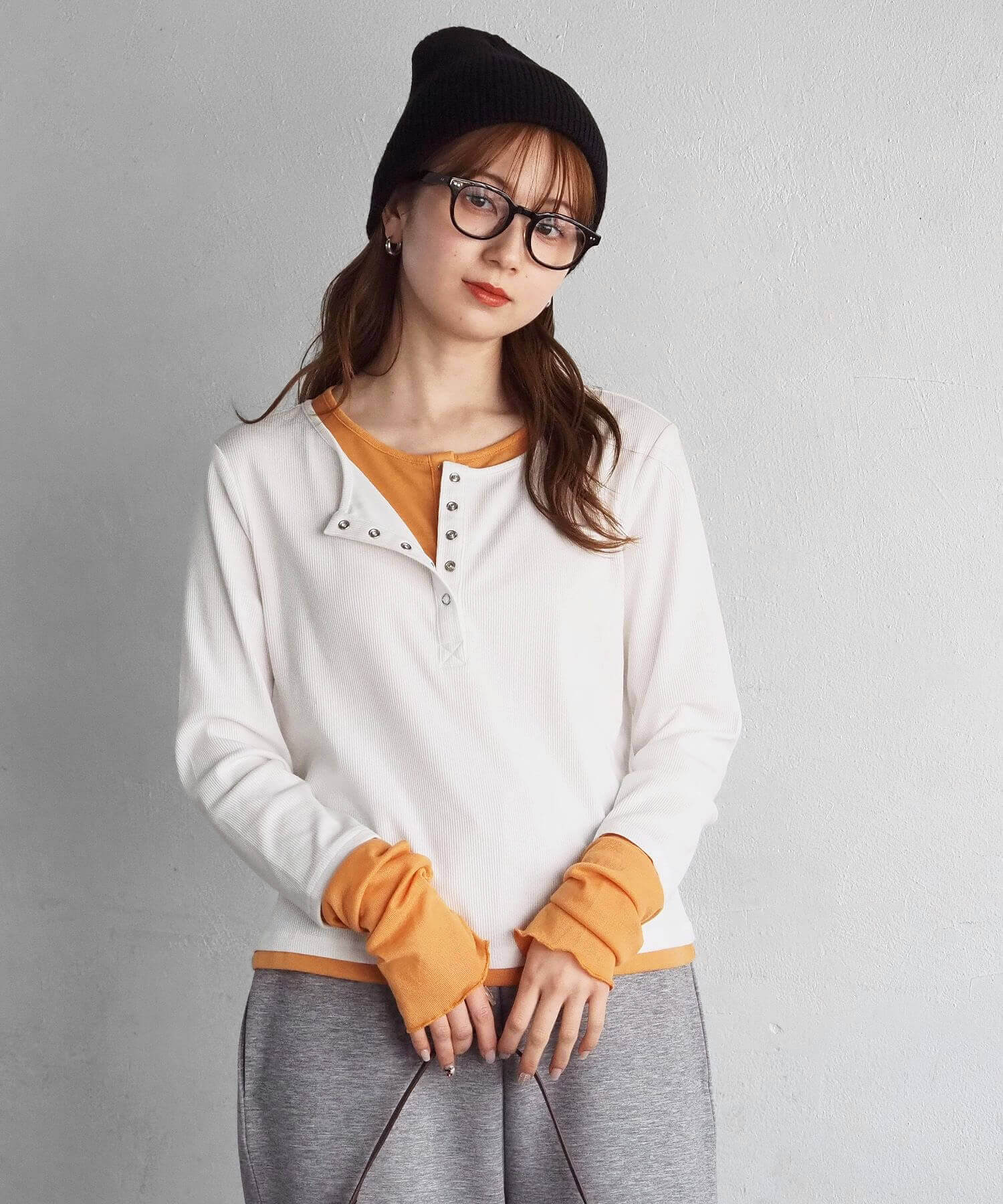 ・長袖を2枚重ね着したような、デザインカットソーです。