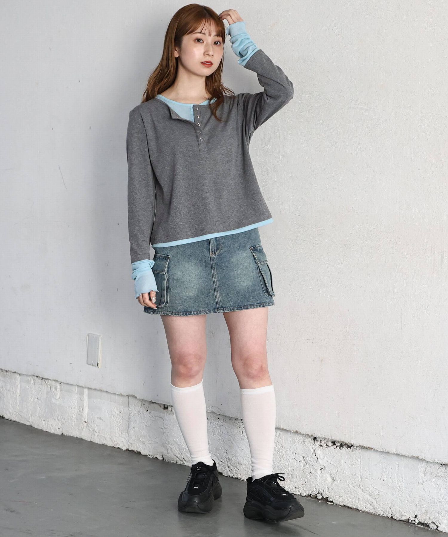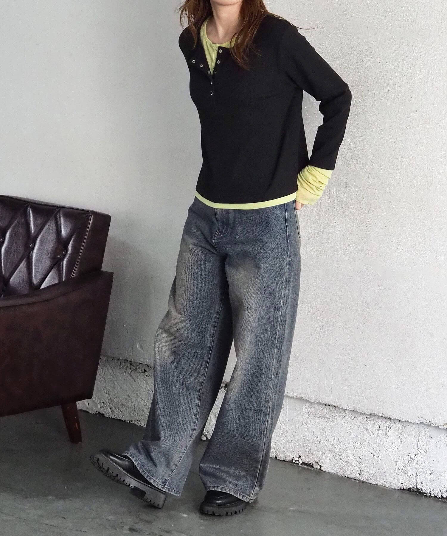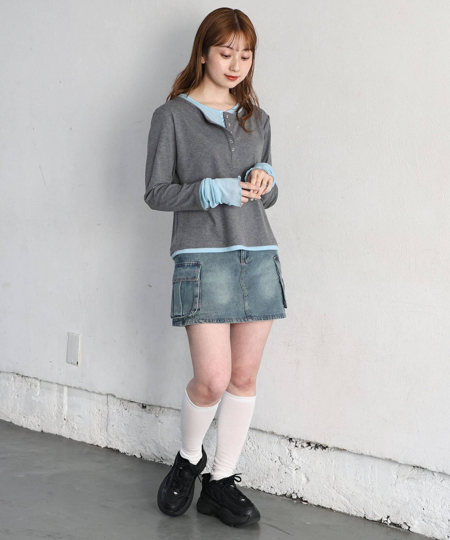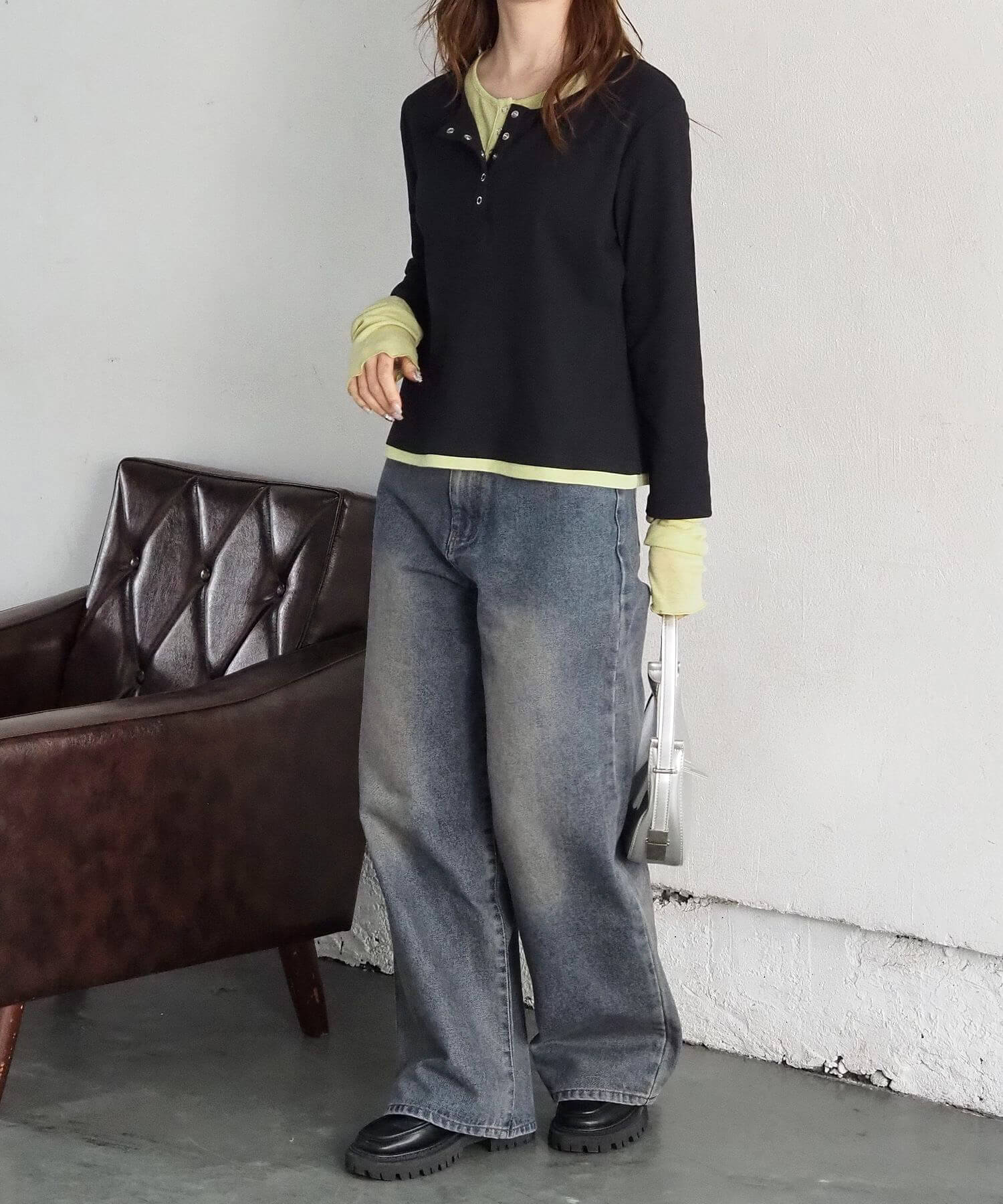 ・長袖を2枚重ね着したような、デザインカットソーです。