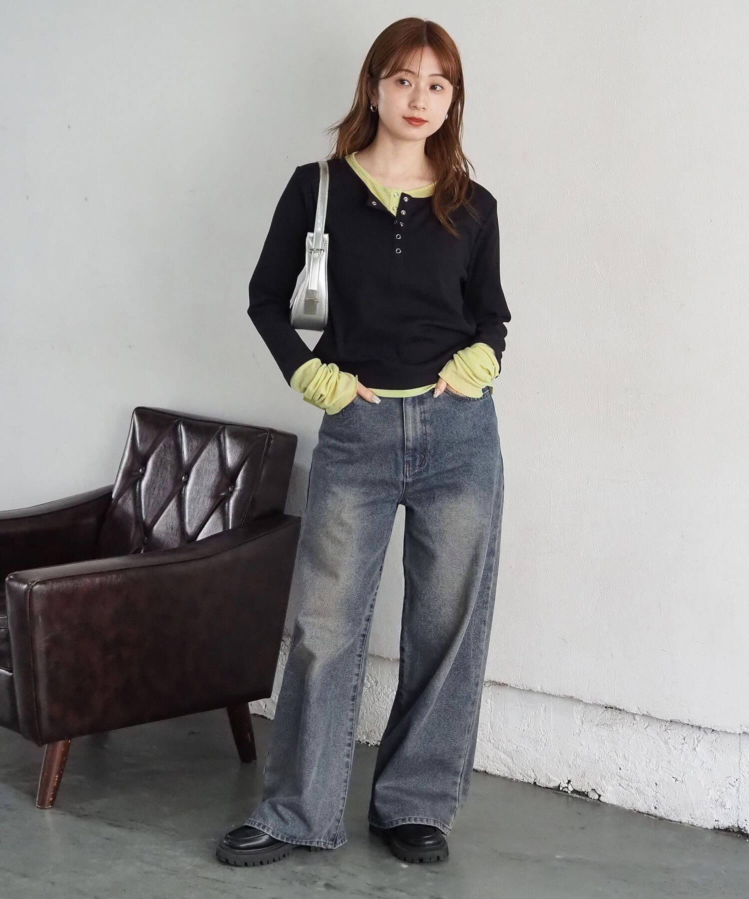 1枚でシアー×テレコロンTのレイヤードコーデが完成◎