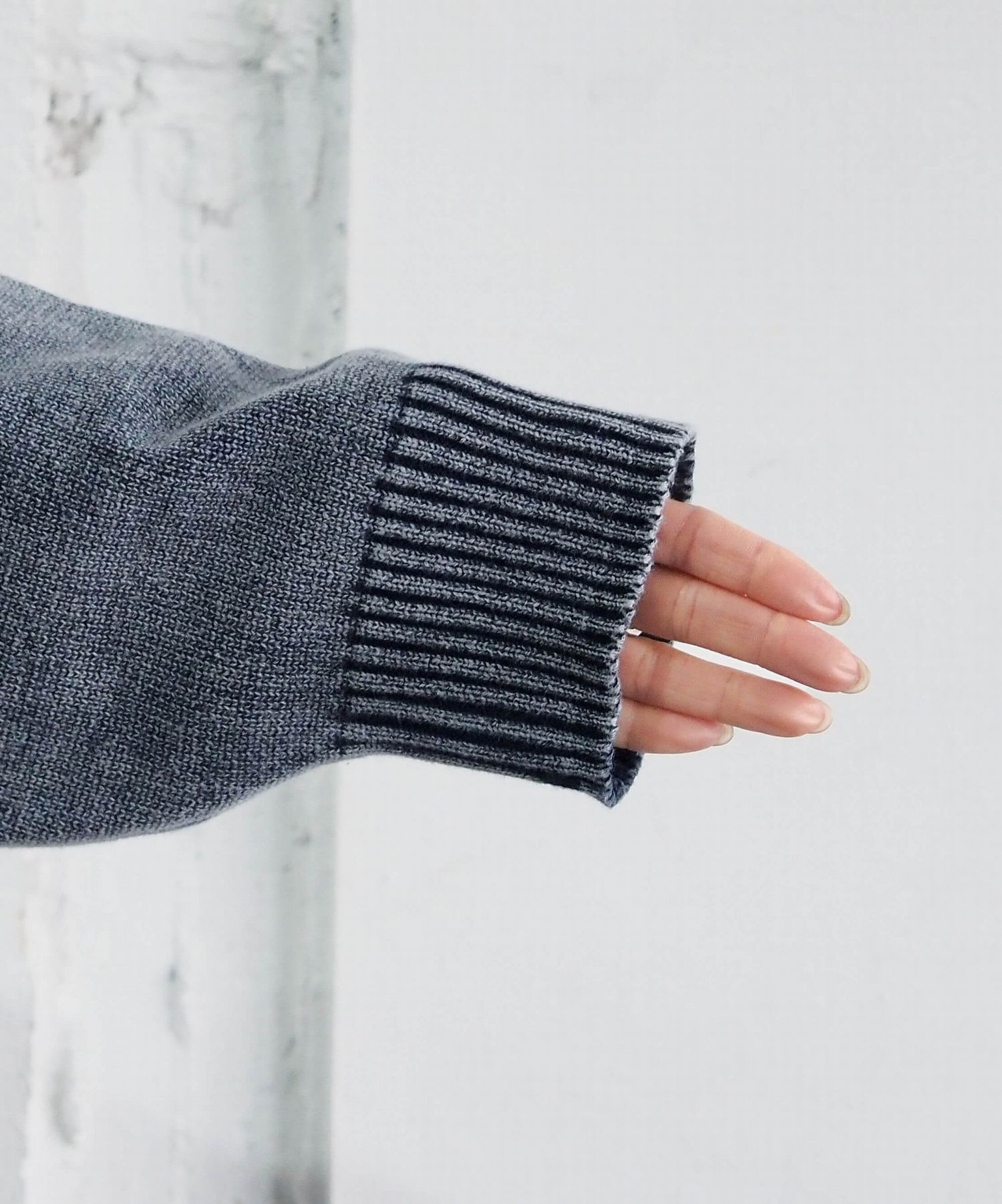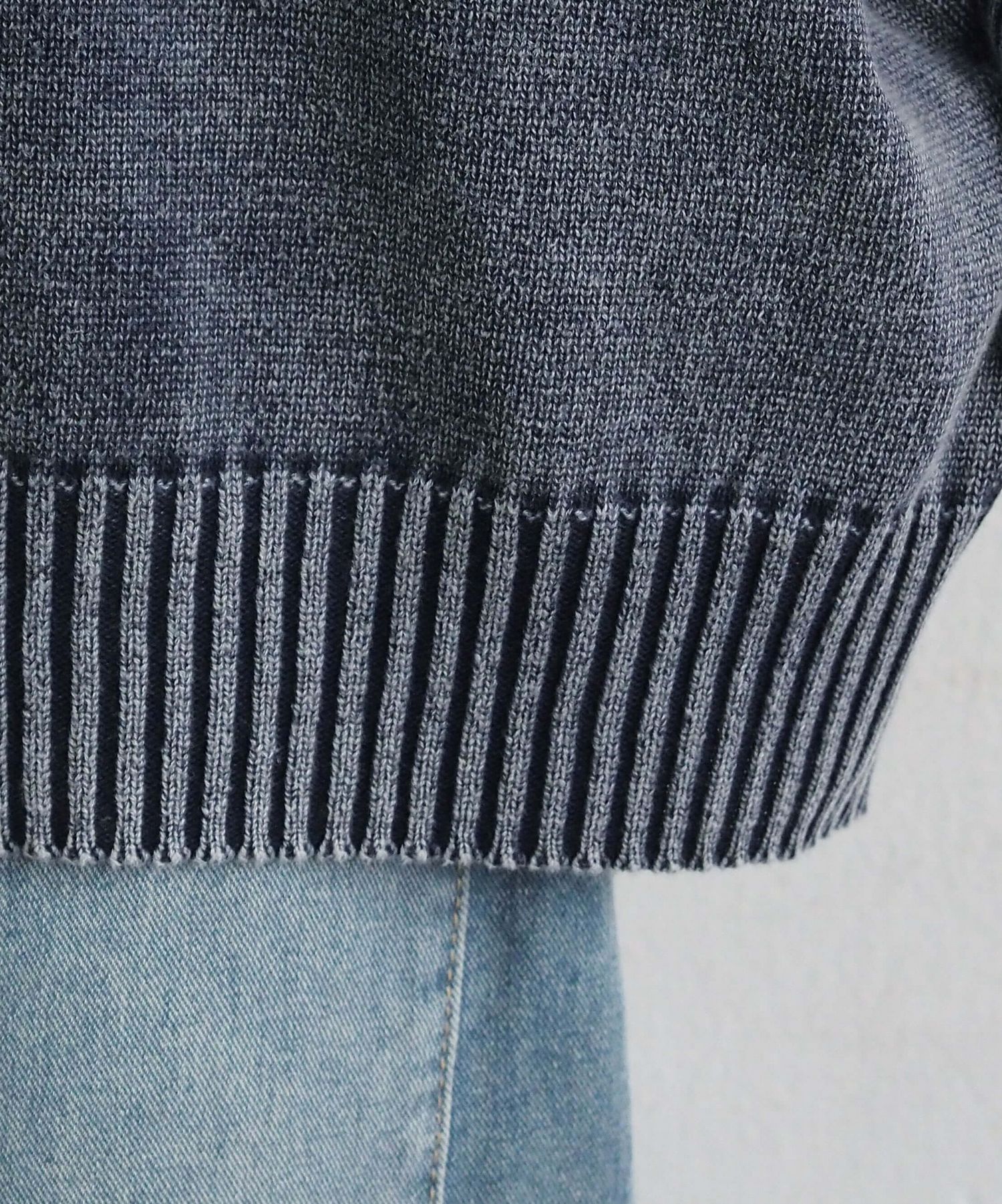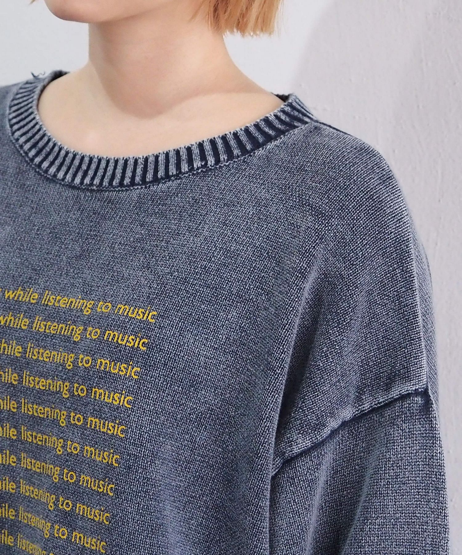 ・ヴィンテージ風のストーンウォッシュ加工が魅力のクルーネックニット。