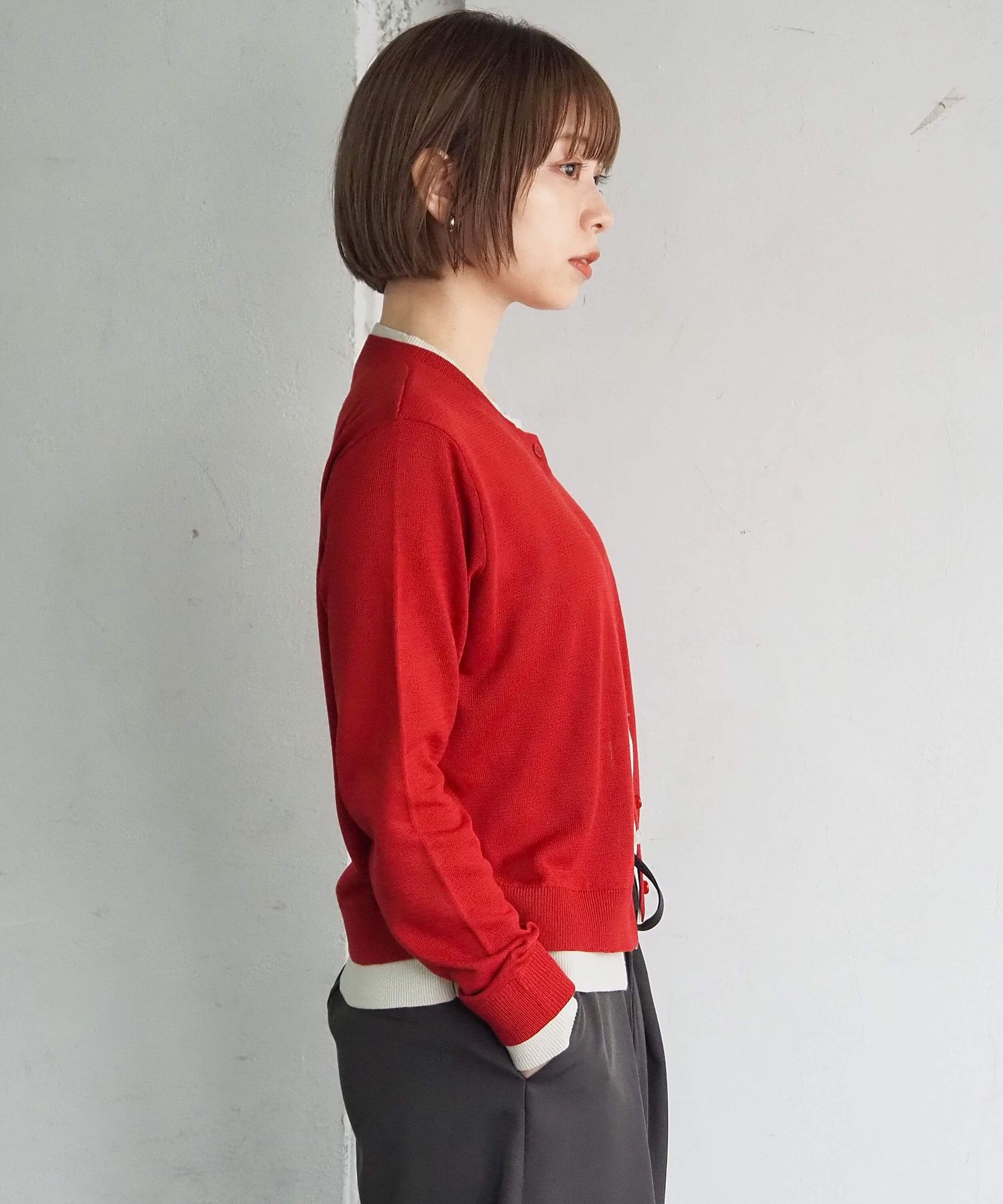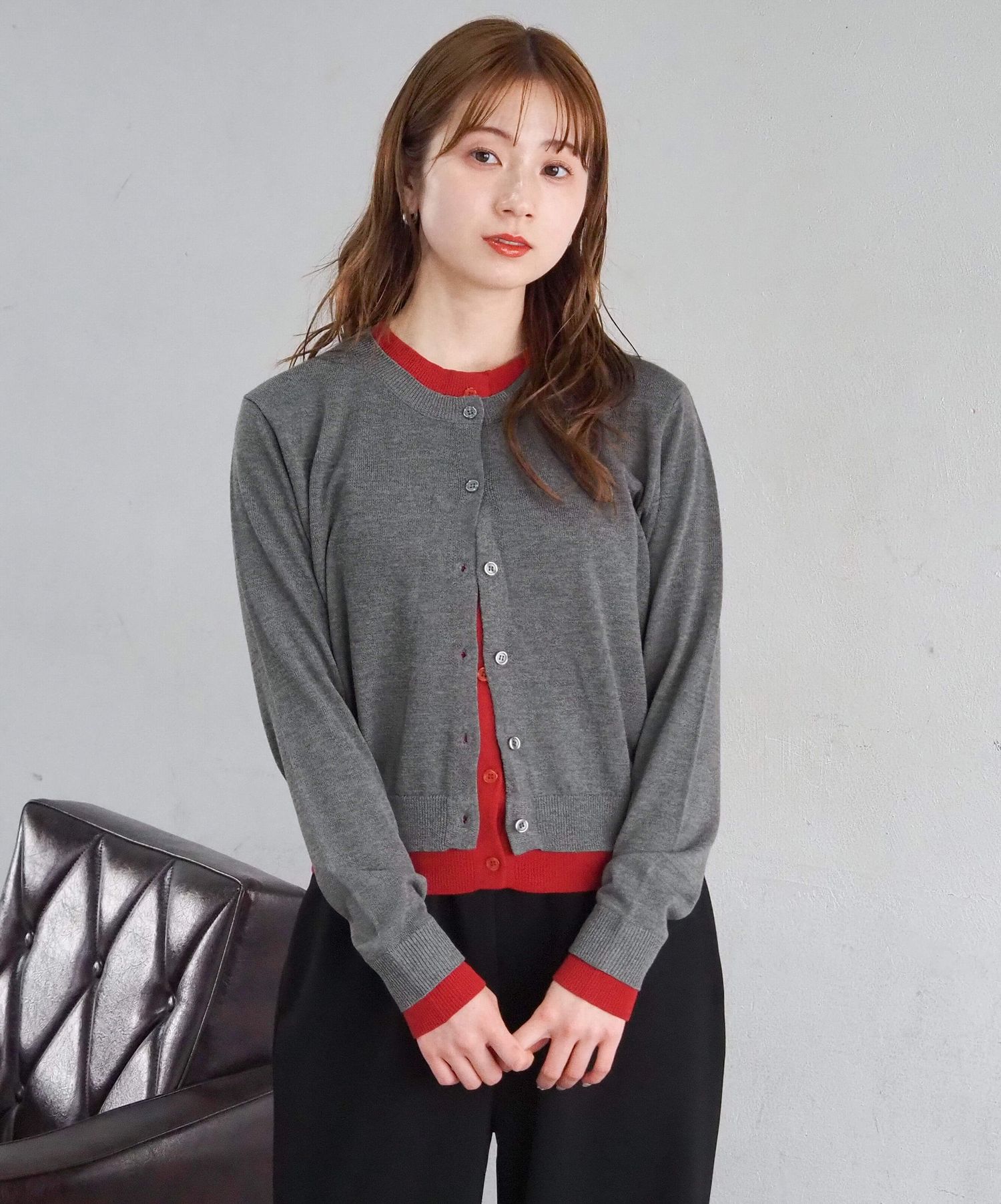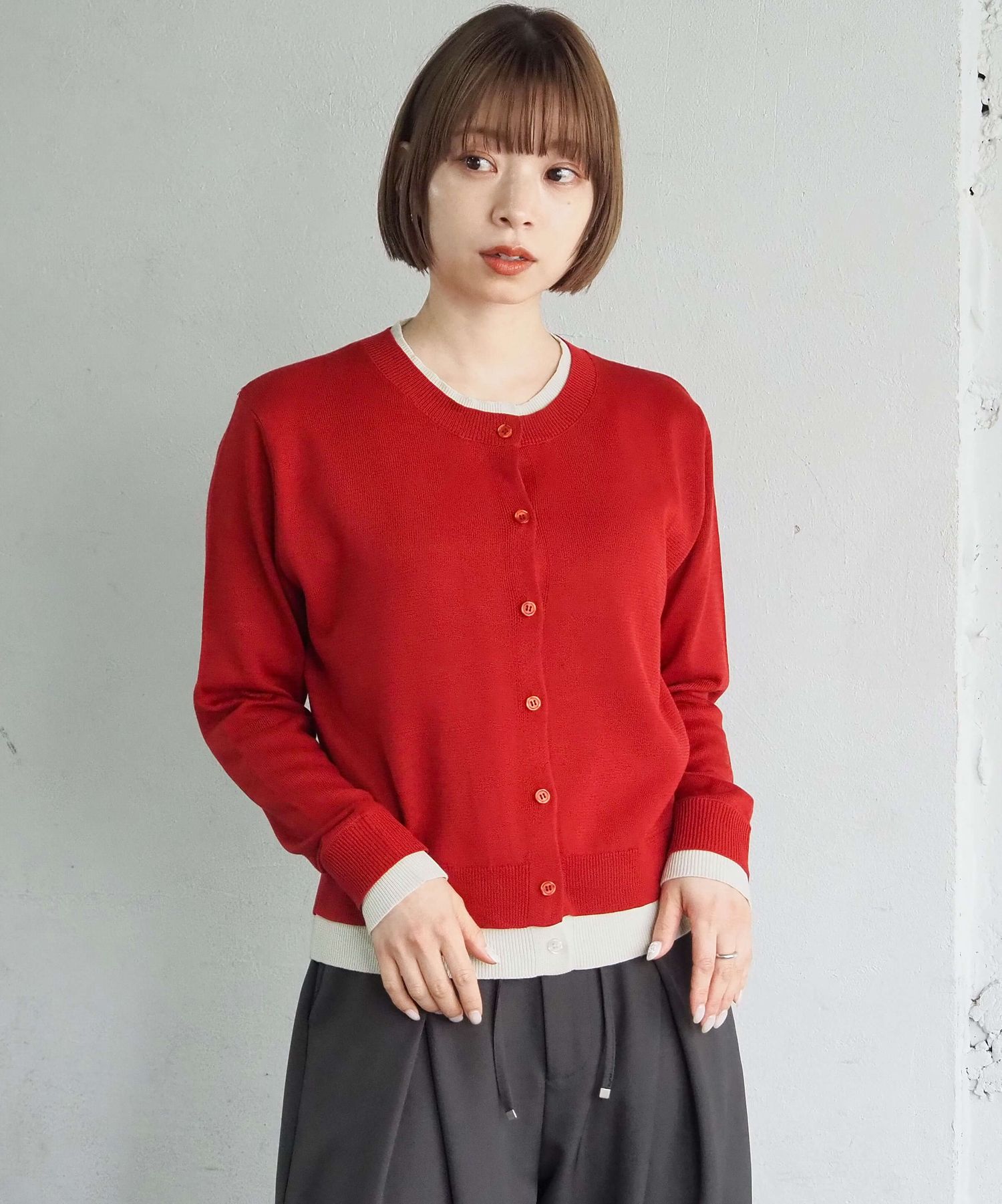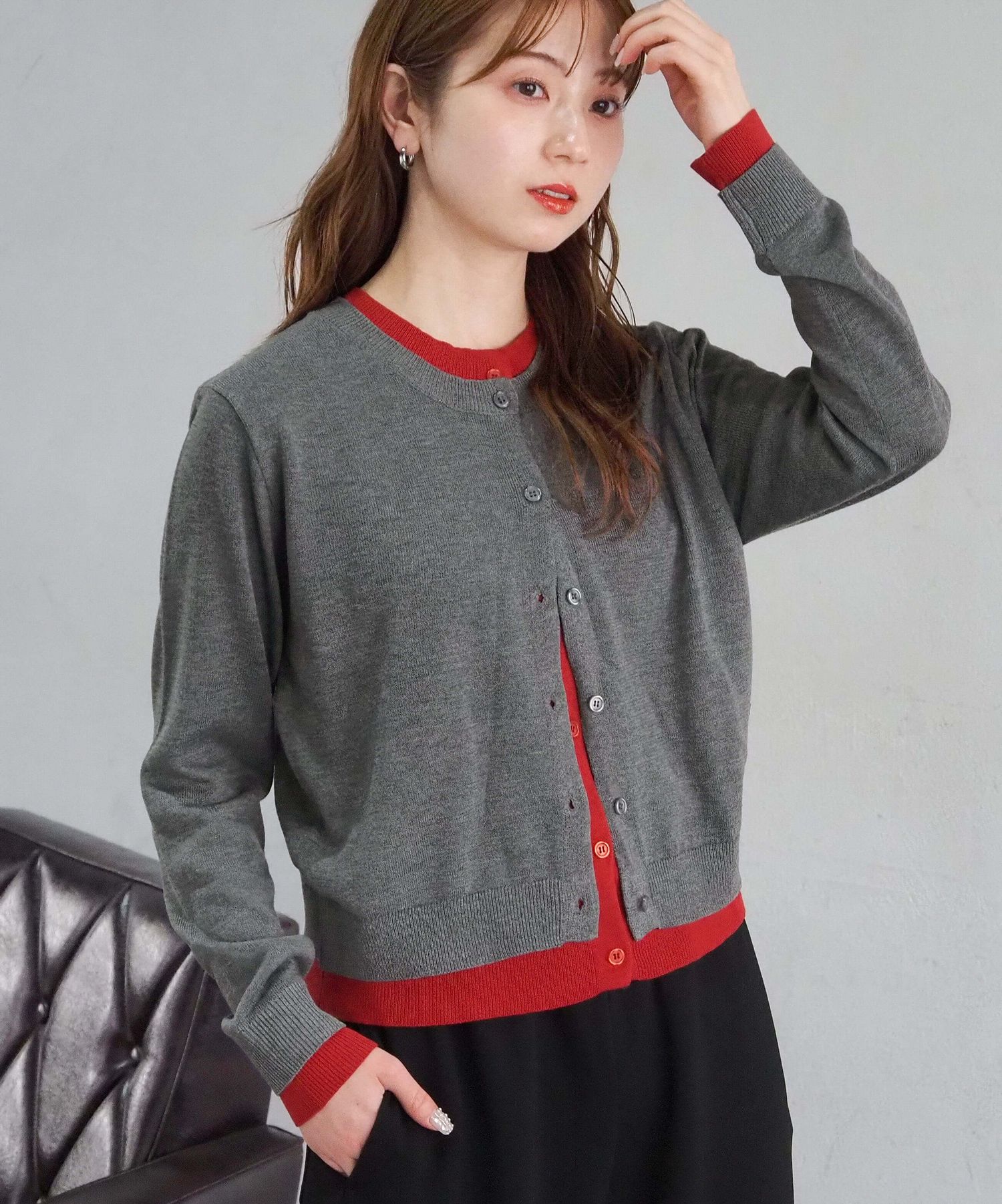 ・2枚のカーディガンを重ね着したような、1枚で旬のスタイルが叶うニットカーディガンです。