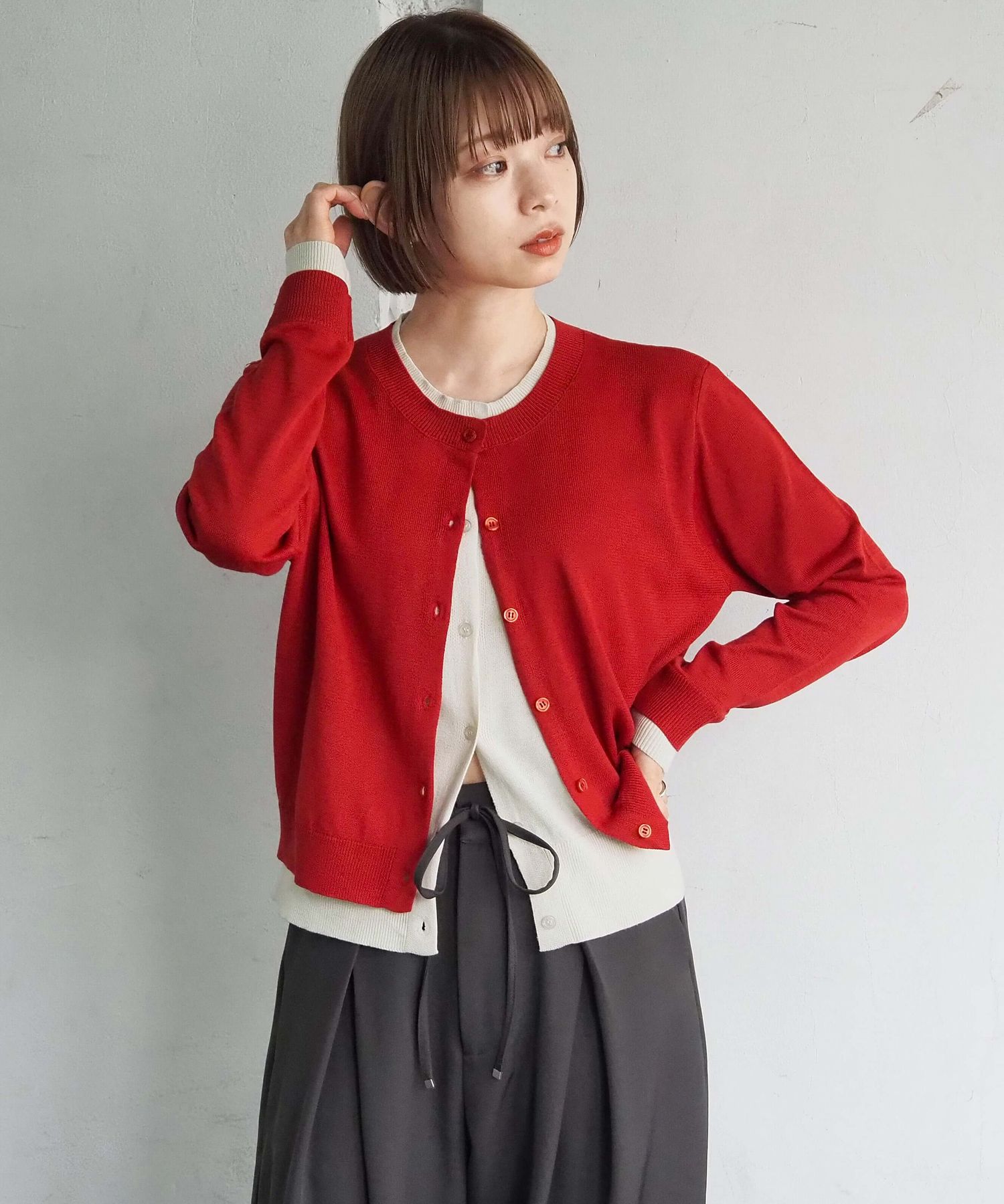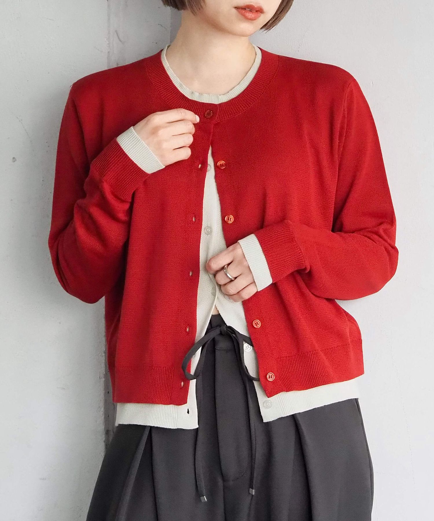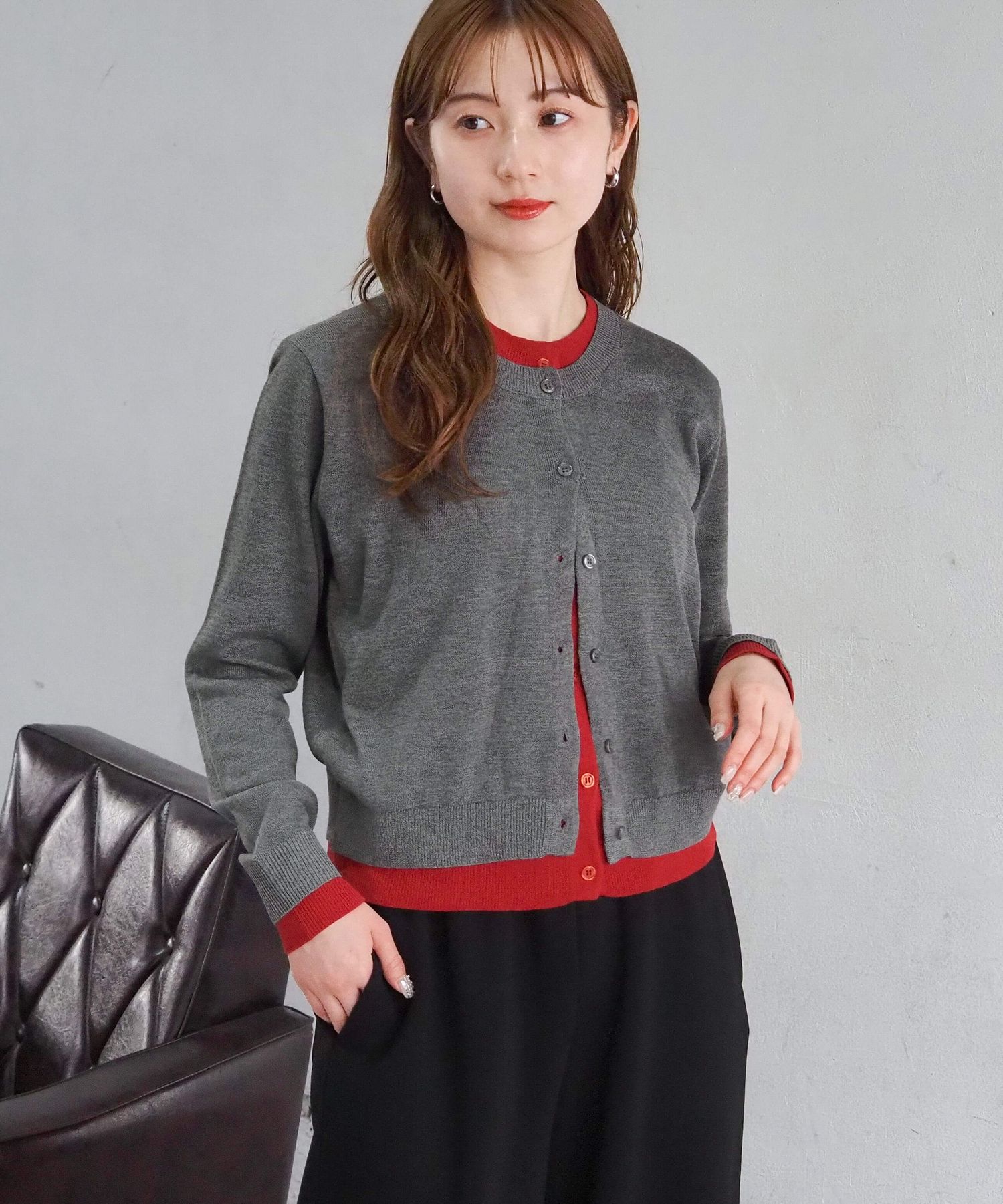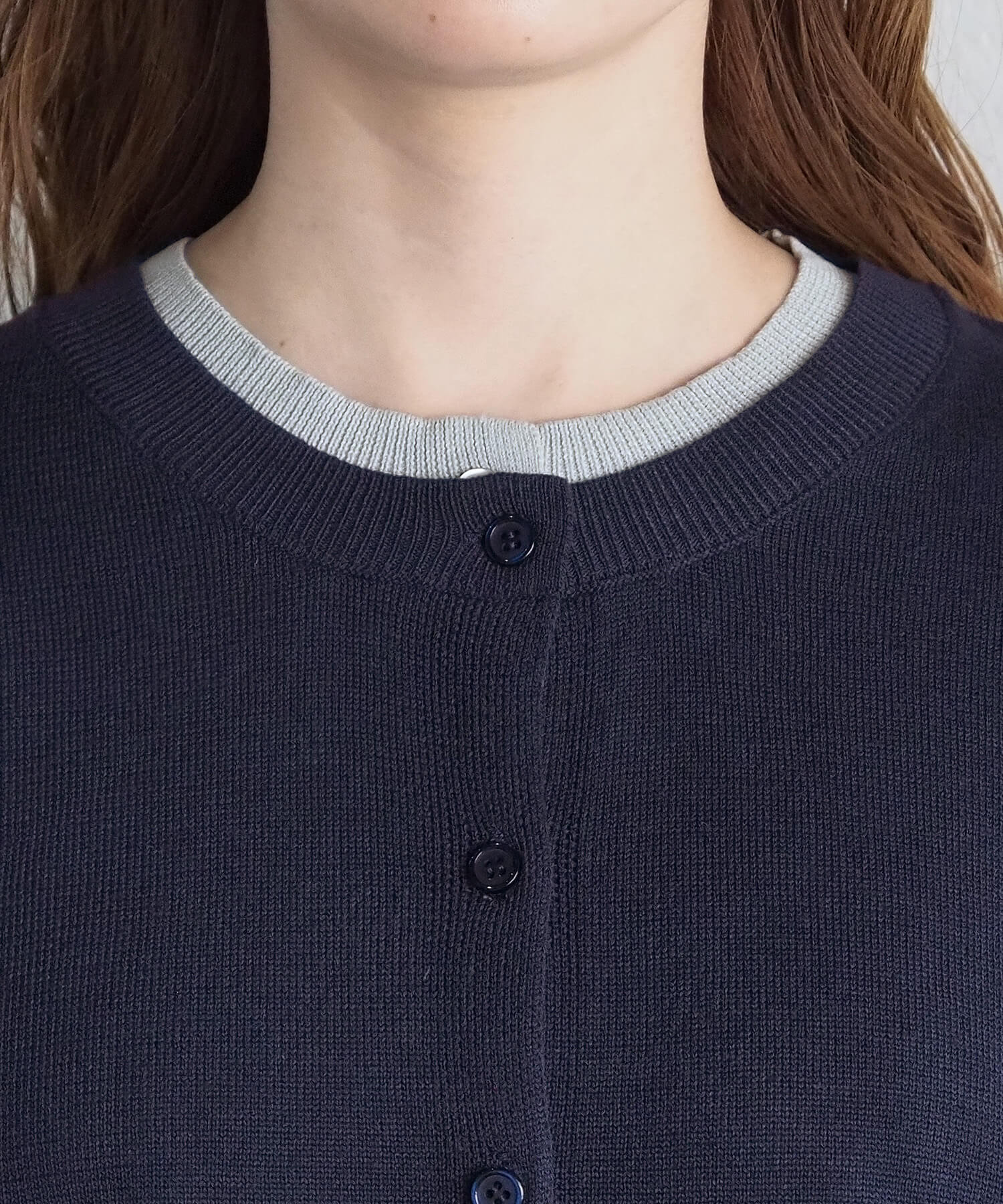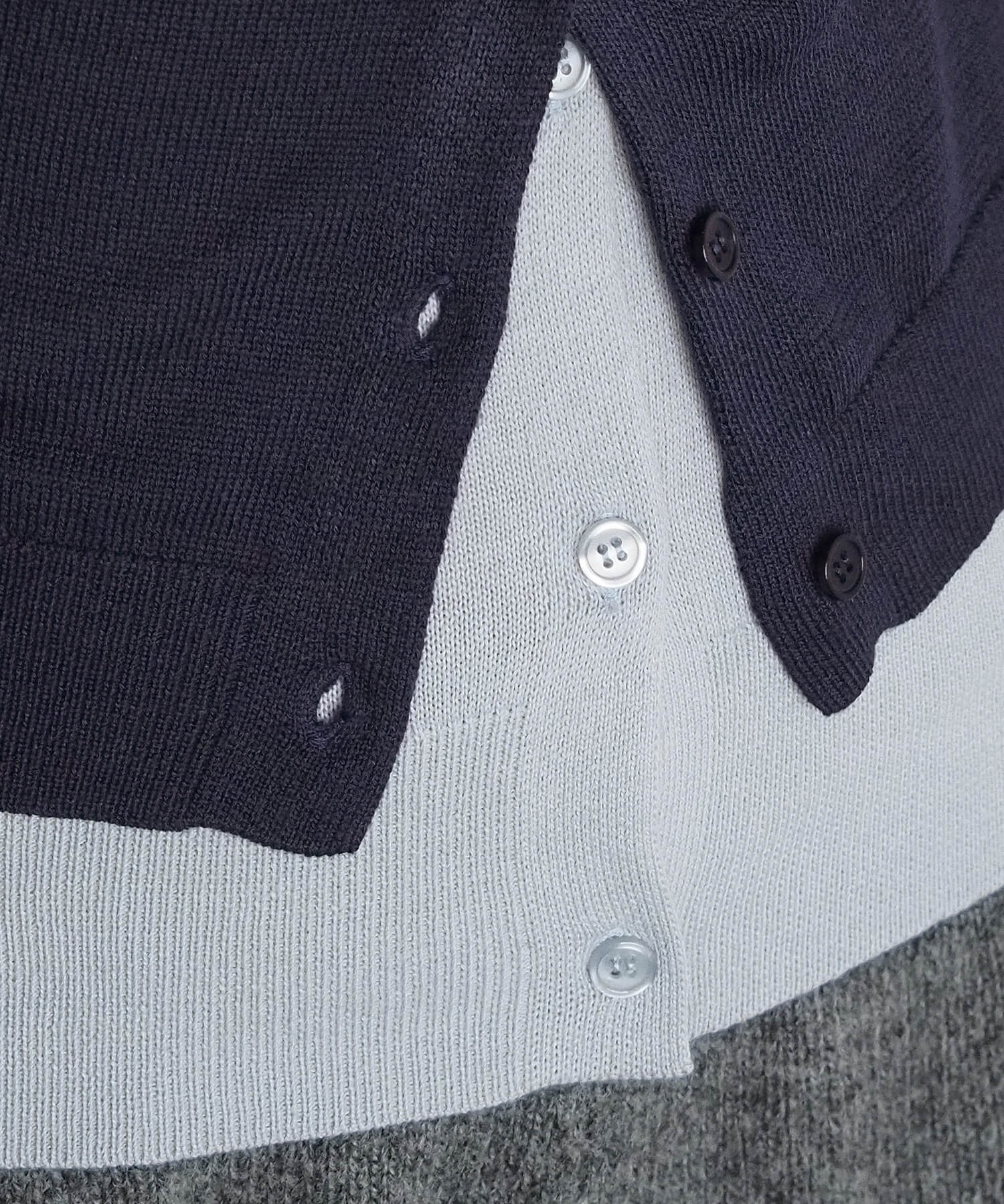 ・2枚のカーディガンを重ね着したような、1枚で旬のスタイルが叶うニットカーディガンです。