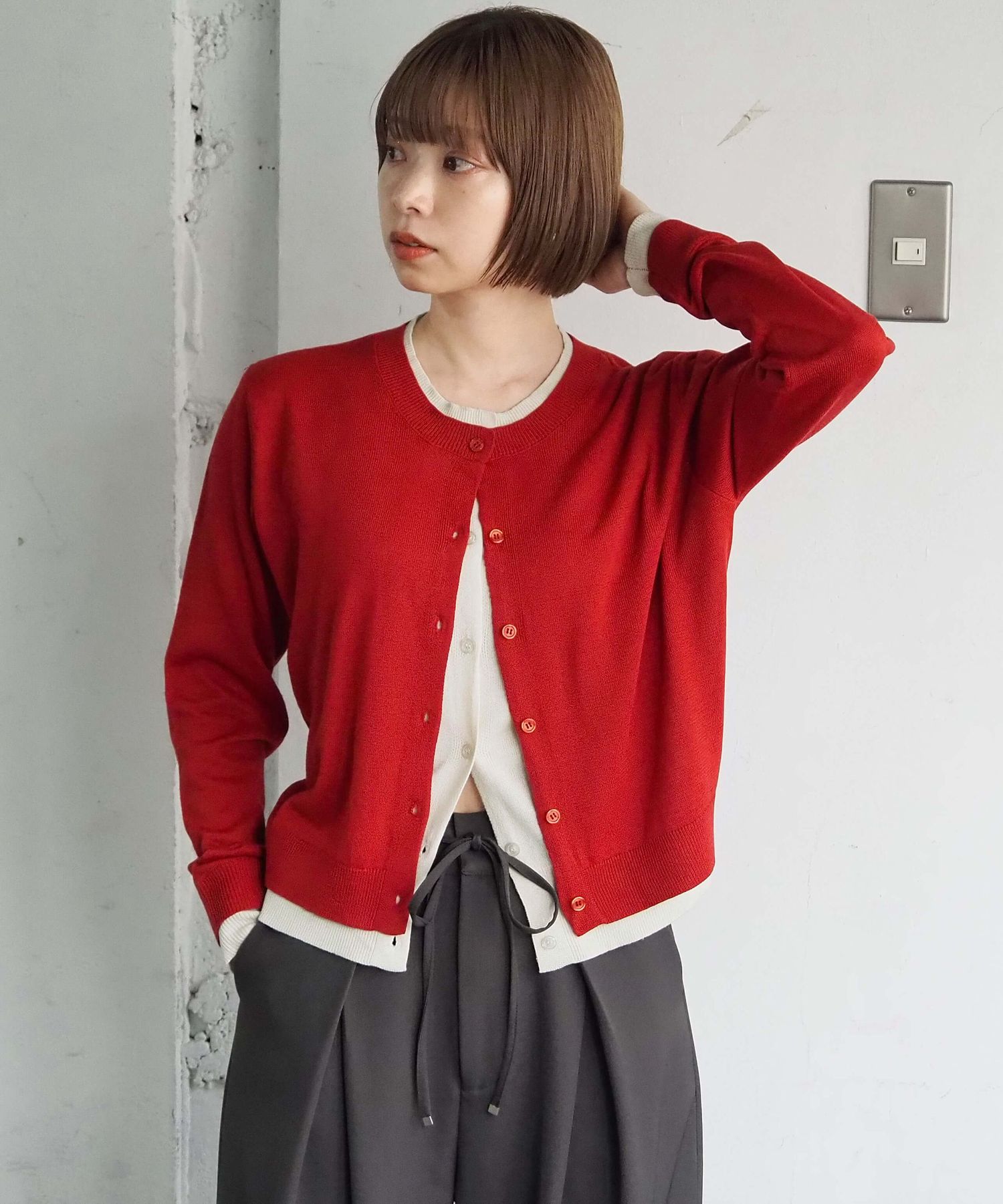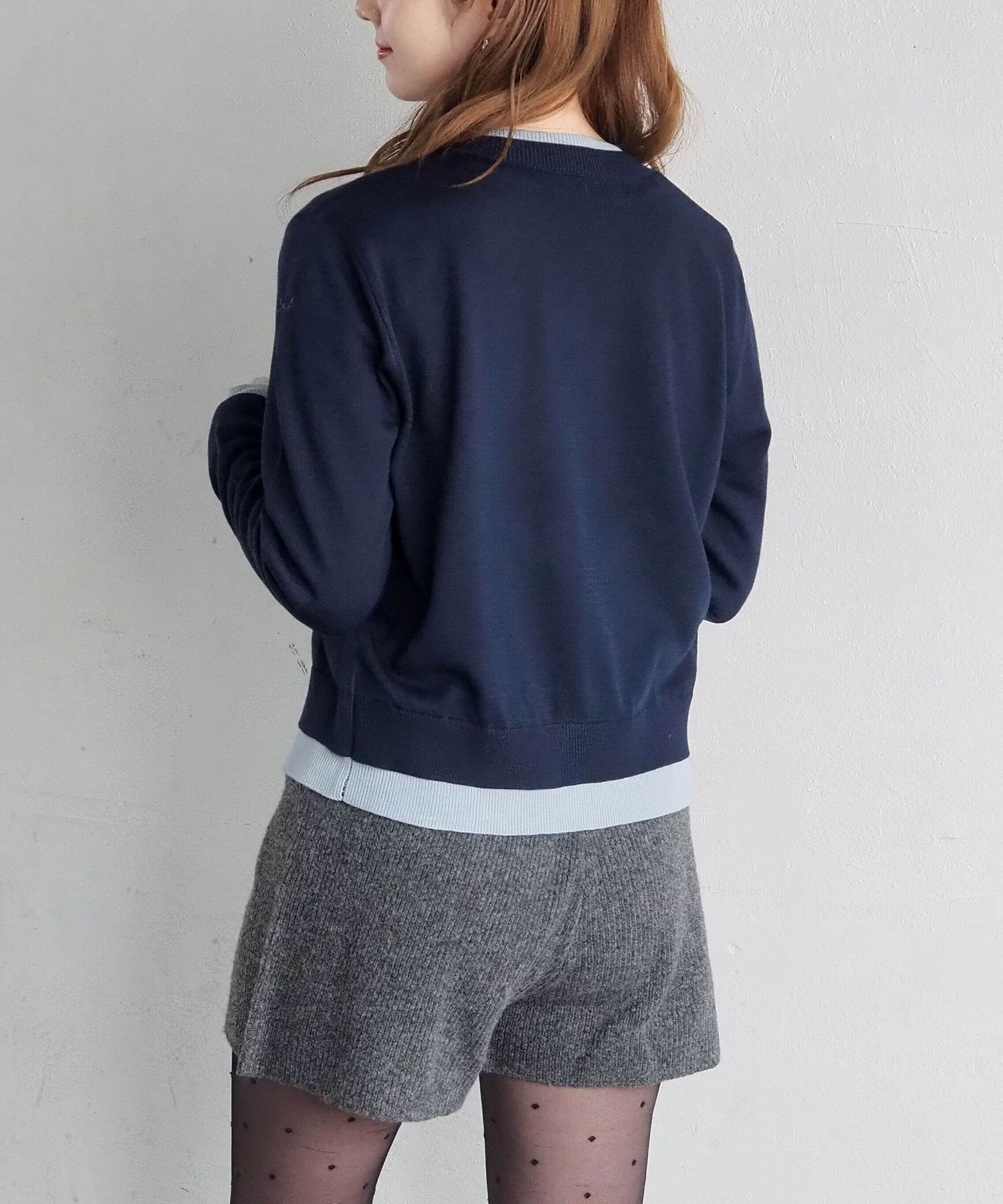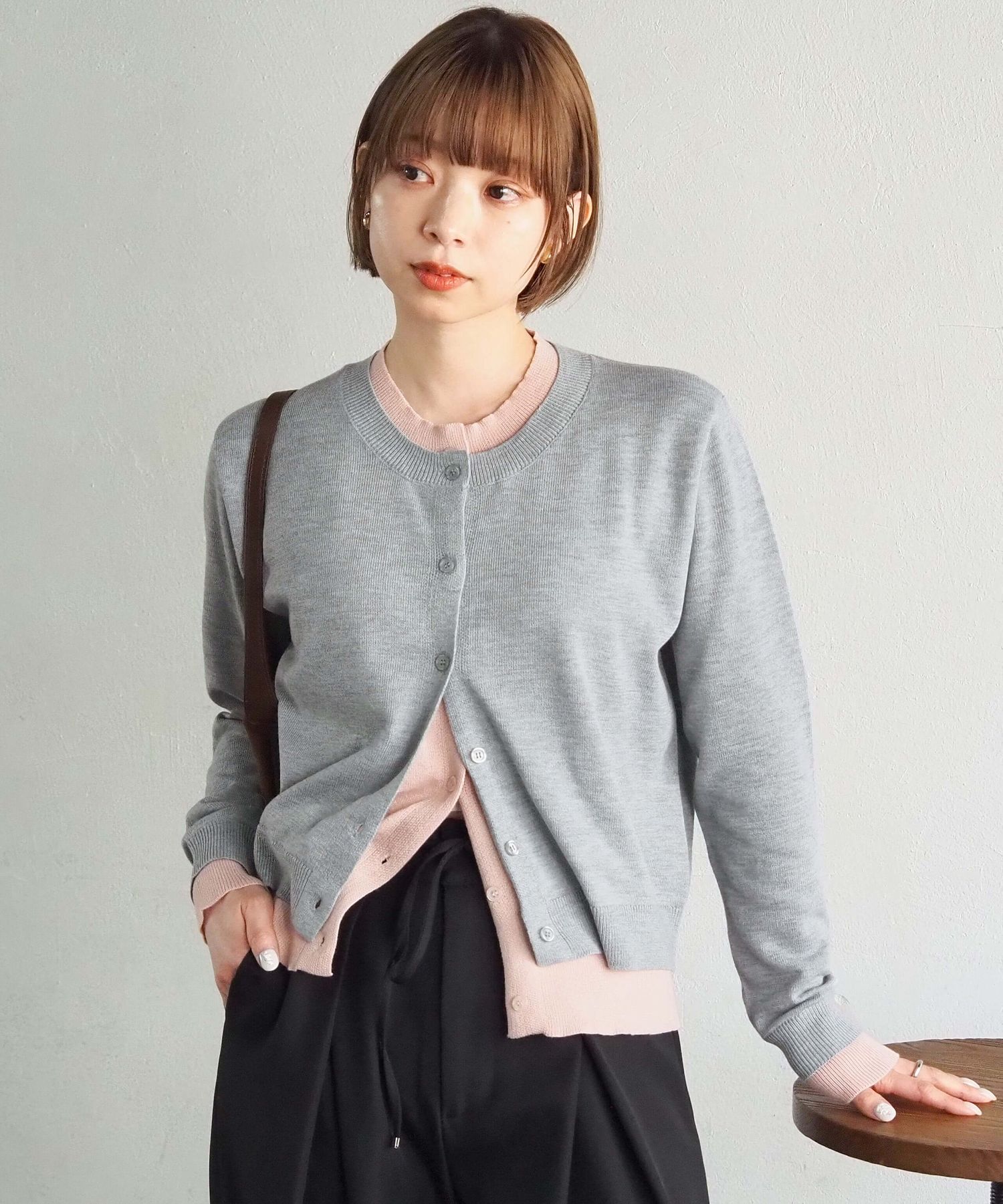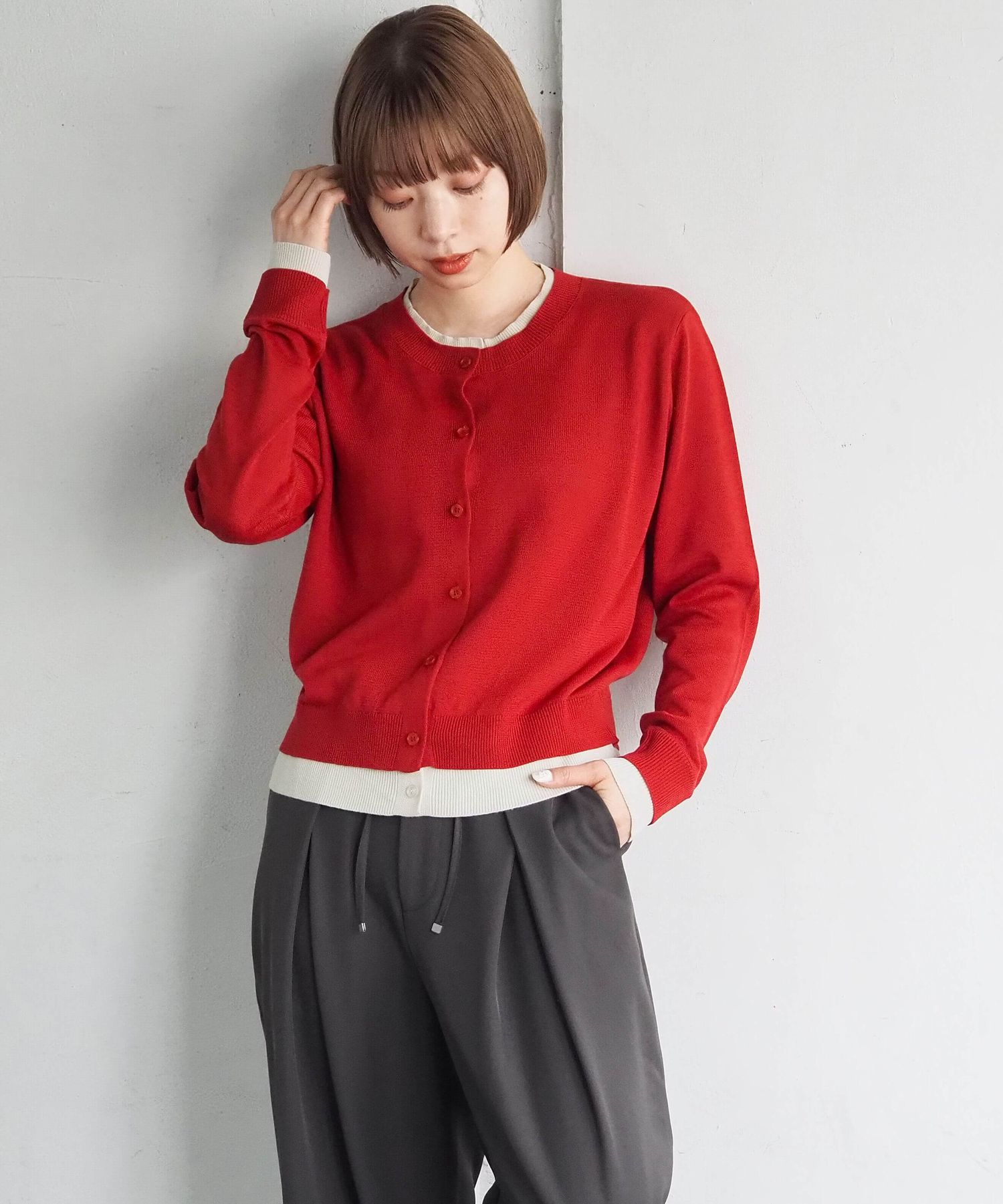 ・2枚のカーディガンを重ね着したような、1枚で旬のスタイルが叶うニットカーディガンです。