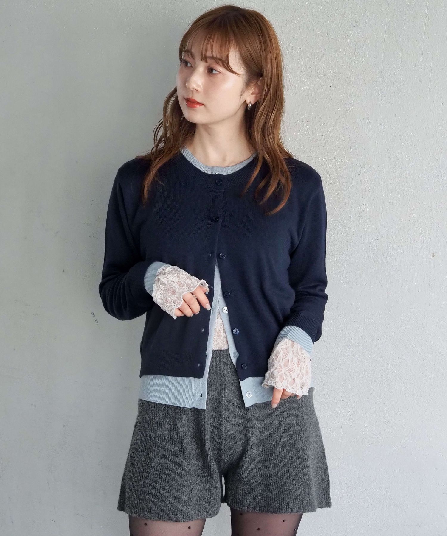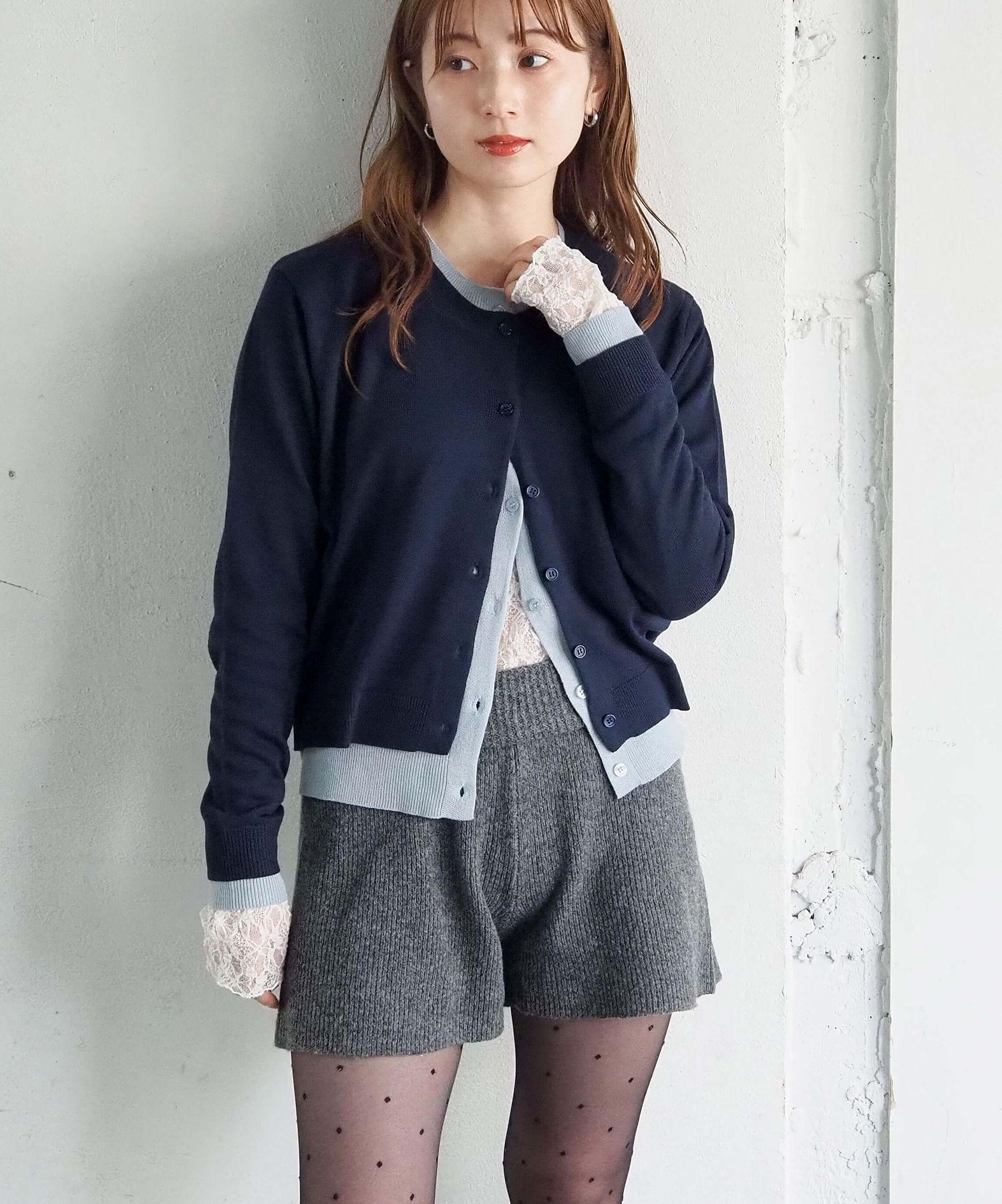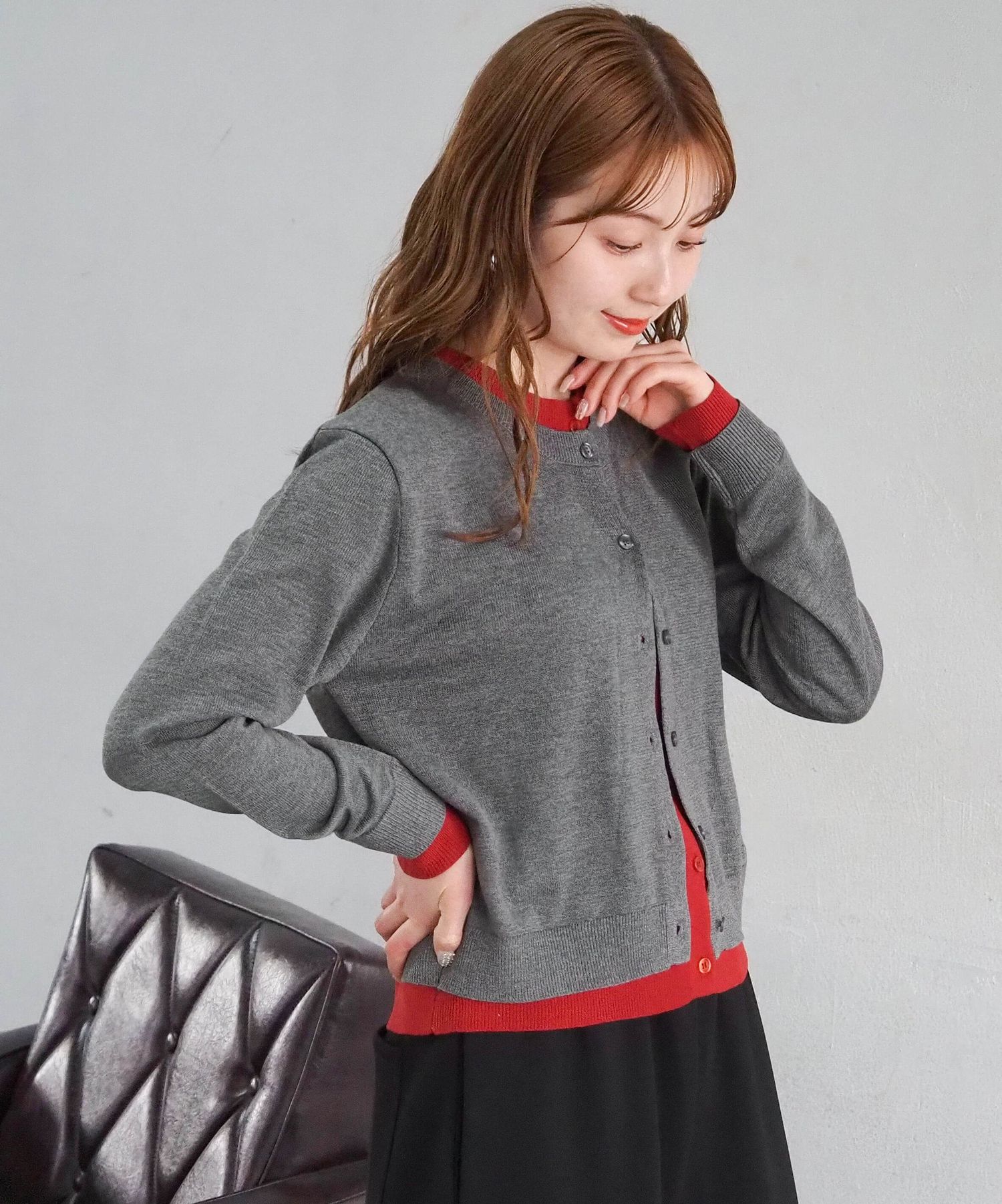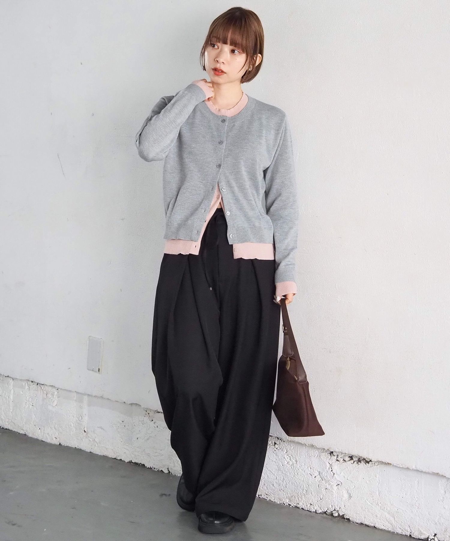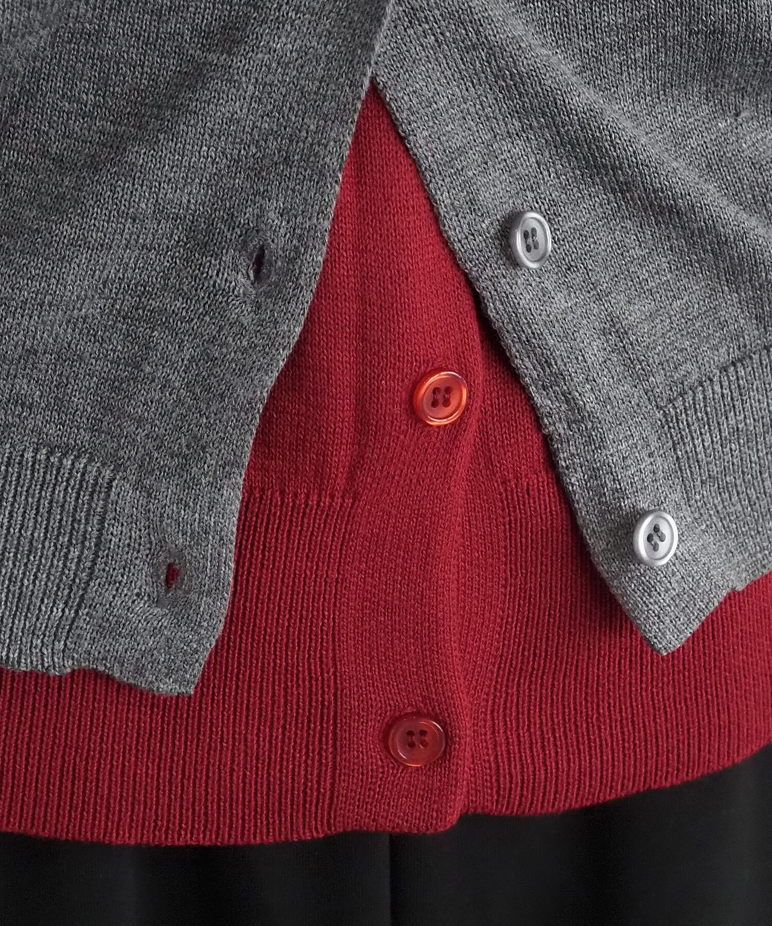 ・2枚のカーディガンを重ね着したような、1枚で旬のスタイルが叶うニットカーディガンです。