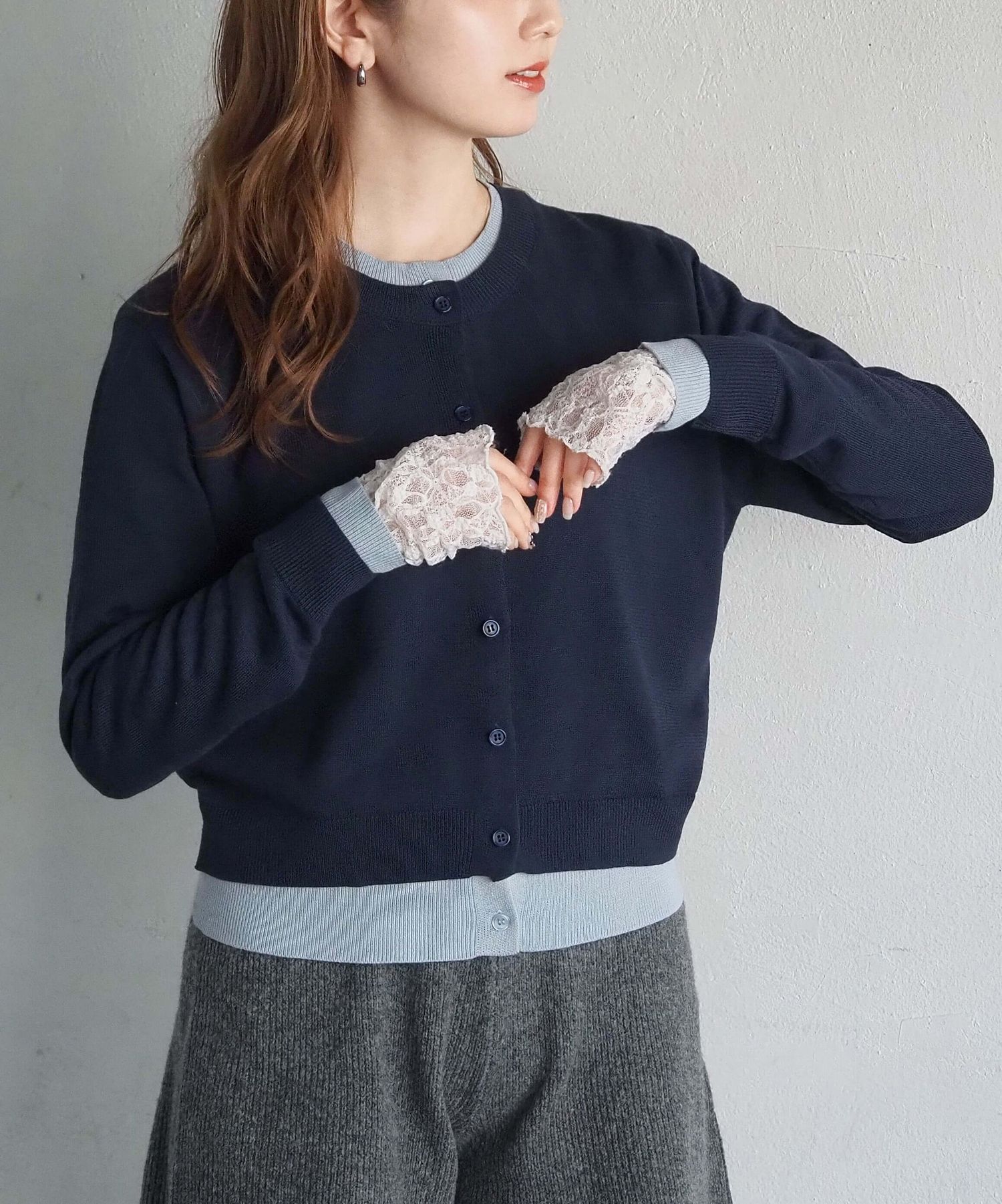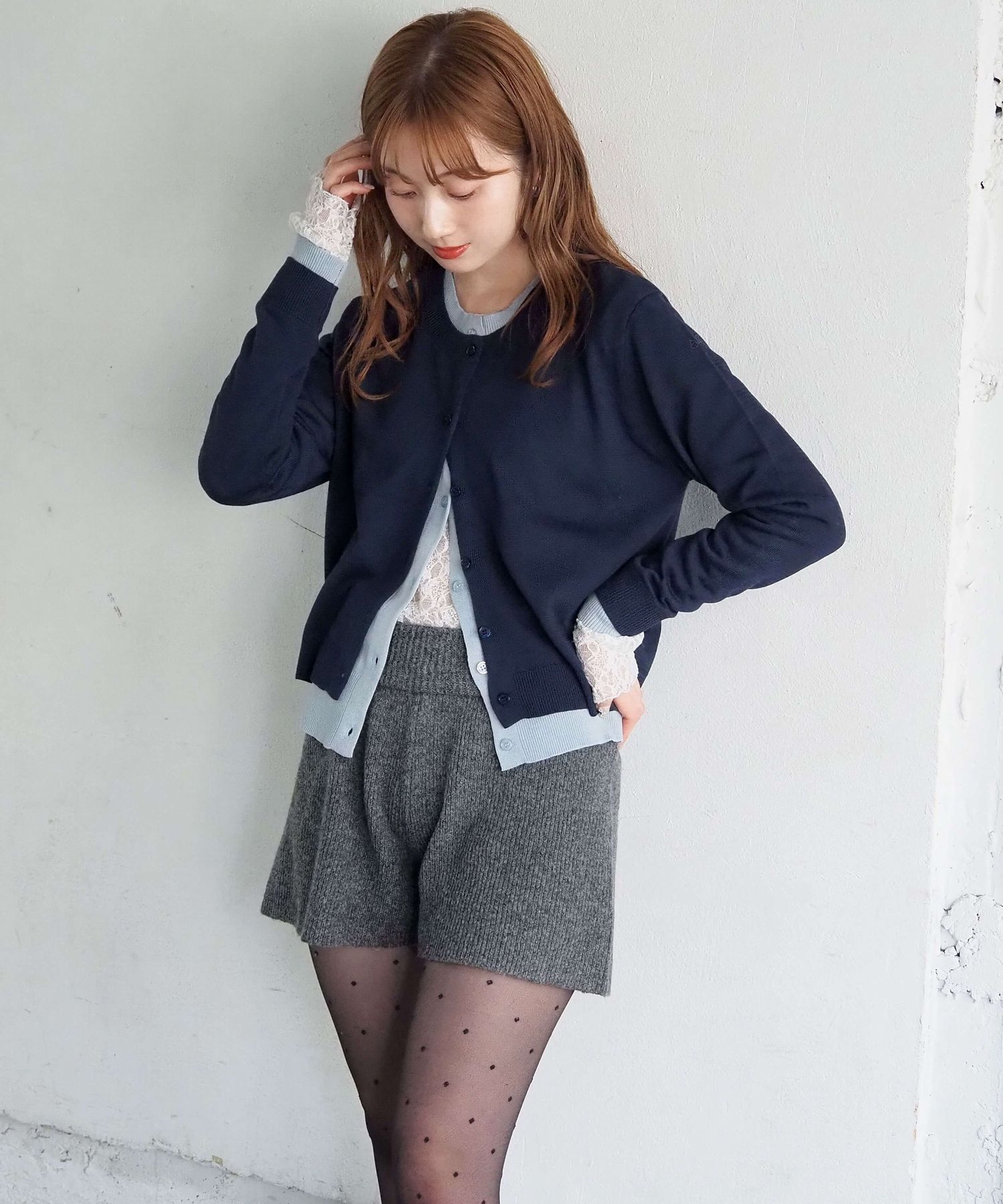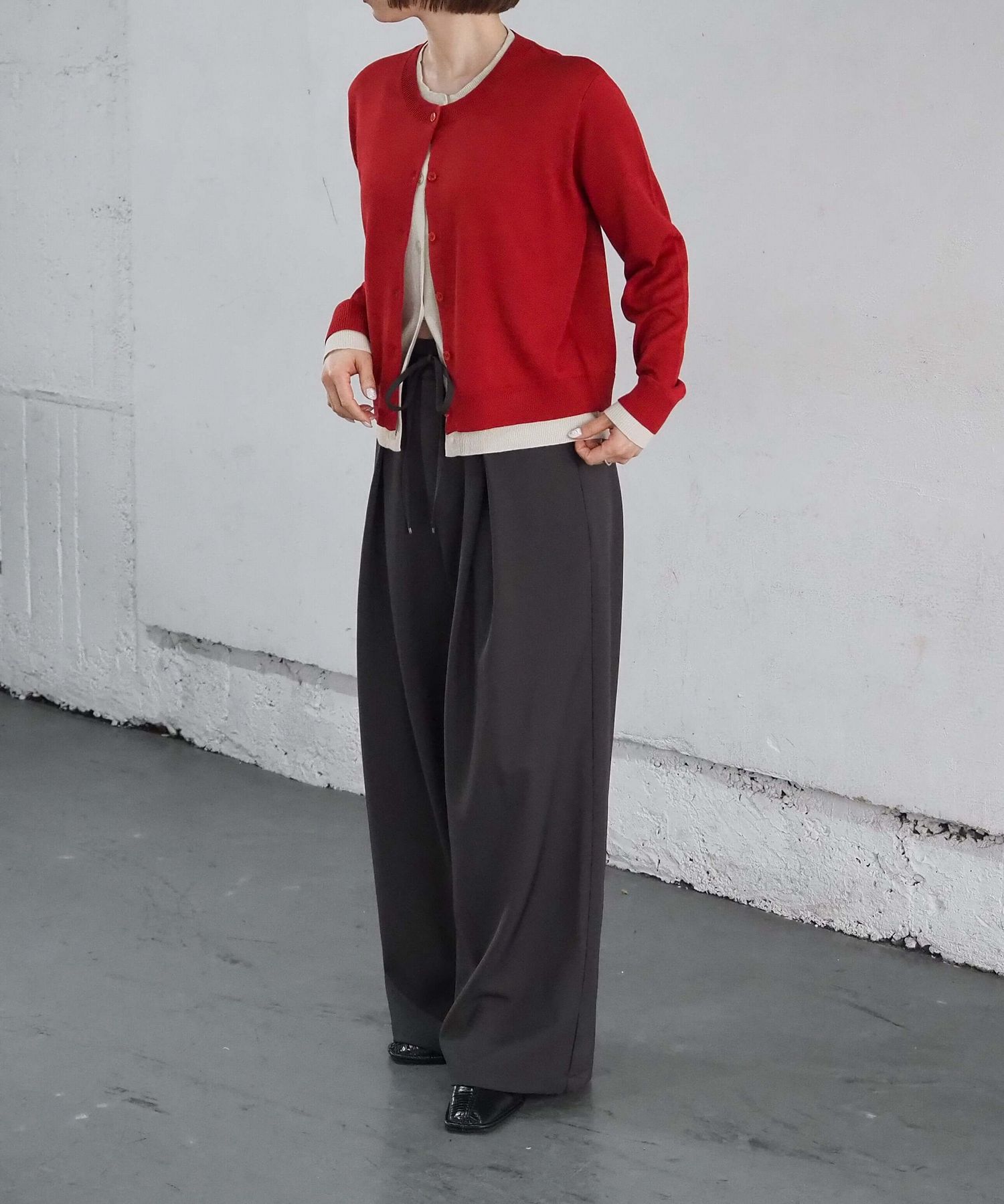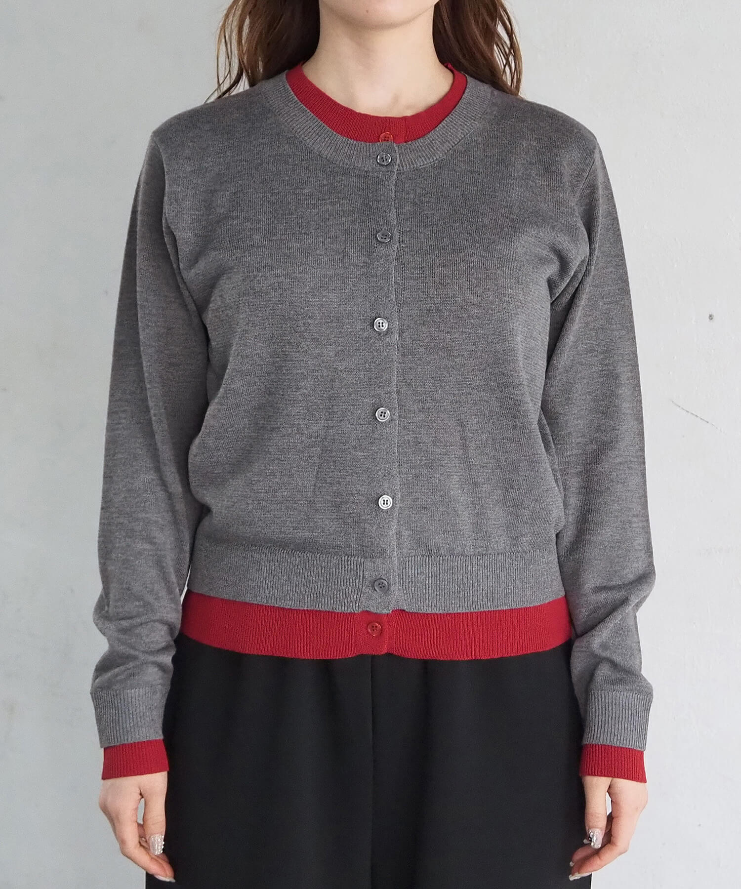 ・2枚のカーディガンを重ね着したような、1枚で旬のスタイルが叶うニットカーディガンです。