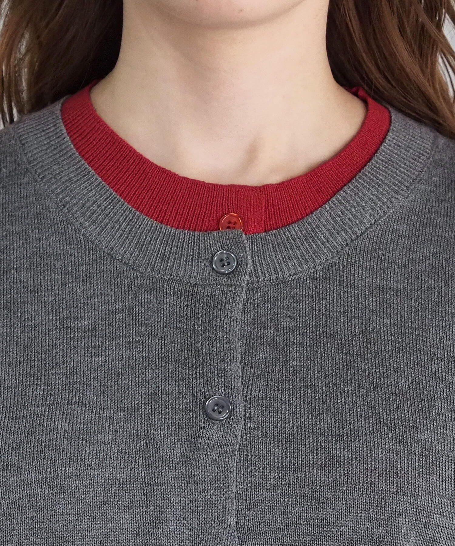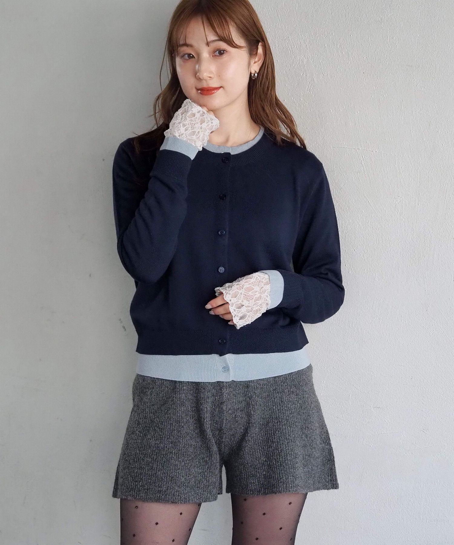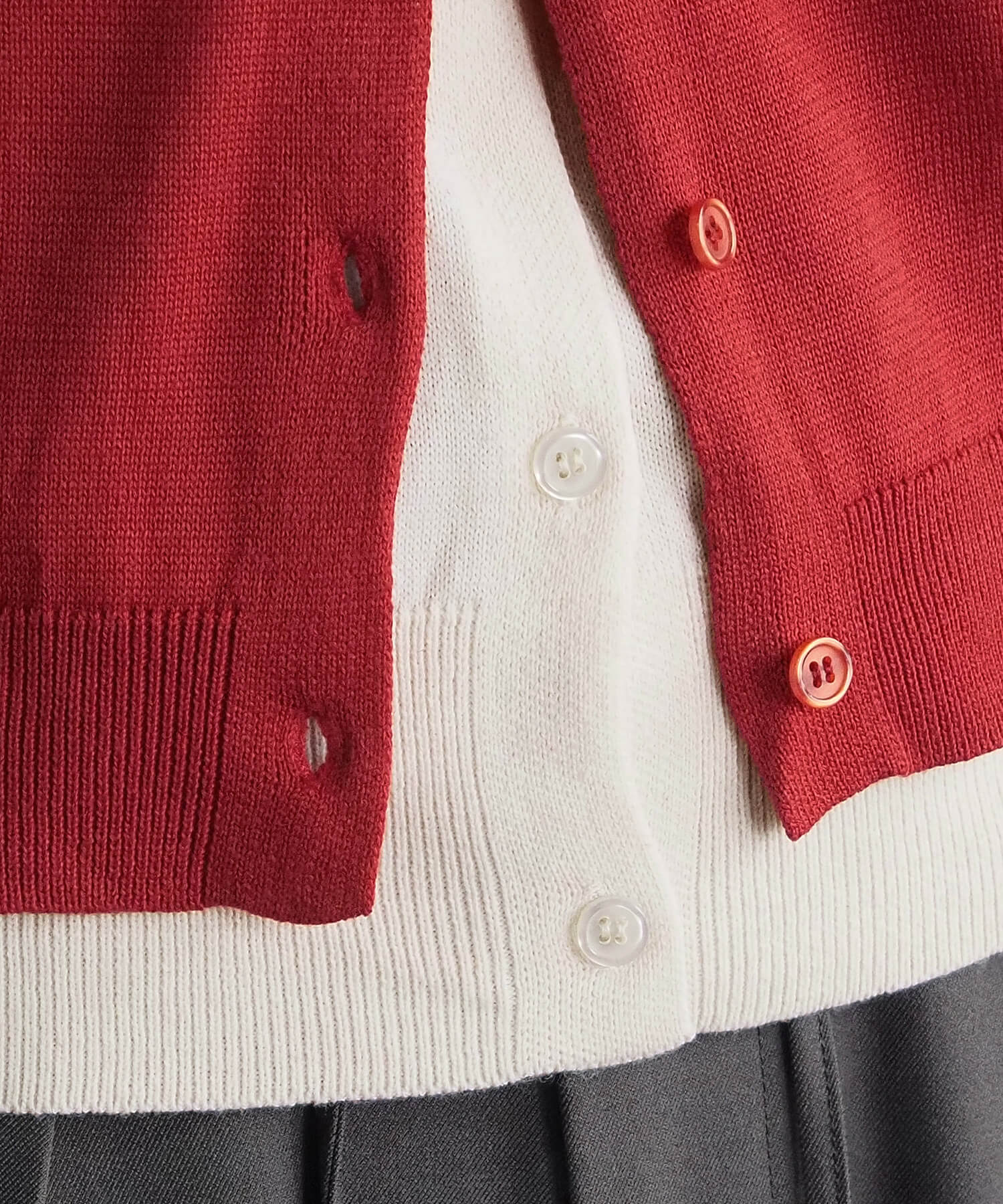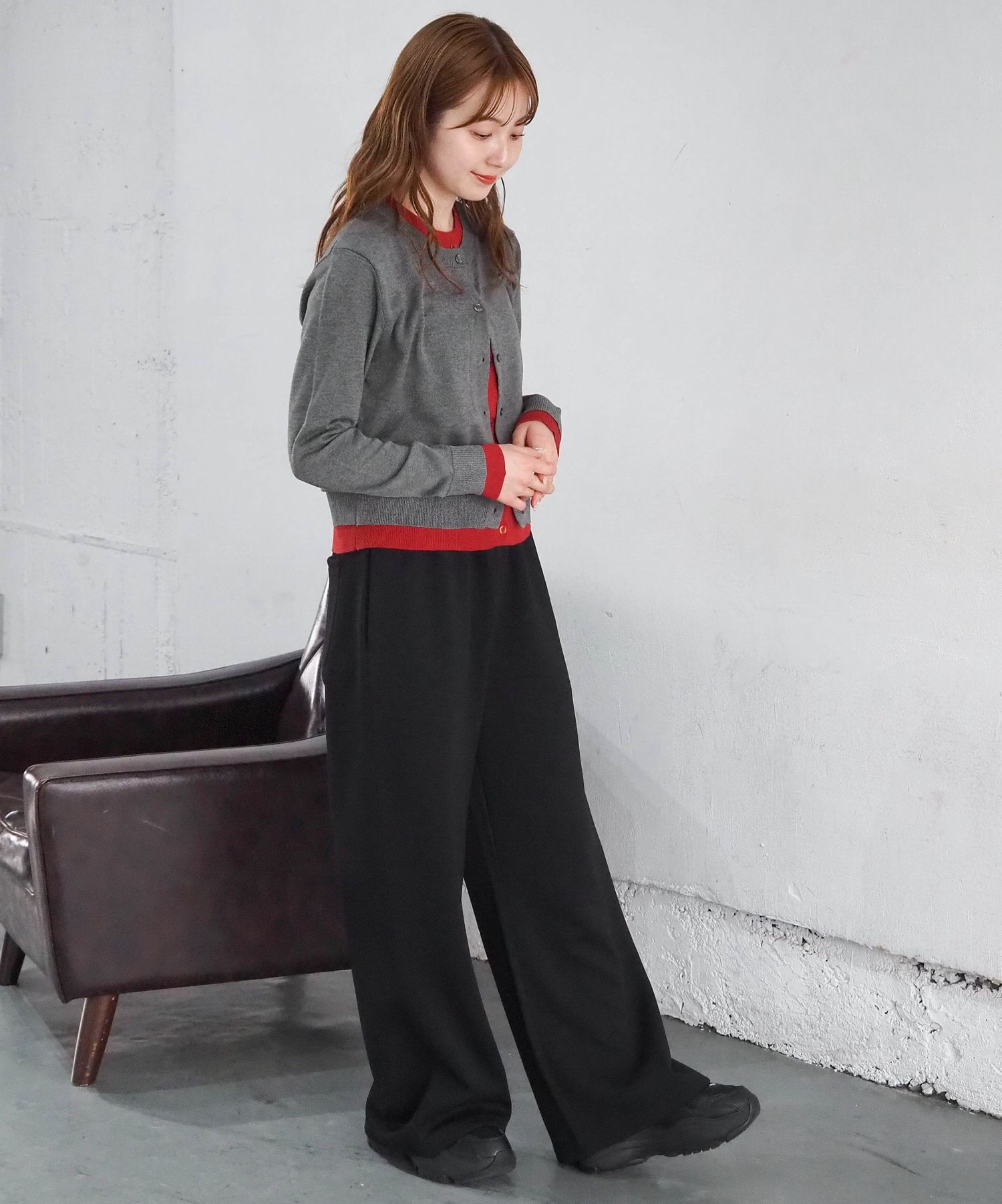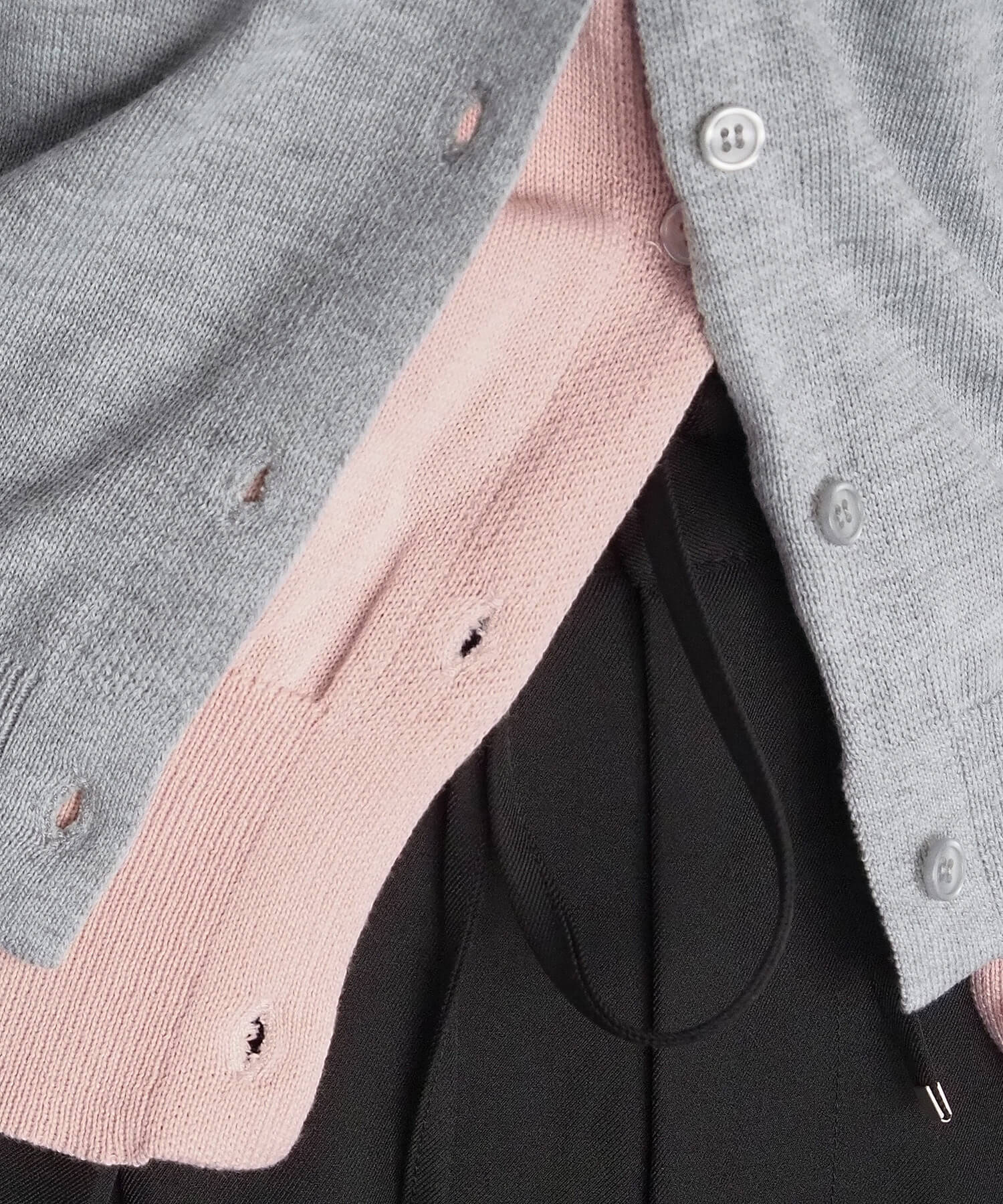 ・2枚のカーディガンを重ね着したような、1枚で旬のスタイルが叶うニットカーディガンです。