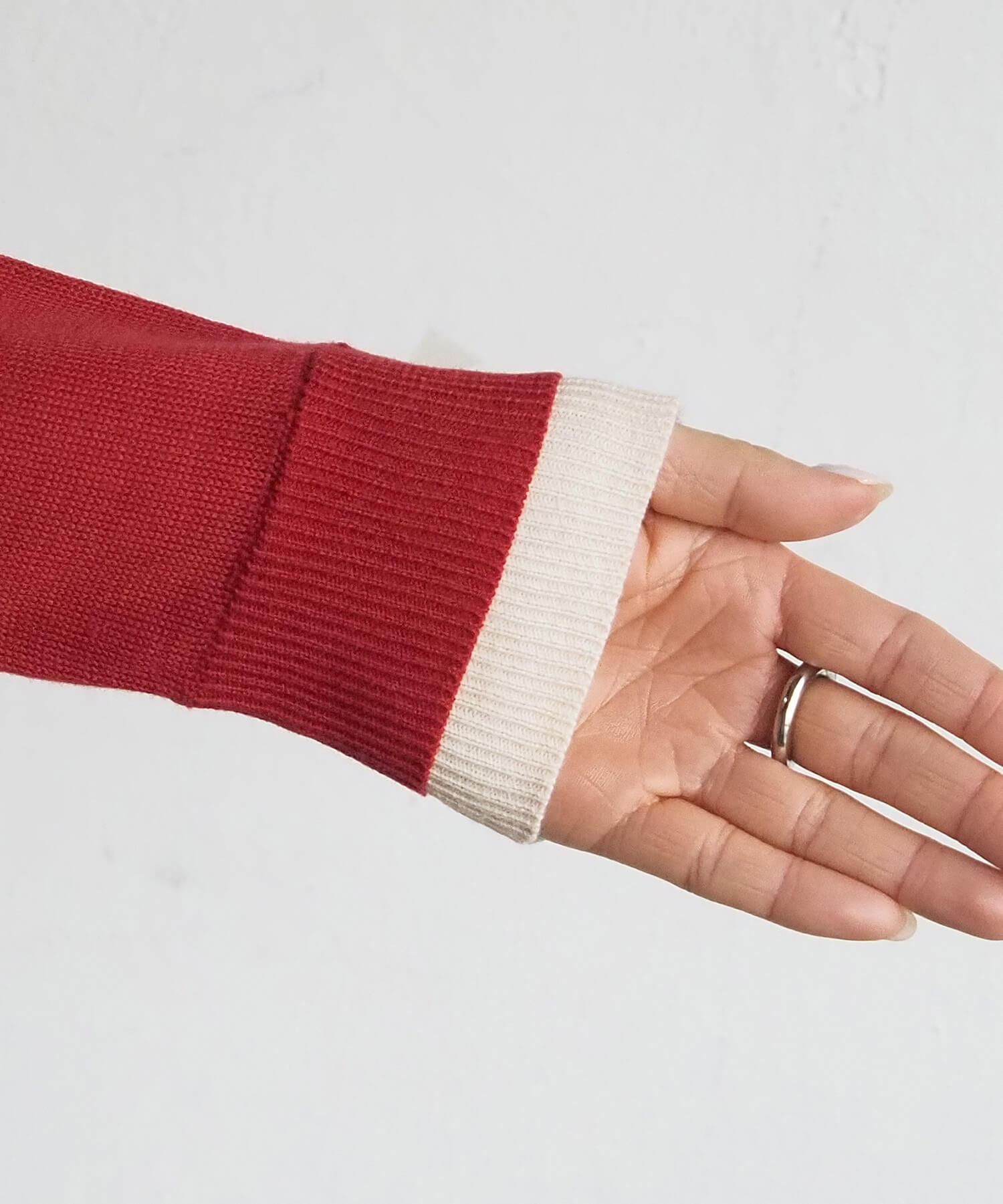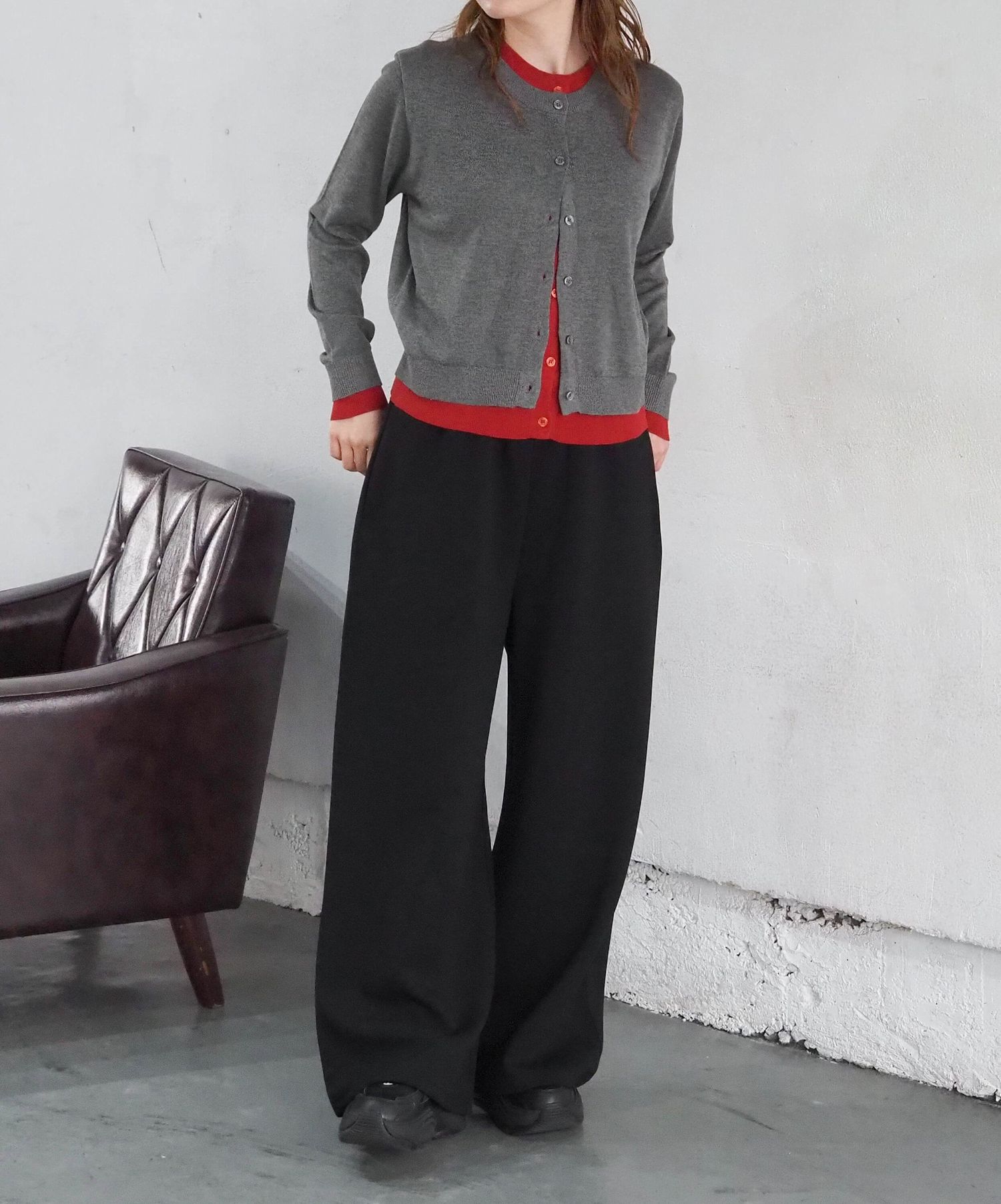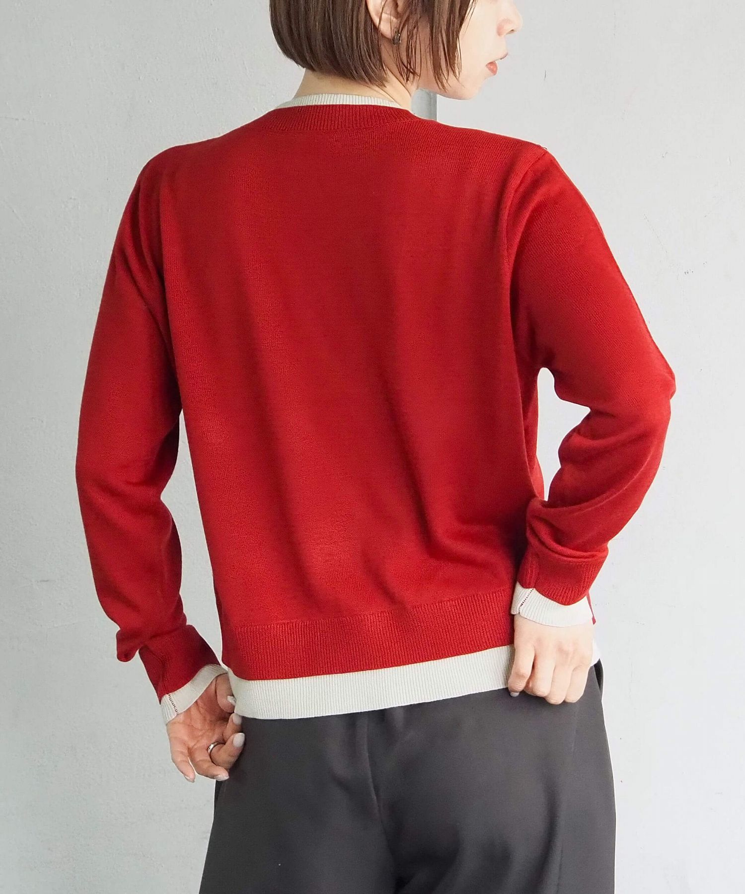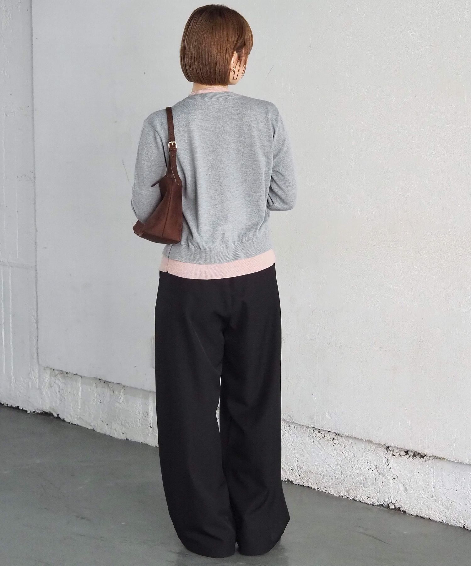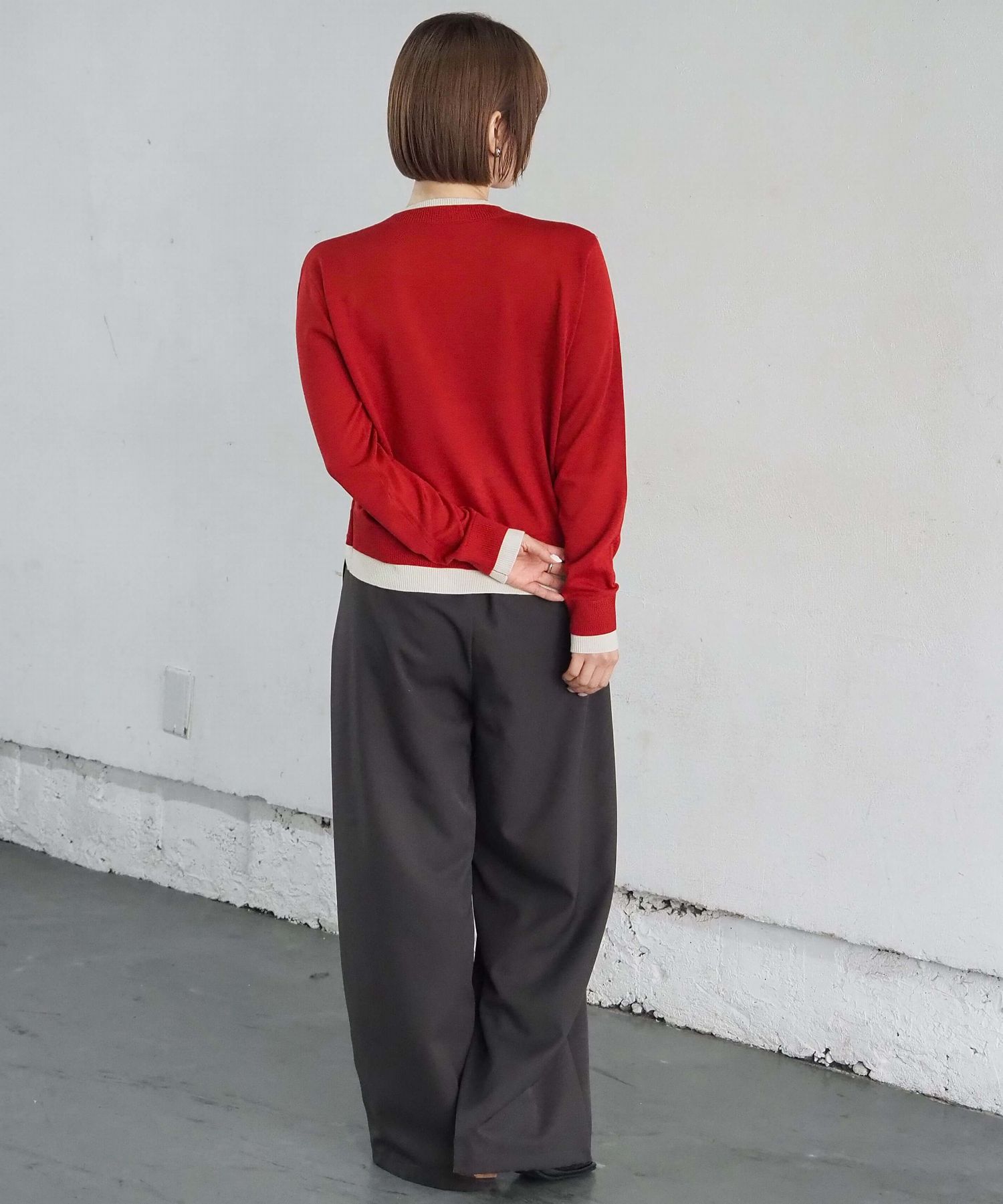 ・程よい厚みの滑らかなニットなので、カジュアルからキレイ目まで、幅広いテイストに馴染みます。