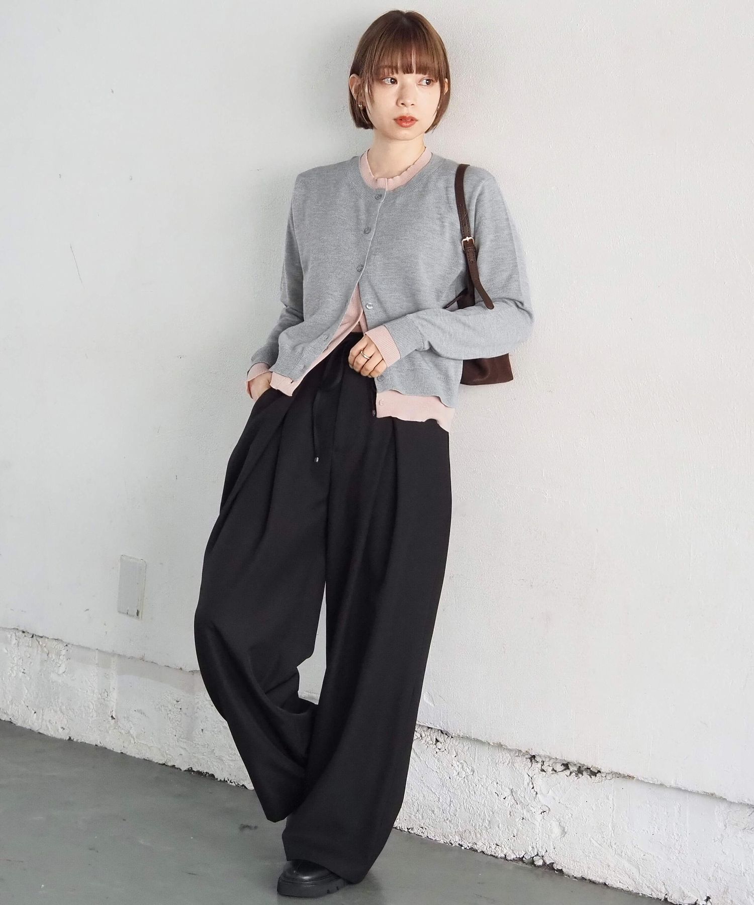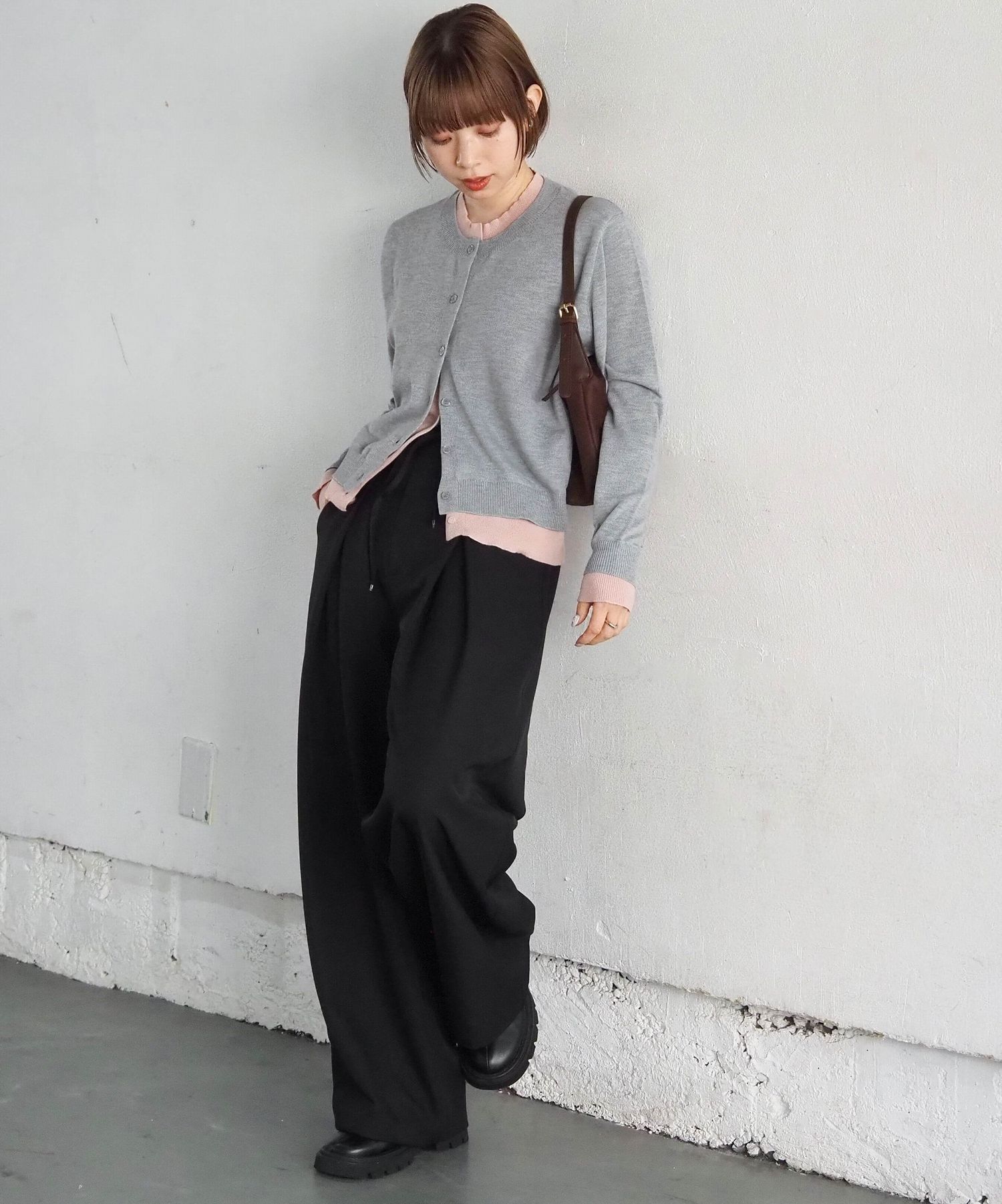 ・いつものボトムスに合わせるだけで、旬のレイヤード風のスタイリングが完成します。