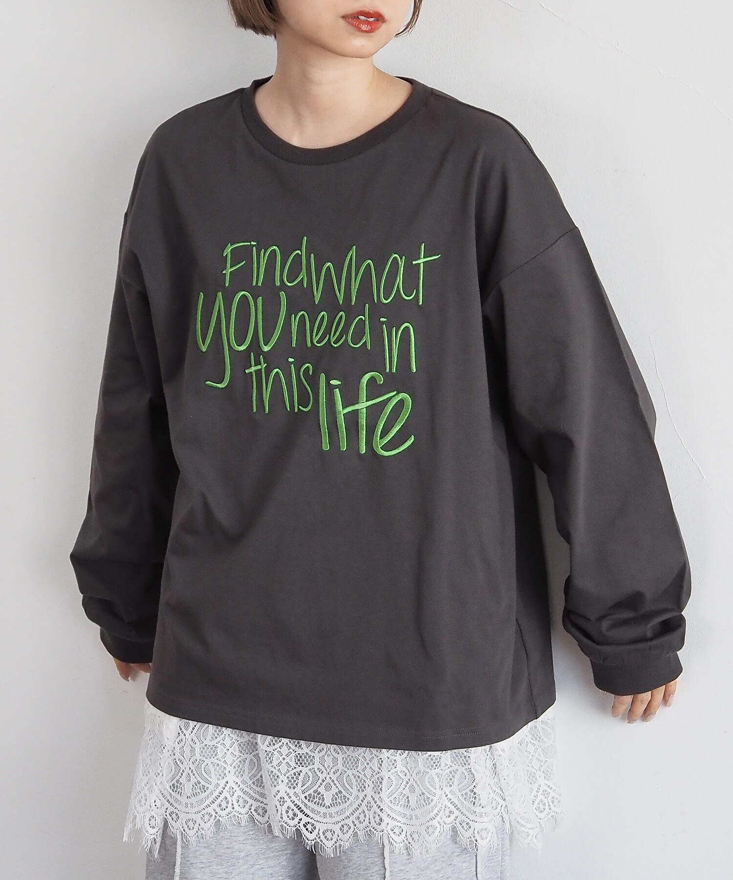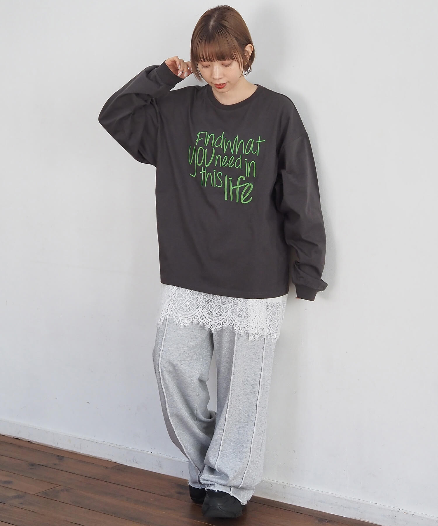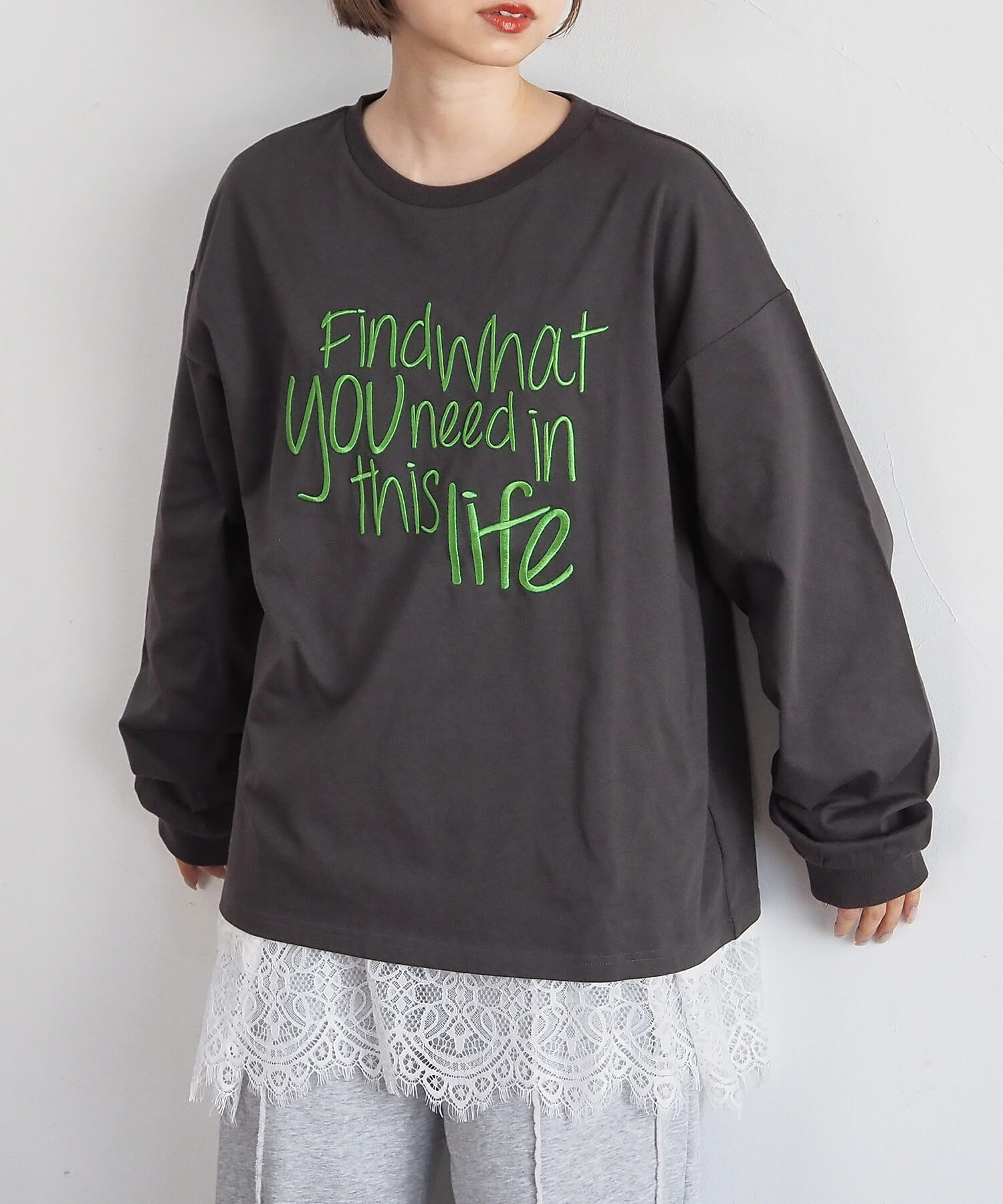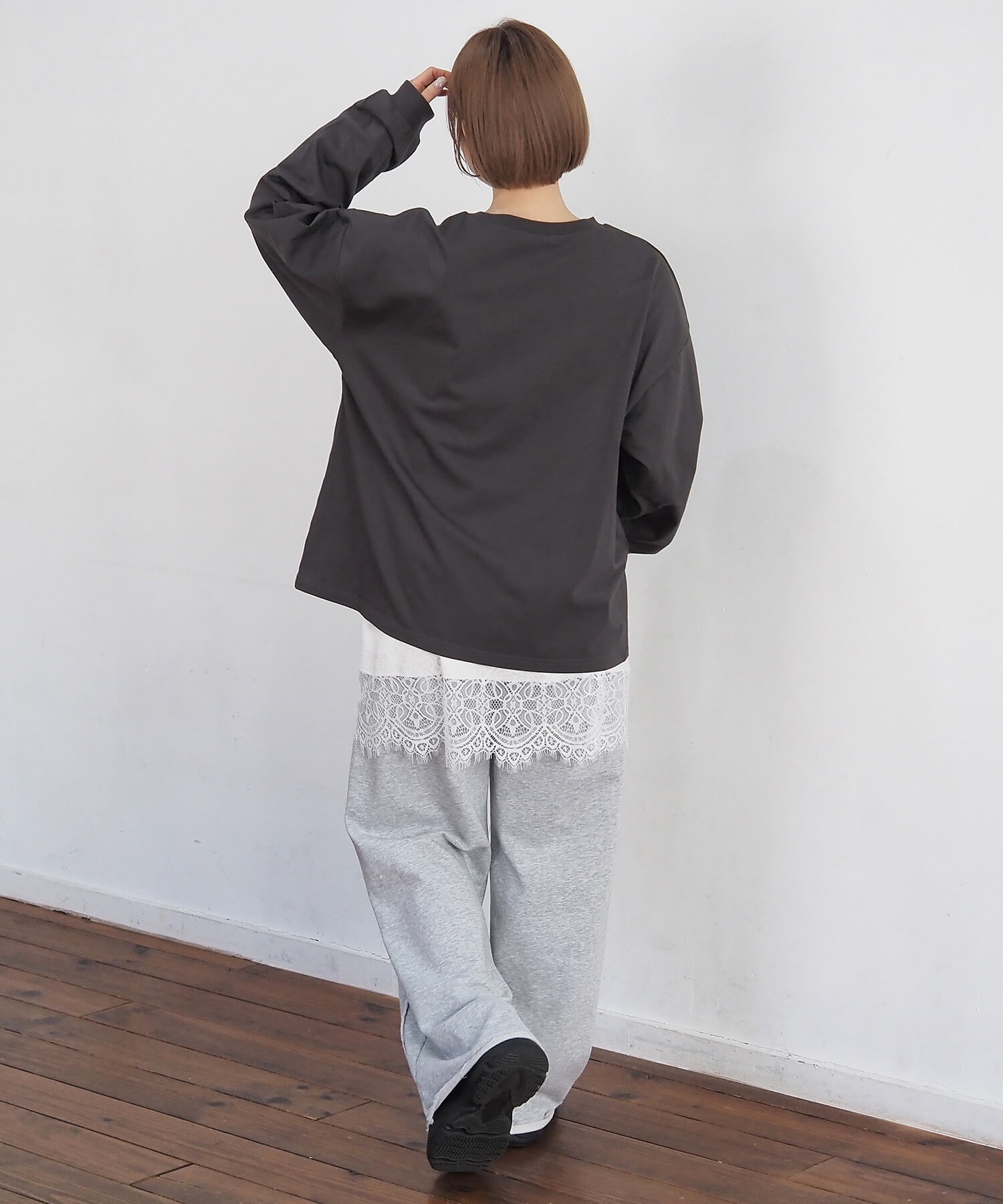 [新色登場] レースアップレイヤード長袖プルオーバー