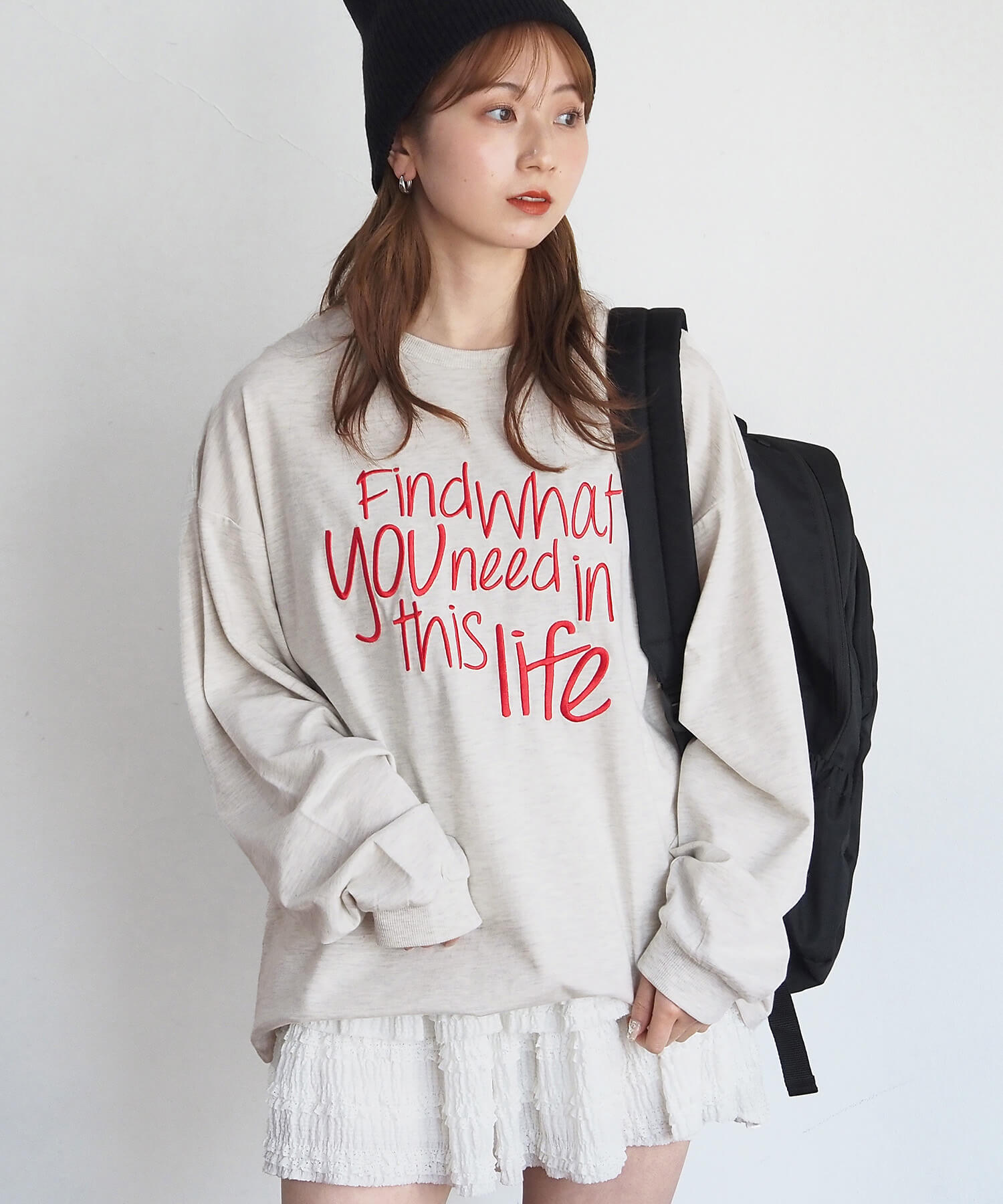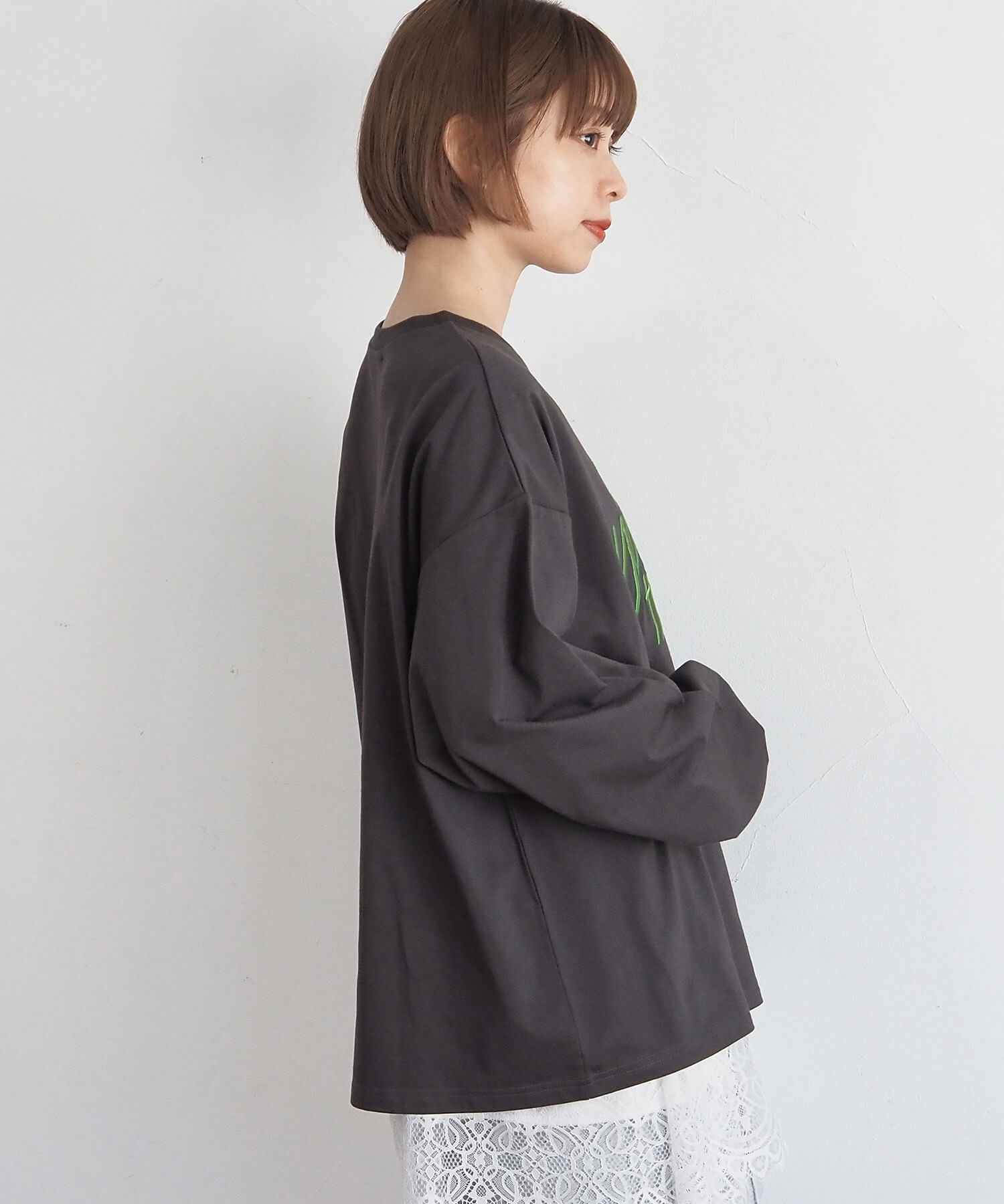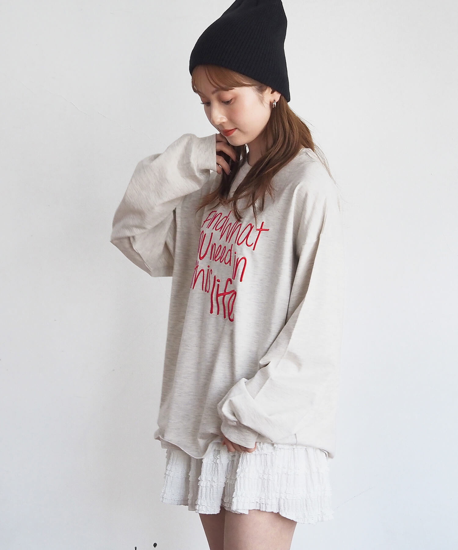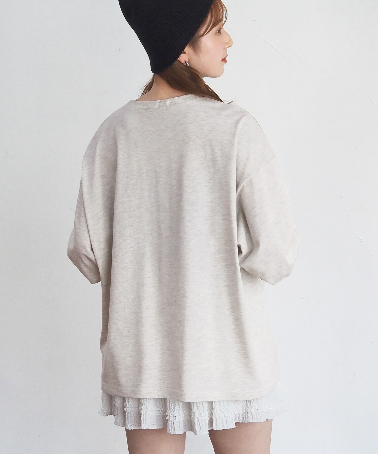 ・柔らかい生地を使用しているので、レイヤードやウェストインなど、幅広い着こなしが楽しめます。