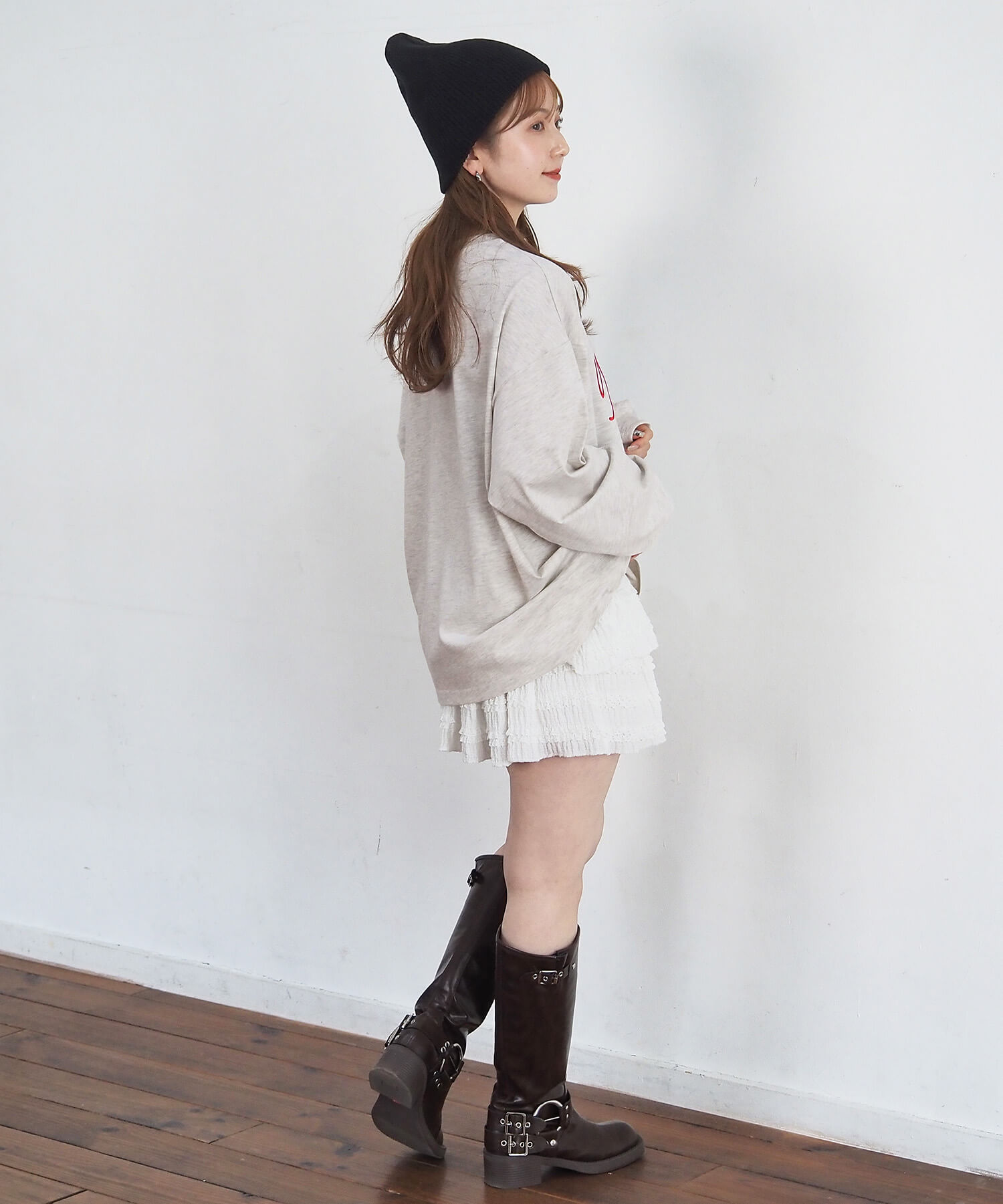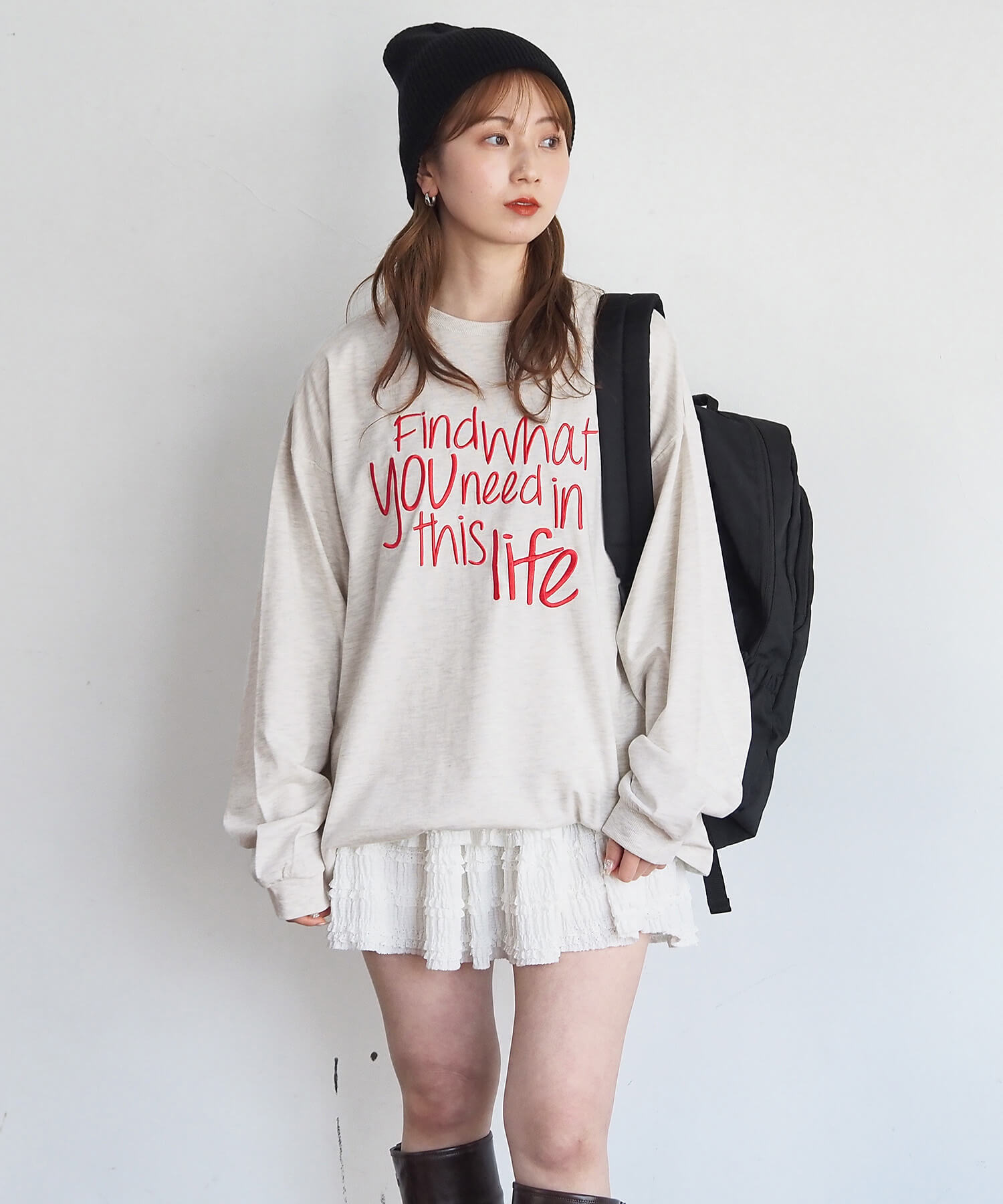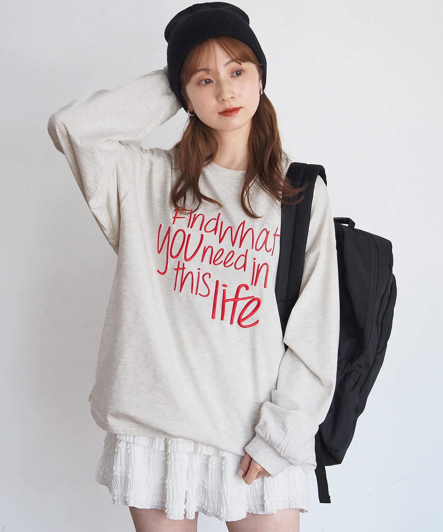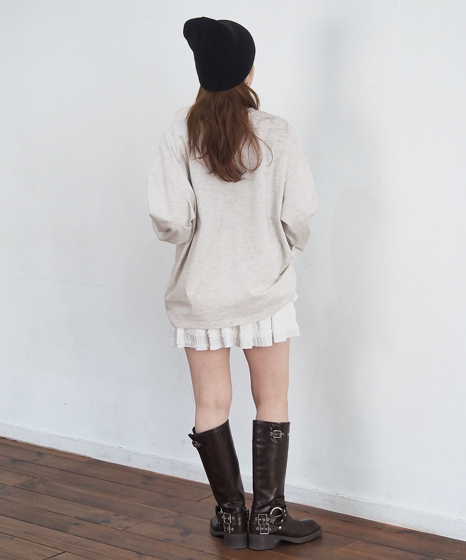 ・柔らかい生地を使用しているので、レイヤードやウェストインなど、幅広い着こなしが楽しめます。