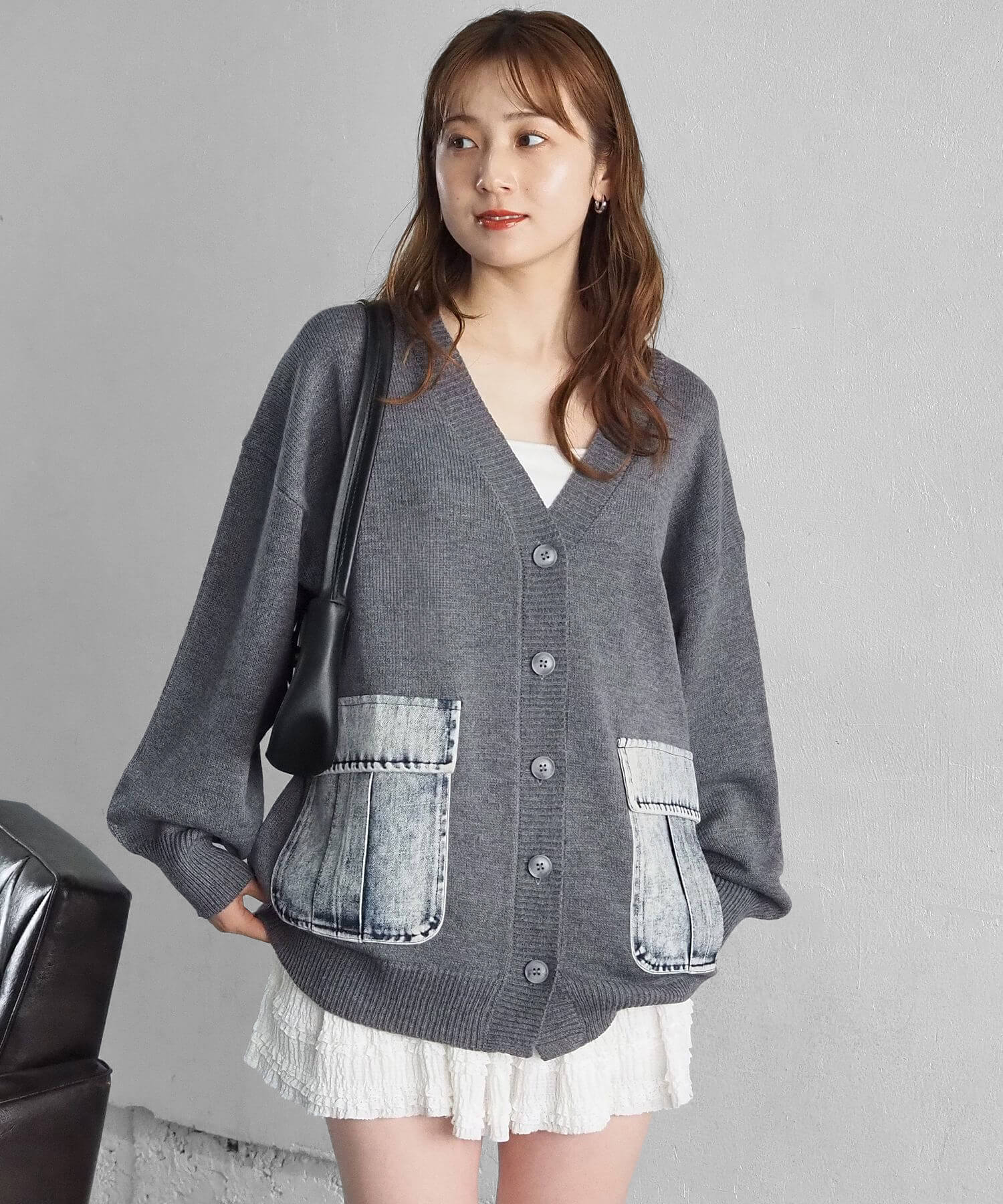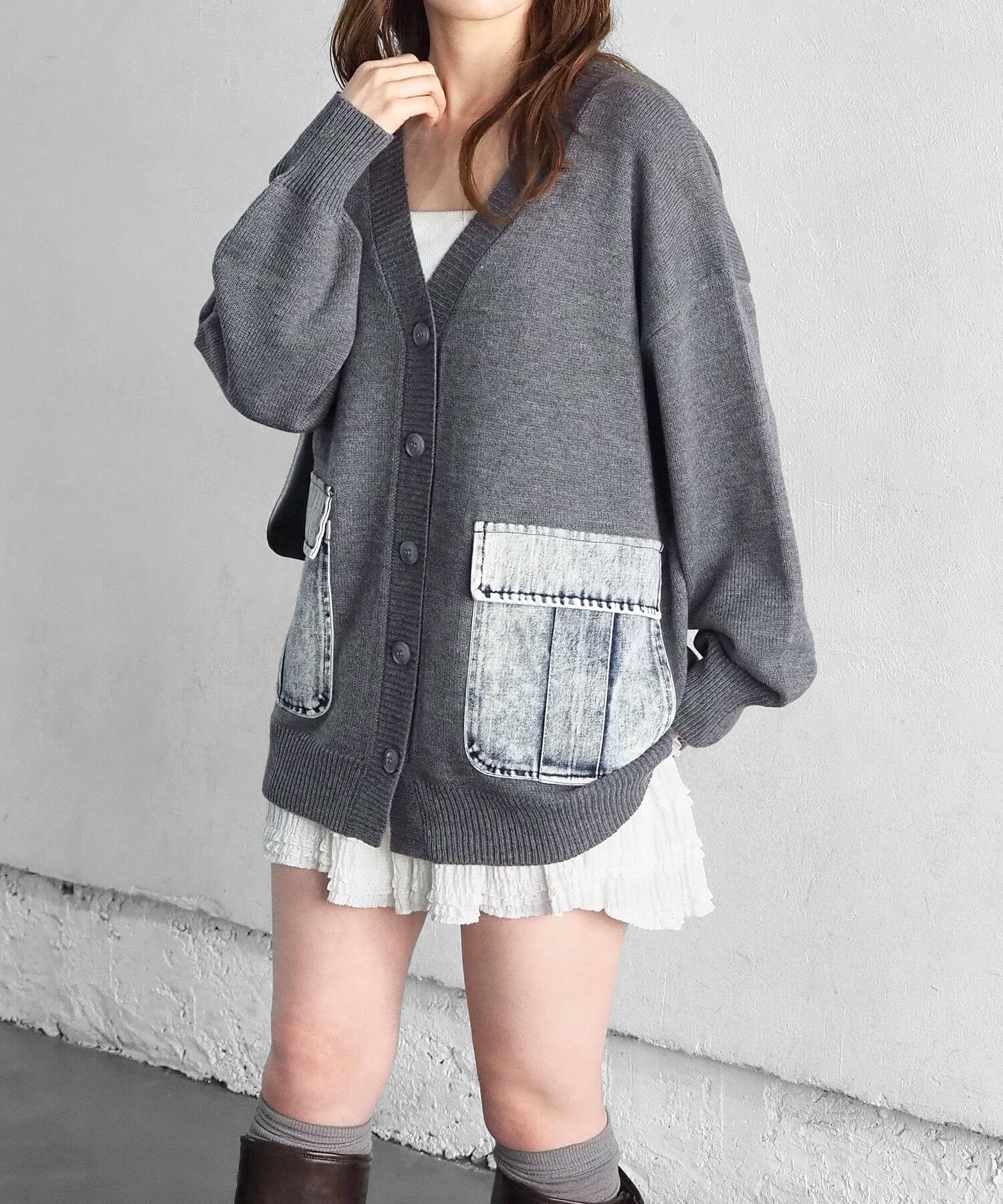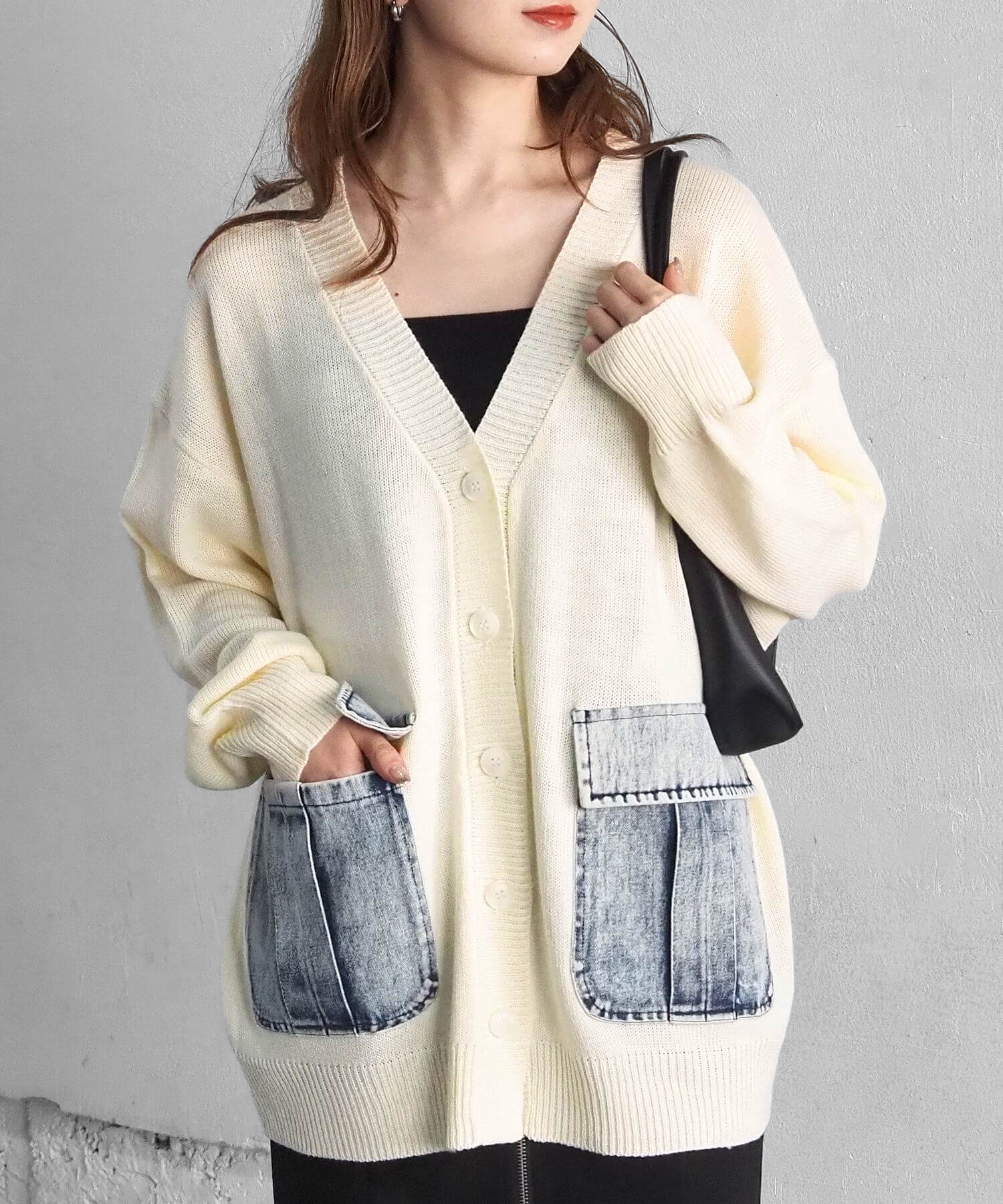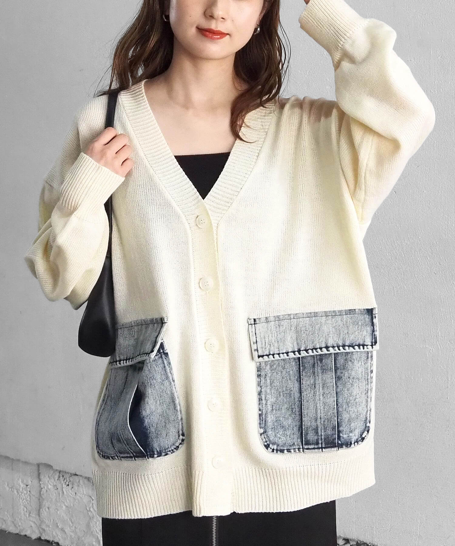 ・ビッグポケットがキャッチーなVネックカーディガンです。