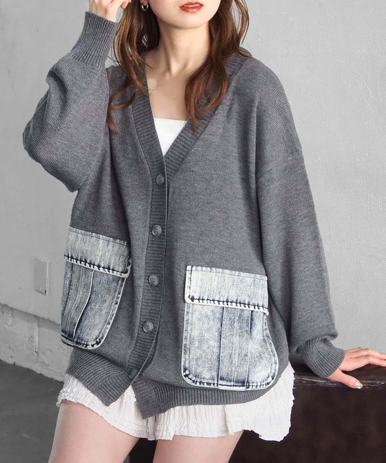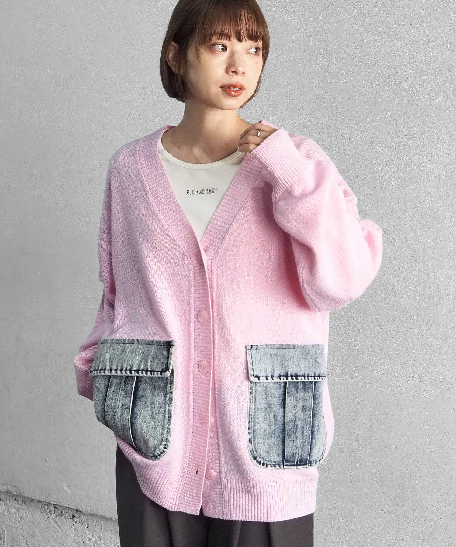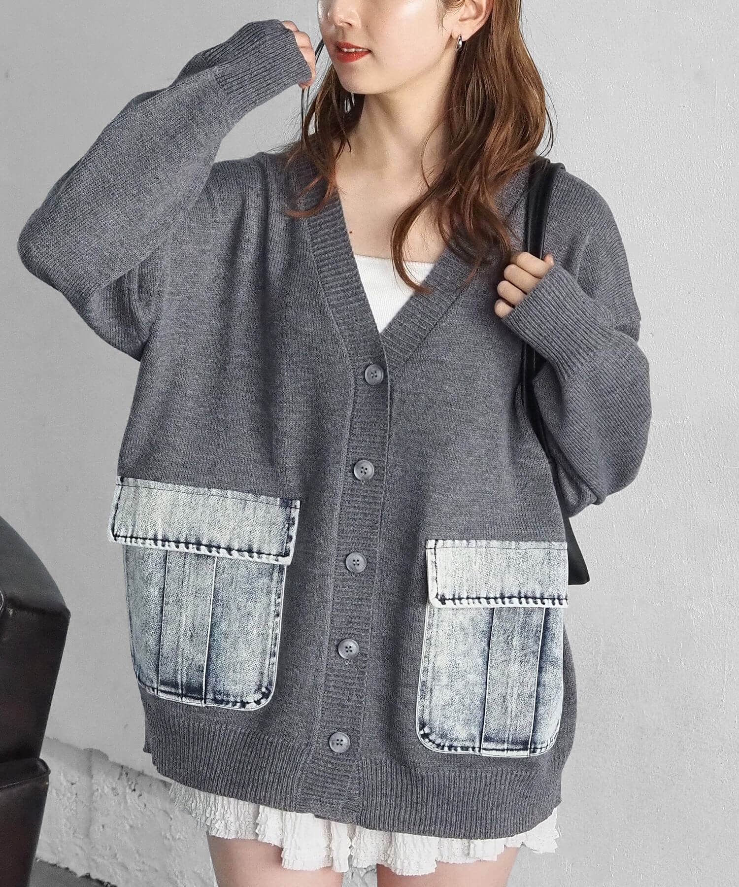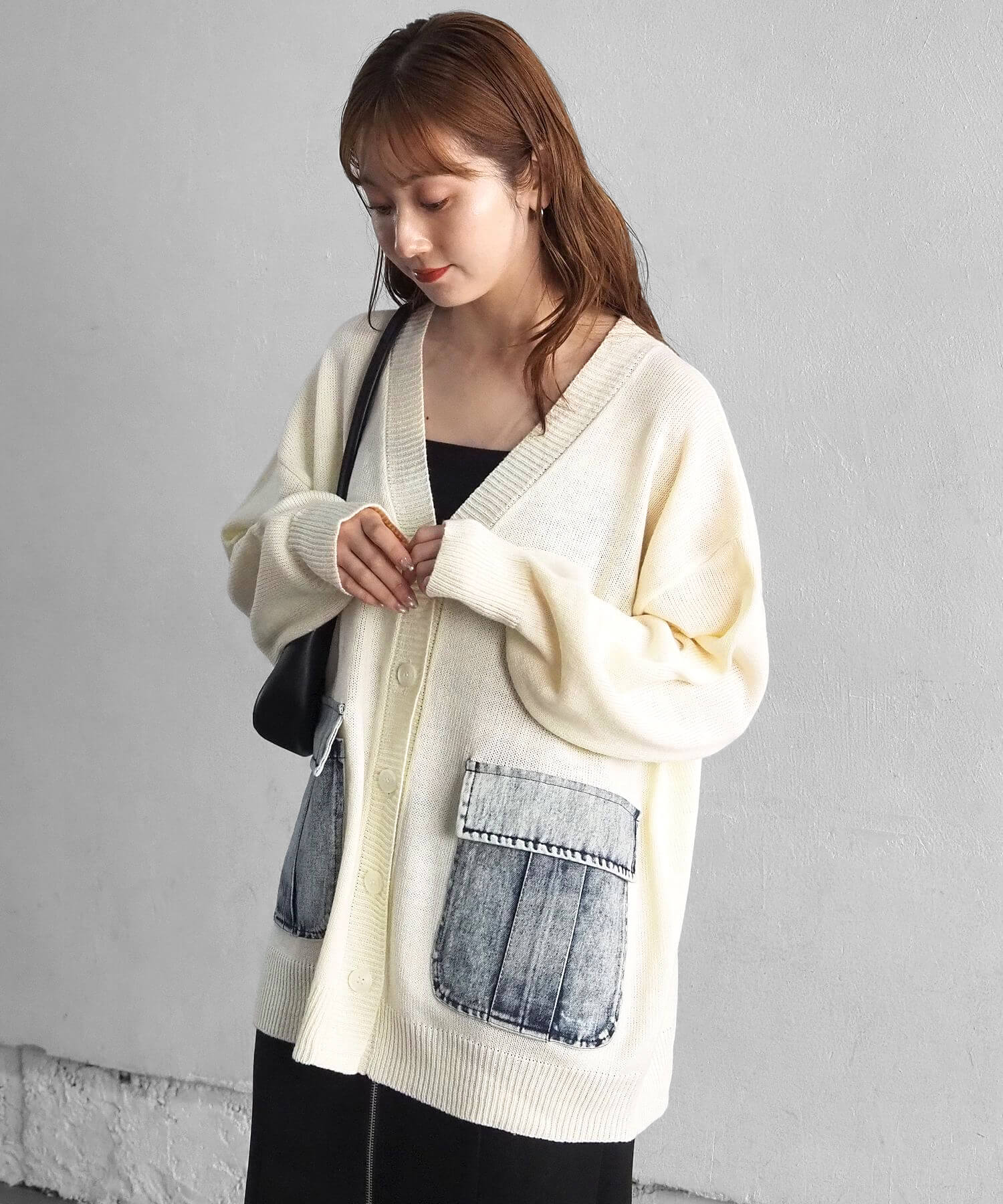 ・ビッグポケットがキャッチーなVネックカーディガンです。