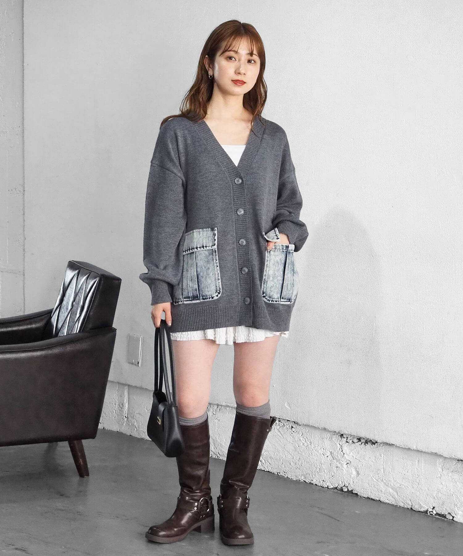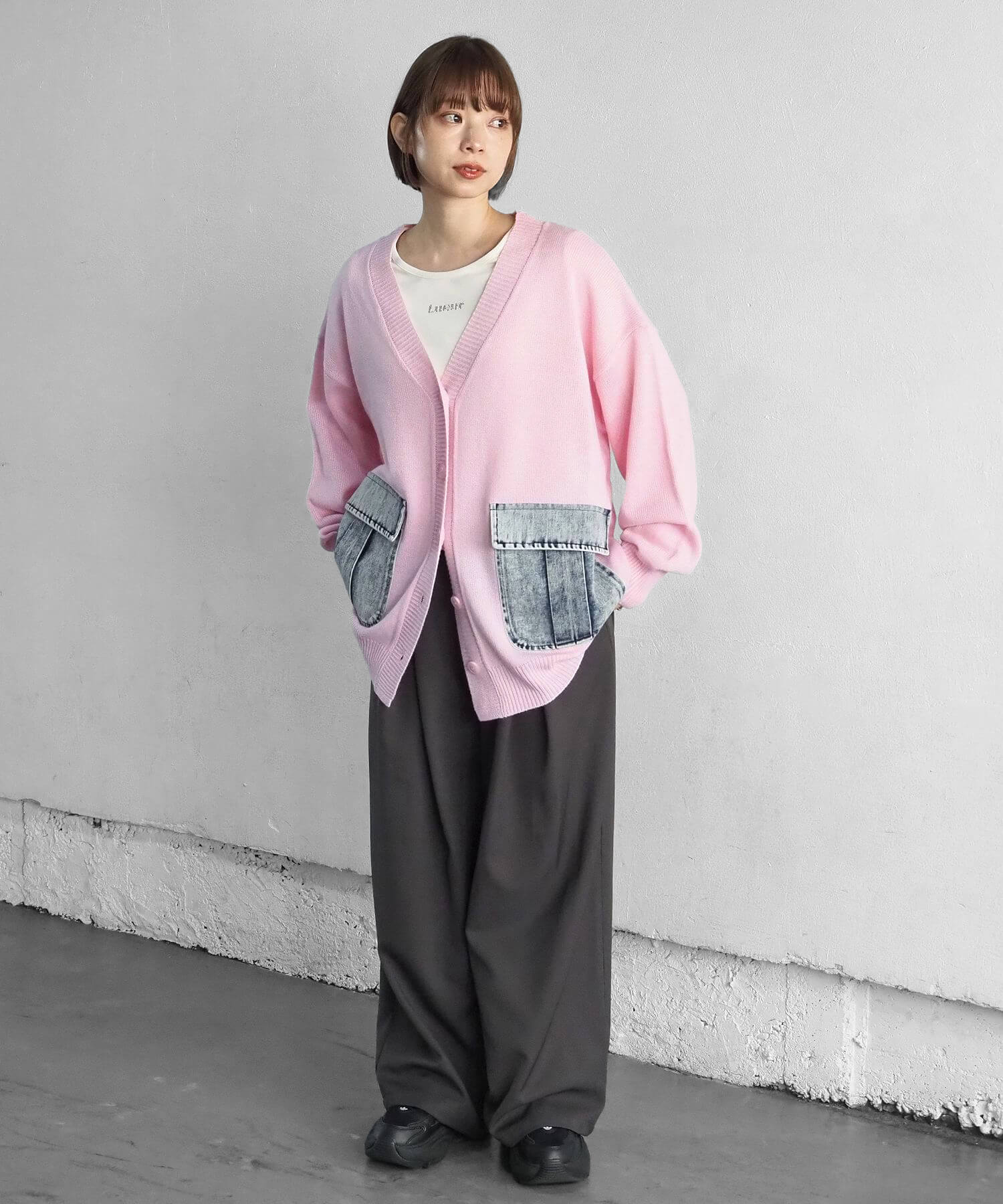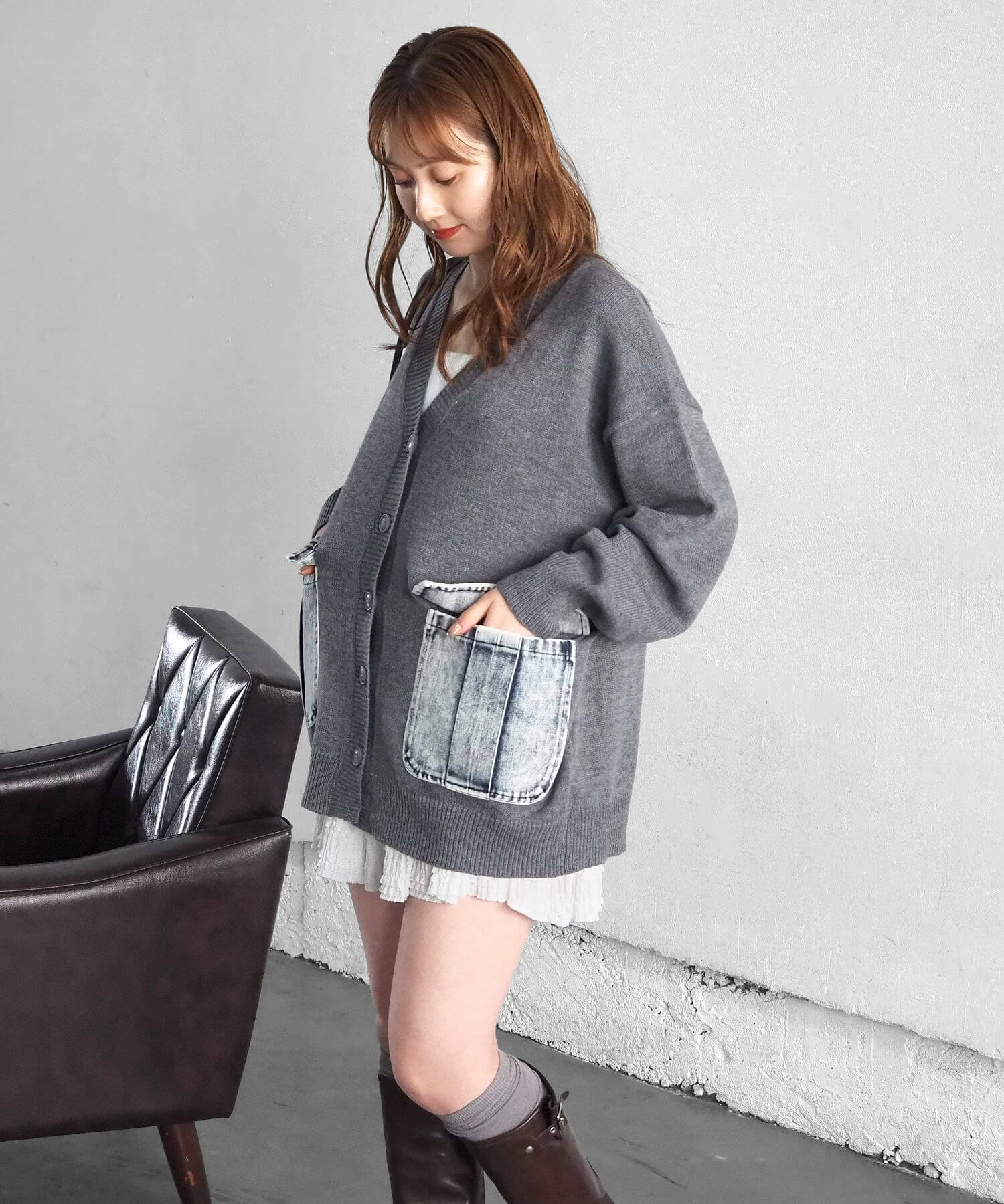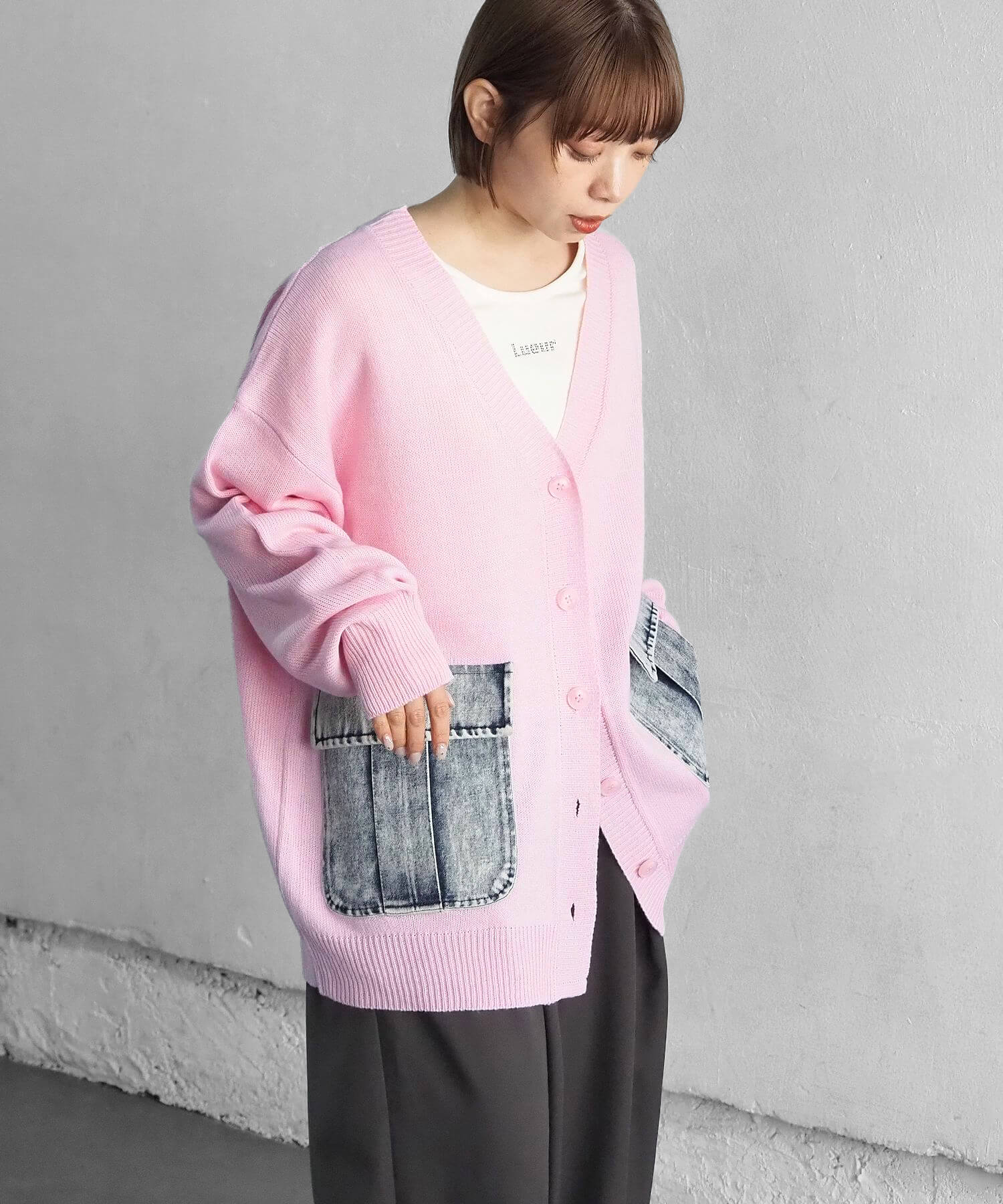 ・ビッグポケットがキャッチーなVネックカーディガンです。