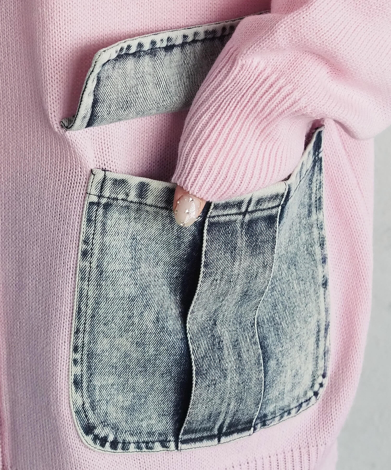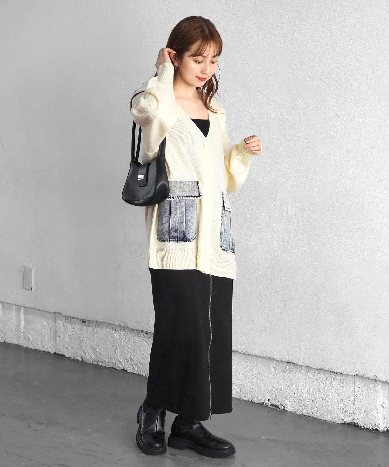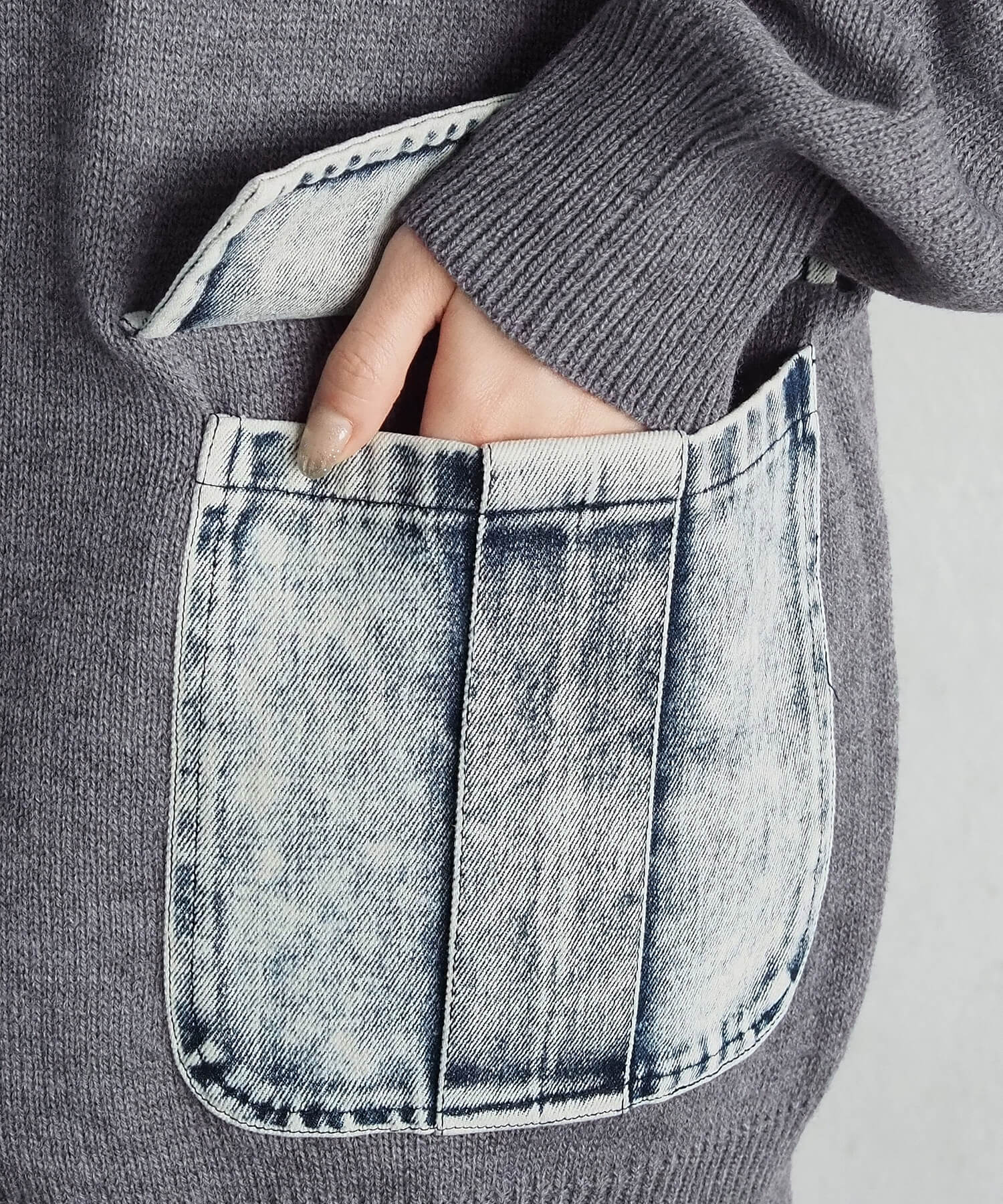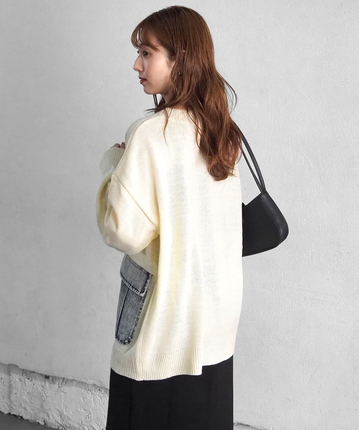 ・配色感のあるデニムポケットでトレンド感をプラス。