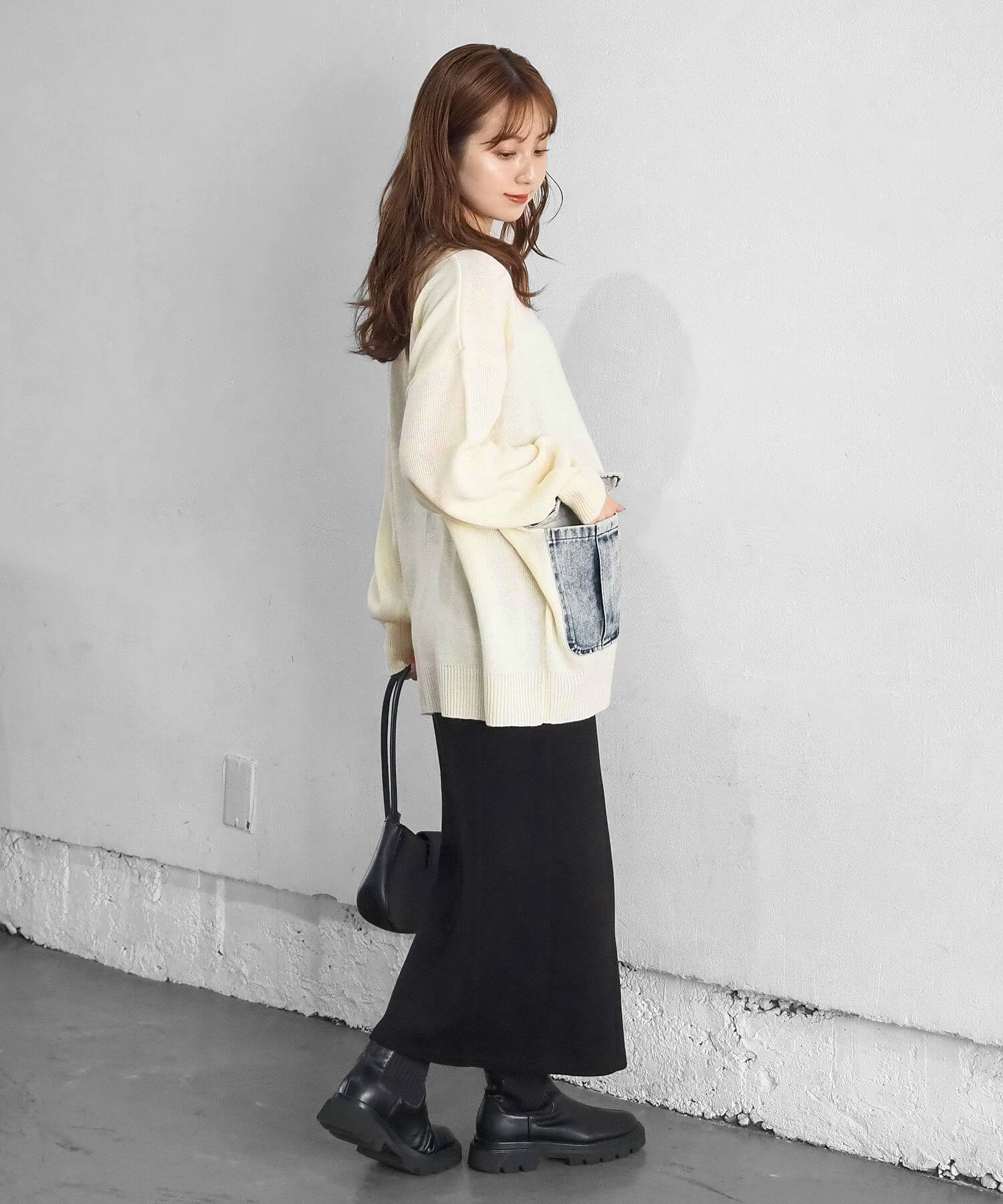 ・ナロースカートですっきりと。女性らしい大人カジュアルが完成します。