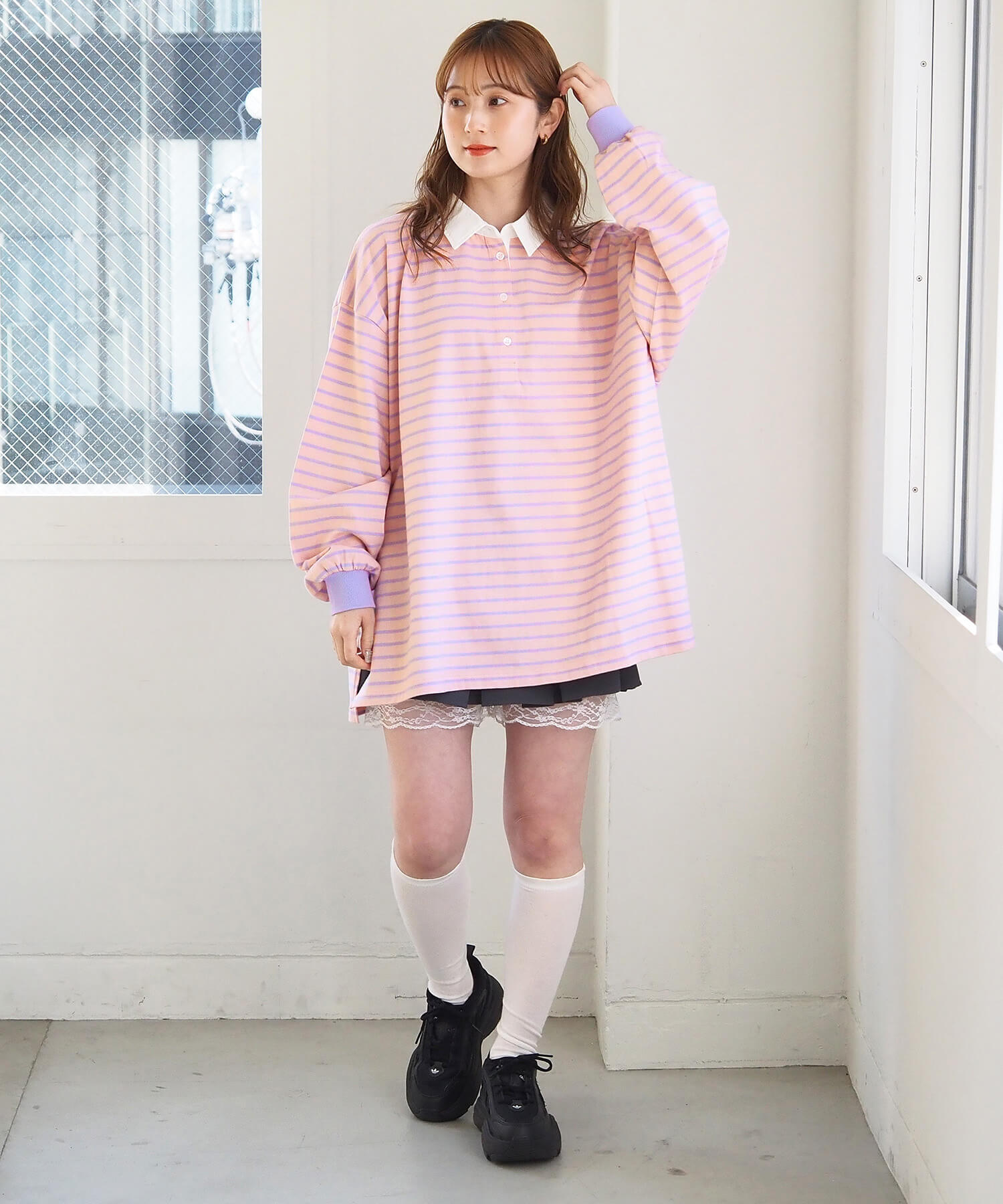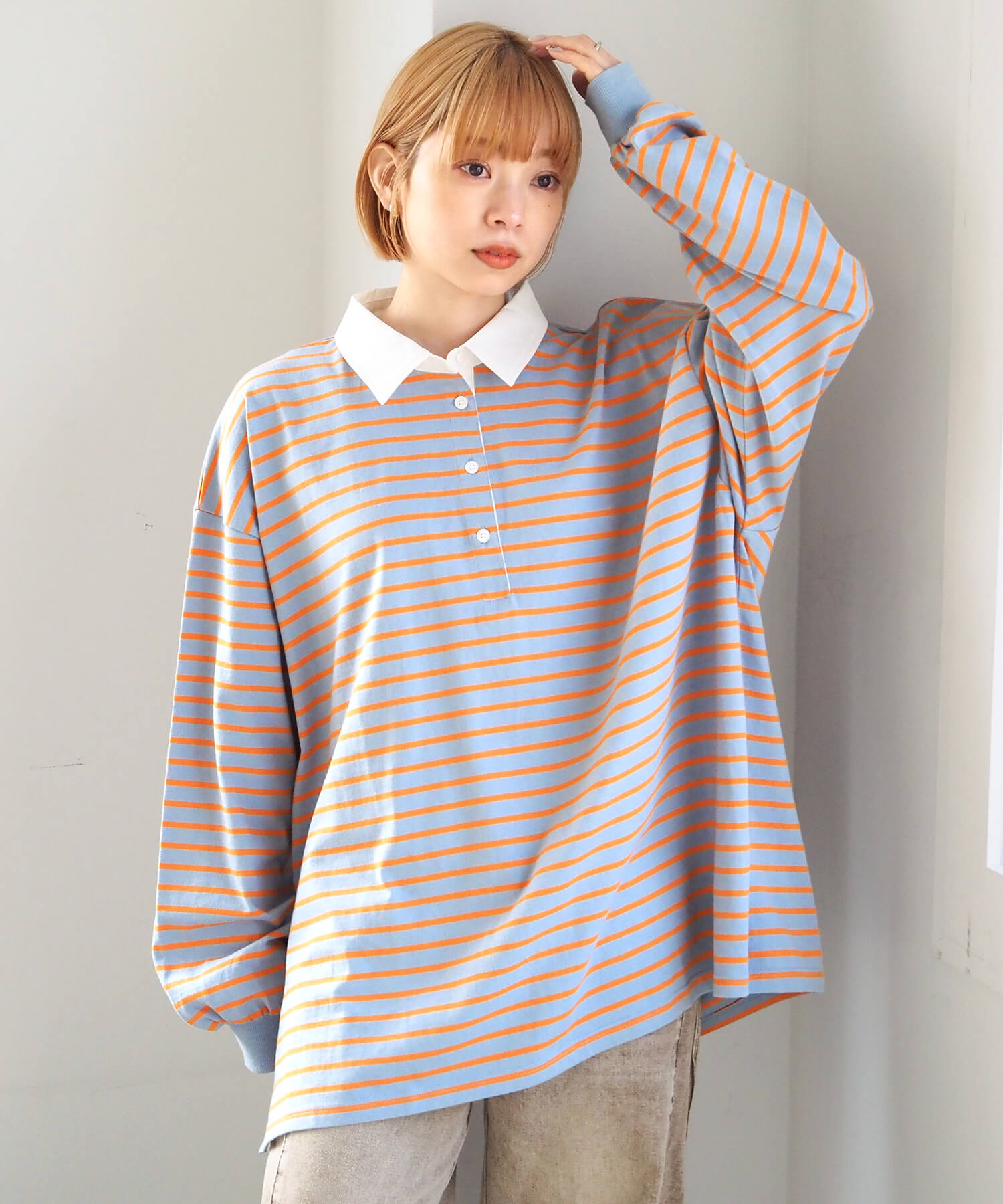 オーバーサイズが可愛いラガーロンT