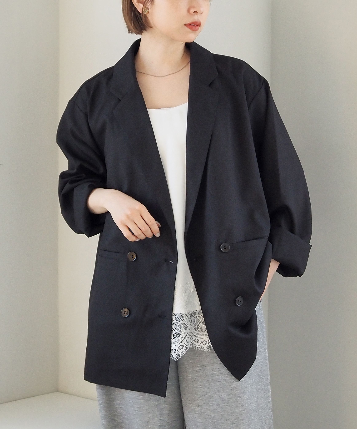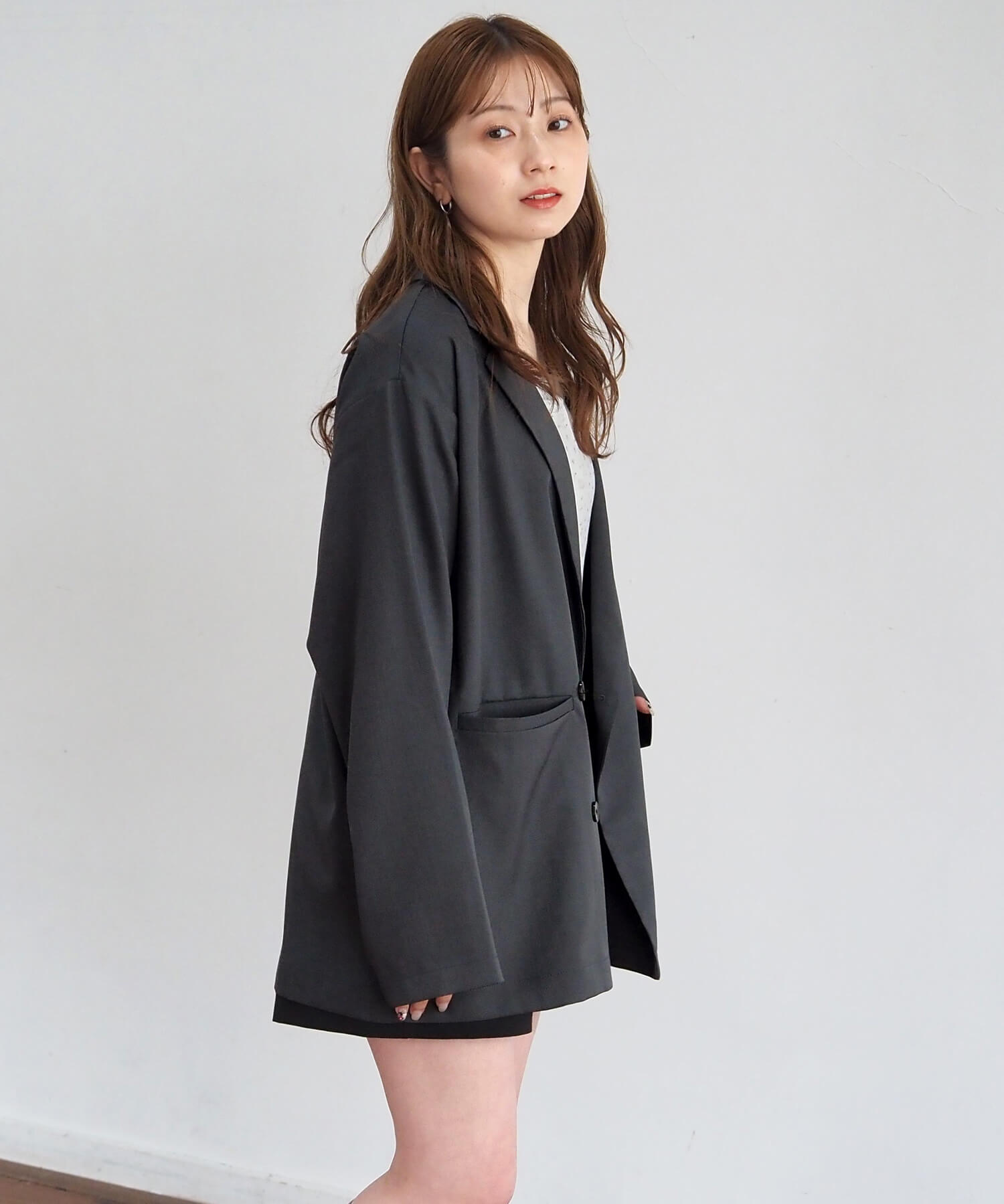 ・羽織るだけでサマになるオーバーサイズのテーラードジャケットです。