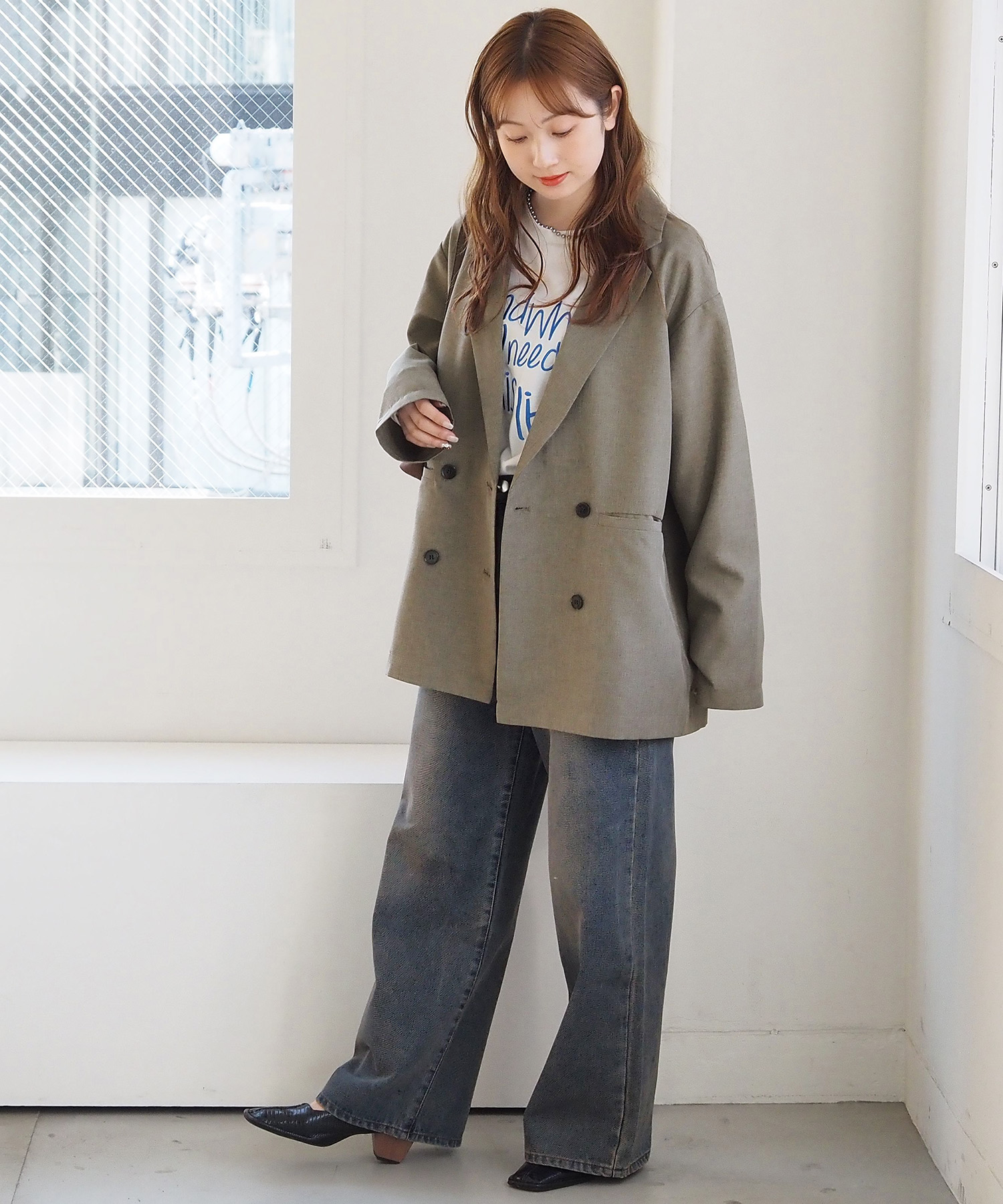 ・ドロップショルダーと長めの袖丈もポイント。メンズライクになりすぎず、自然とこなれ感で出ます。