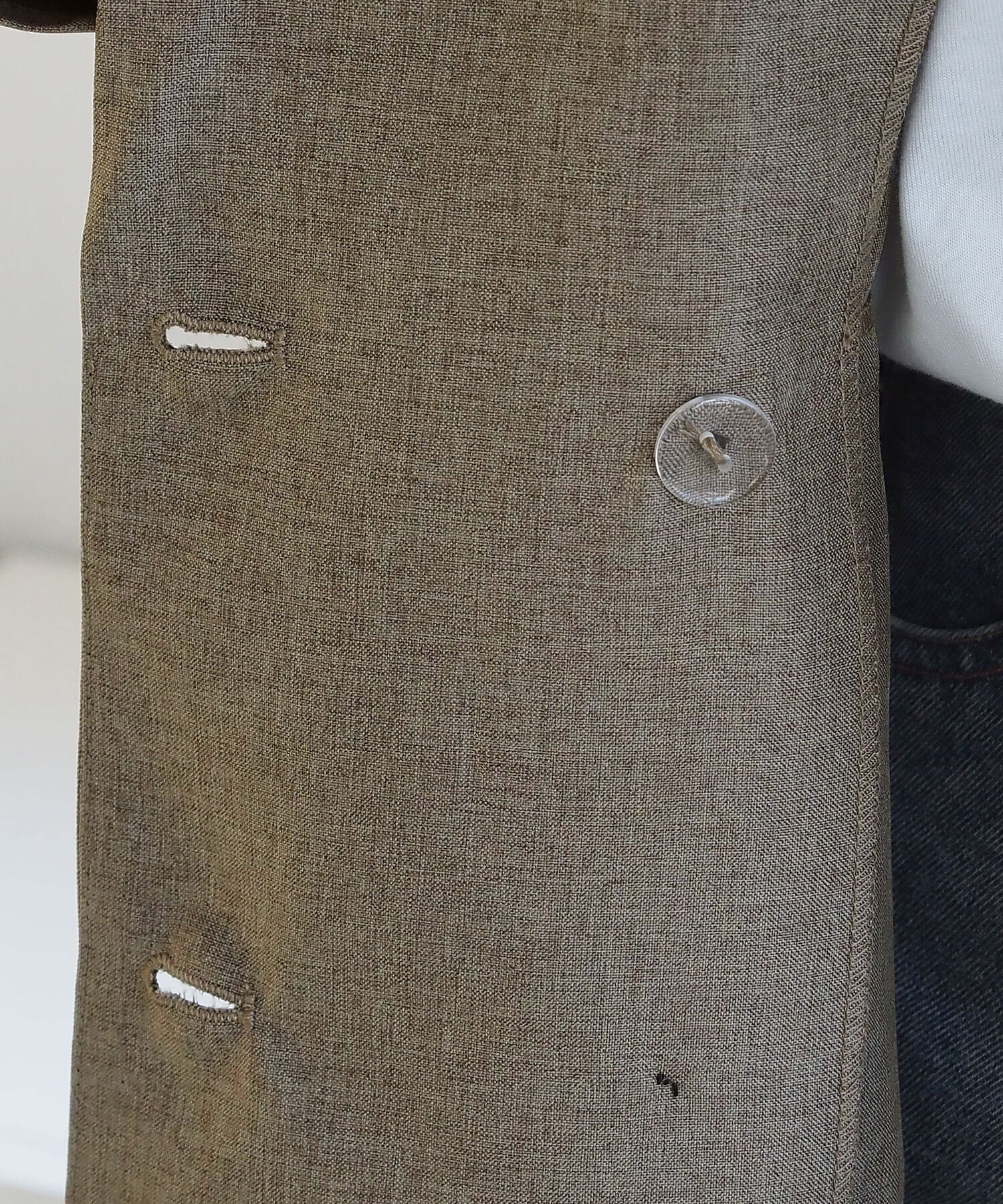 Lサイズ(ダブルボタン)は前立ての幅が広い分、羽織った時にゆったりとした着心地になります。