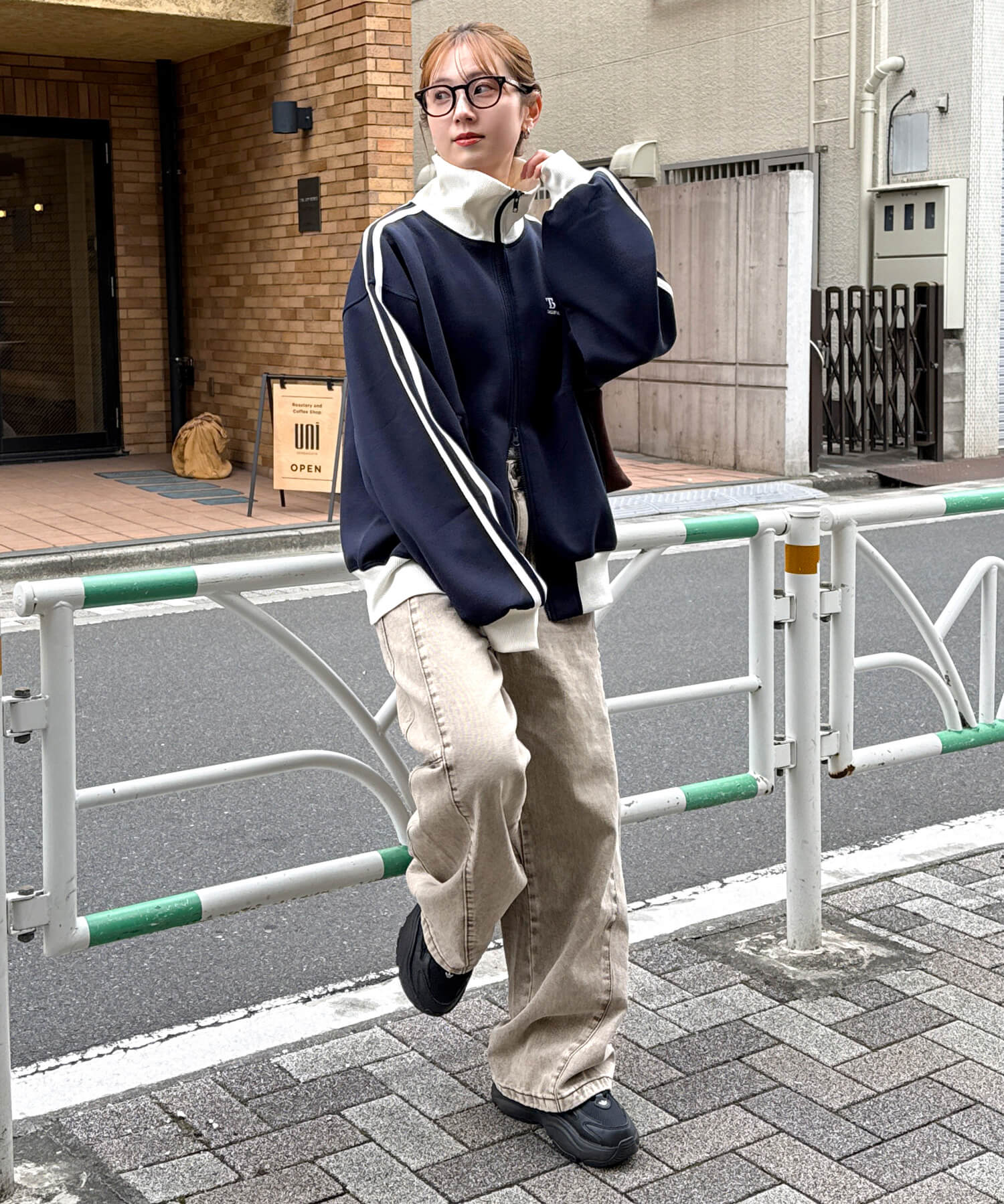 ・コーディネートの主役になるバイカラーのトラックジャケットです。