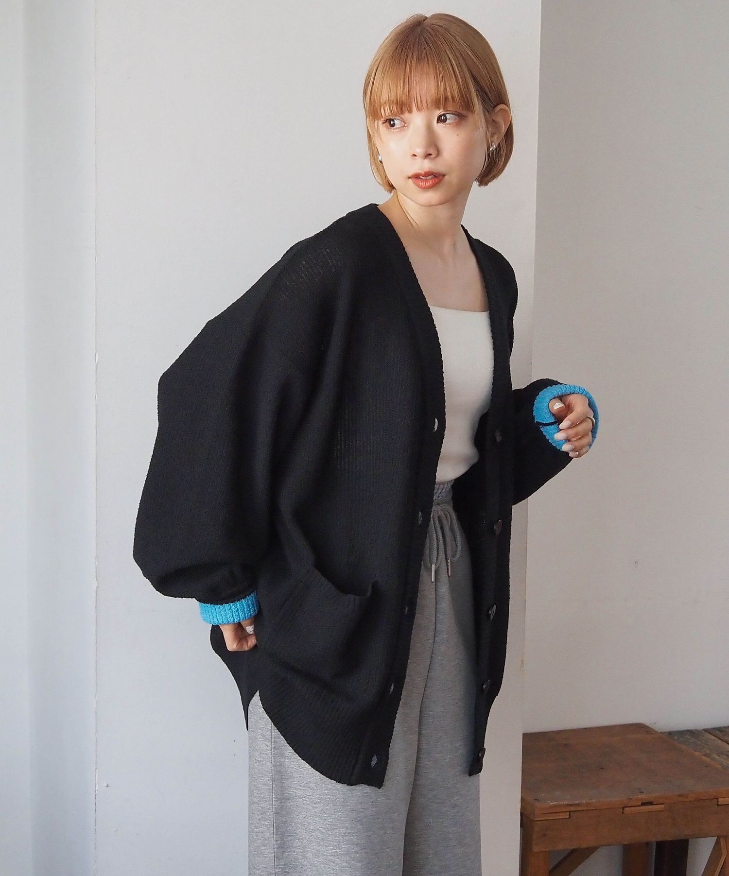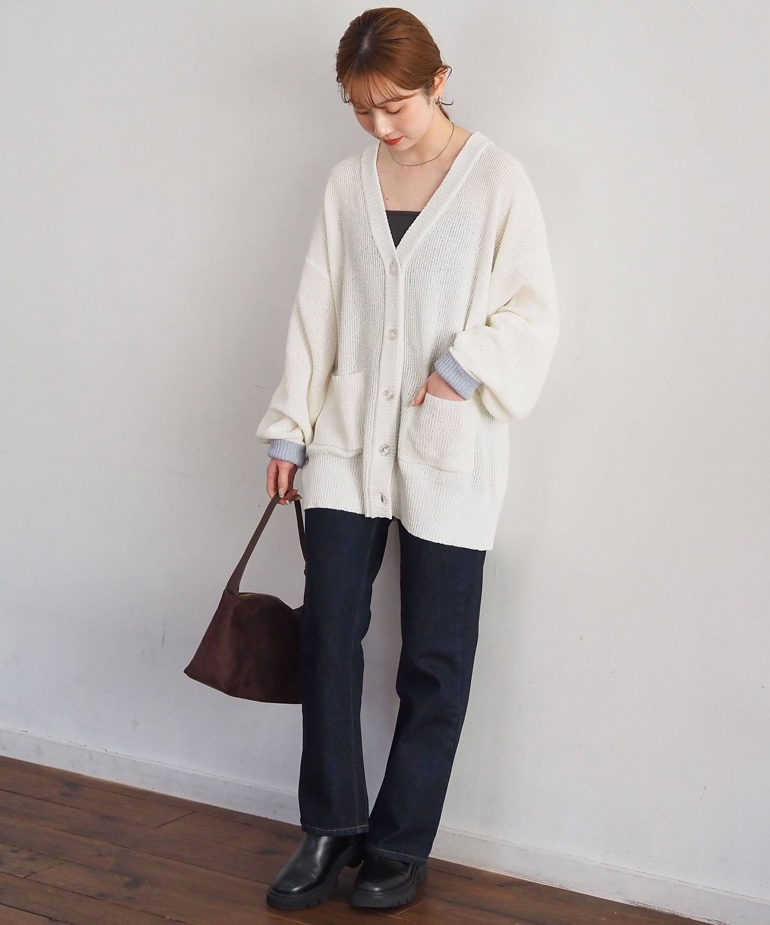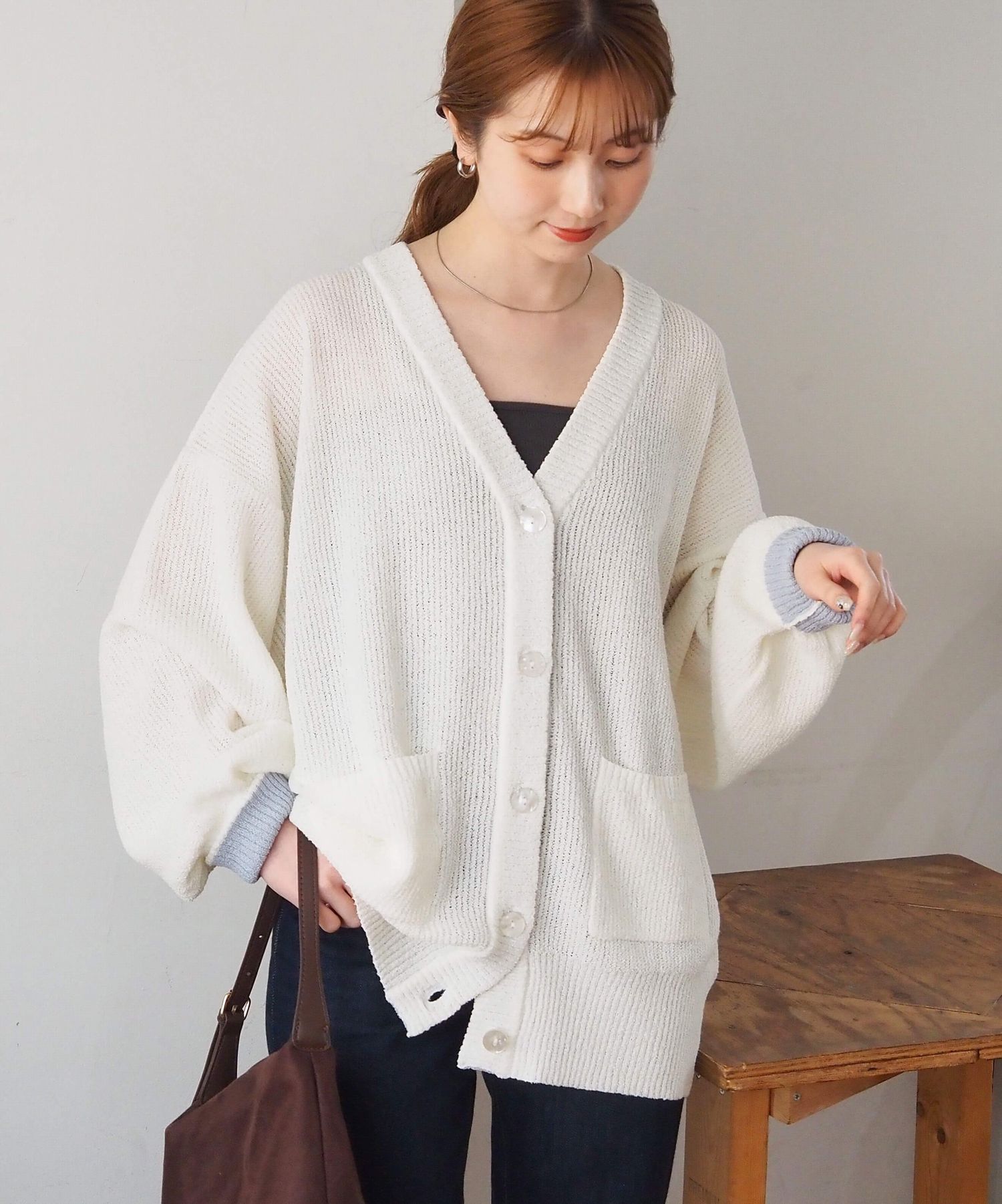 ・春らしい軽い編地が魅力のBIGカーディガンです。