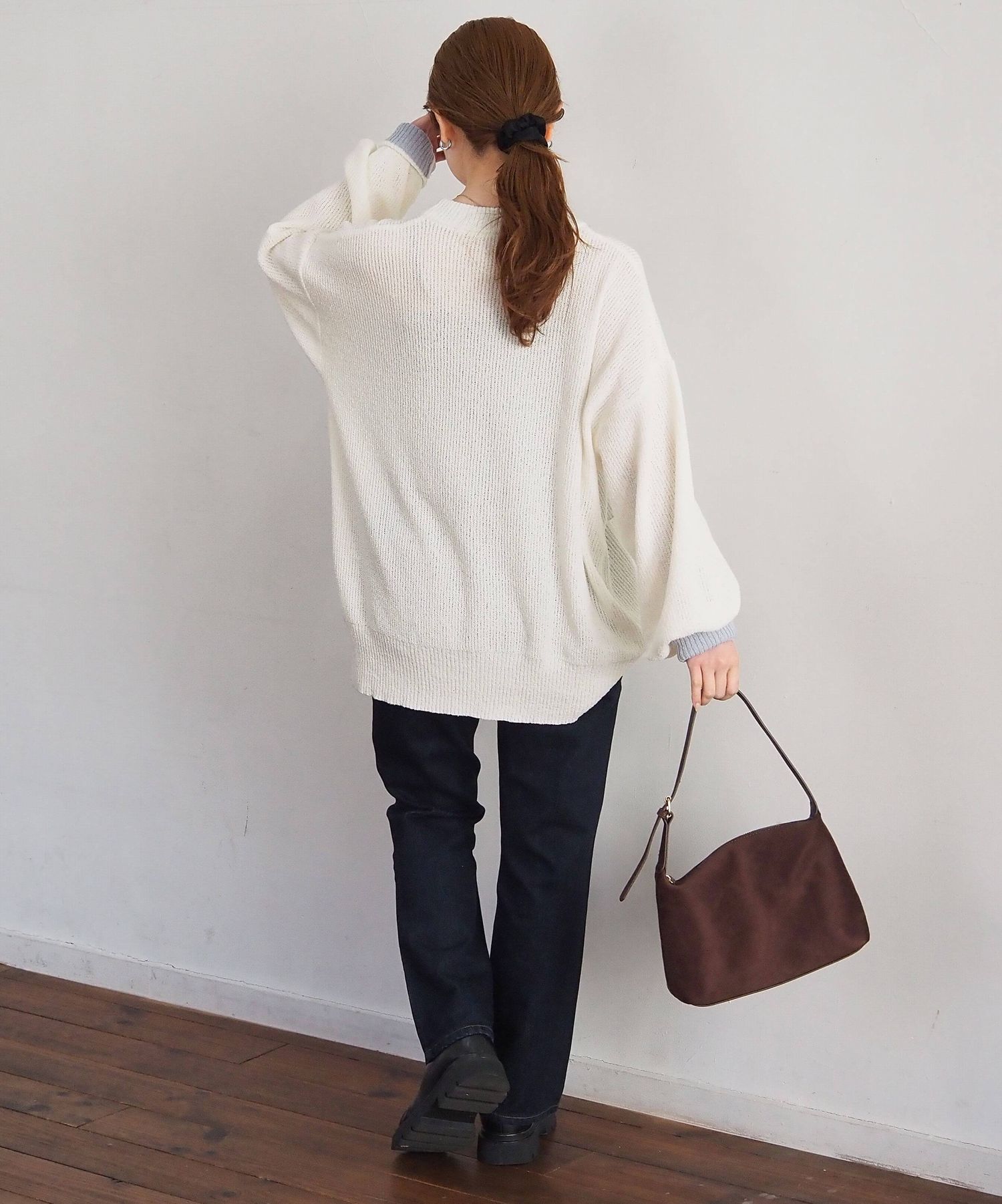 ・裾のリブがすっきりとしたシルエットを作るので、ナロースカートなどタイトなボトムとも好相性です。