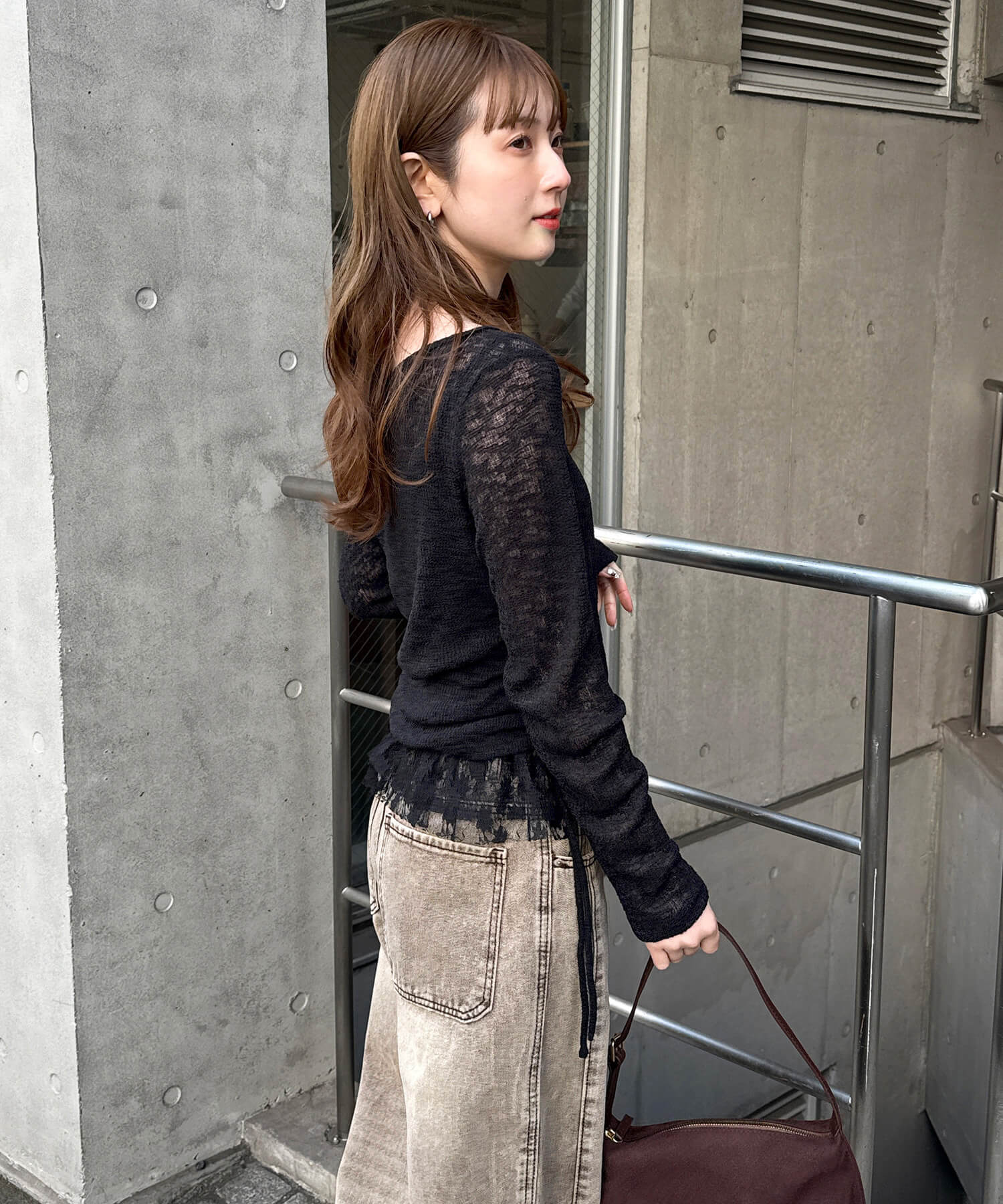 シアーカットソー×裾レースキャミソールのセットアイテム♪