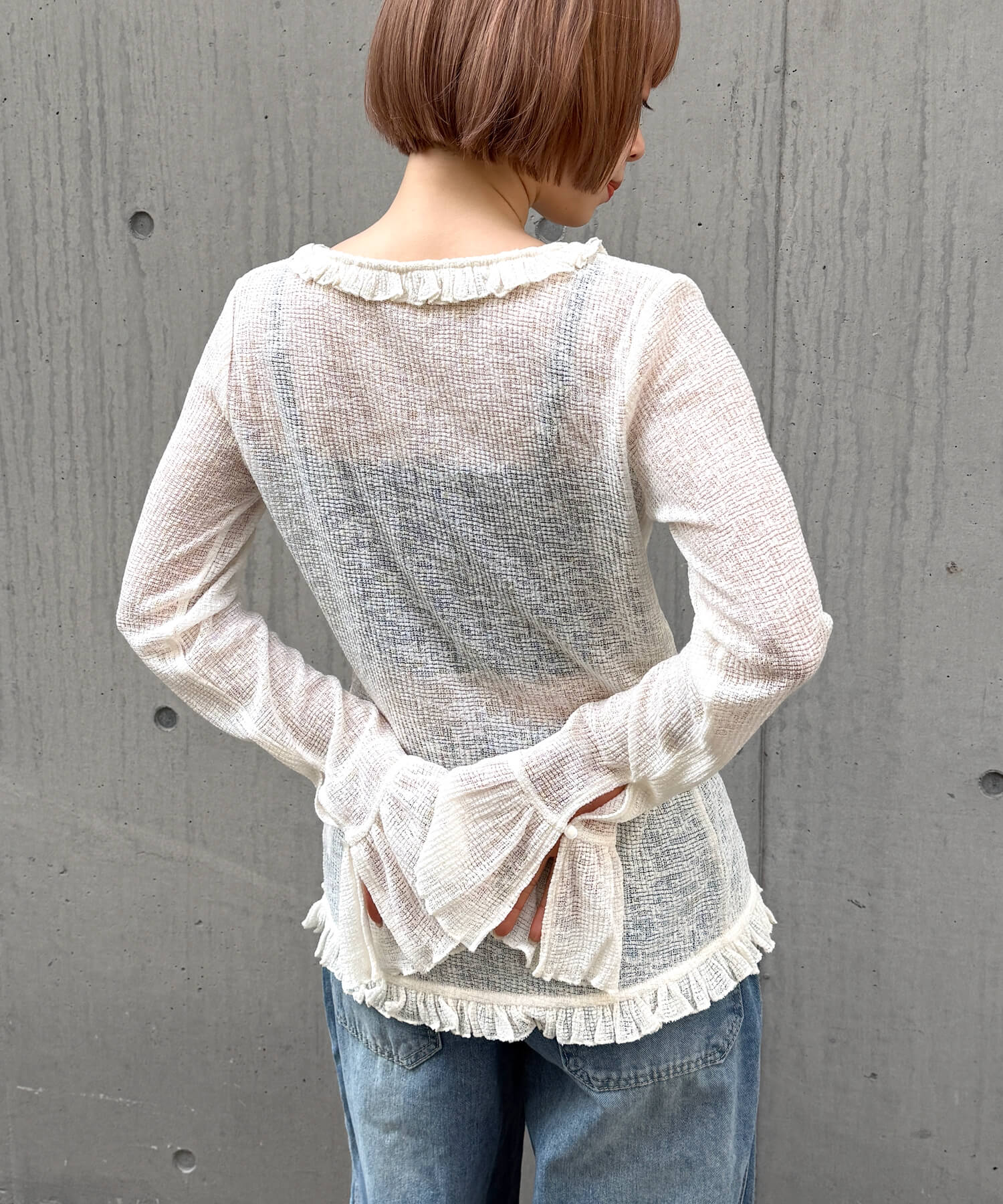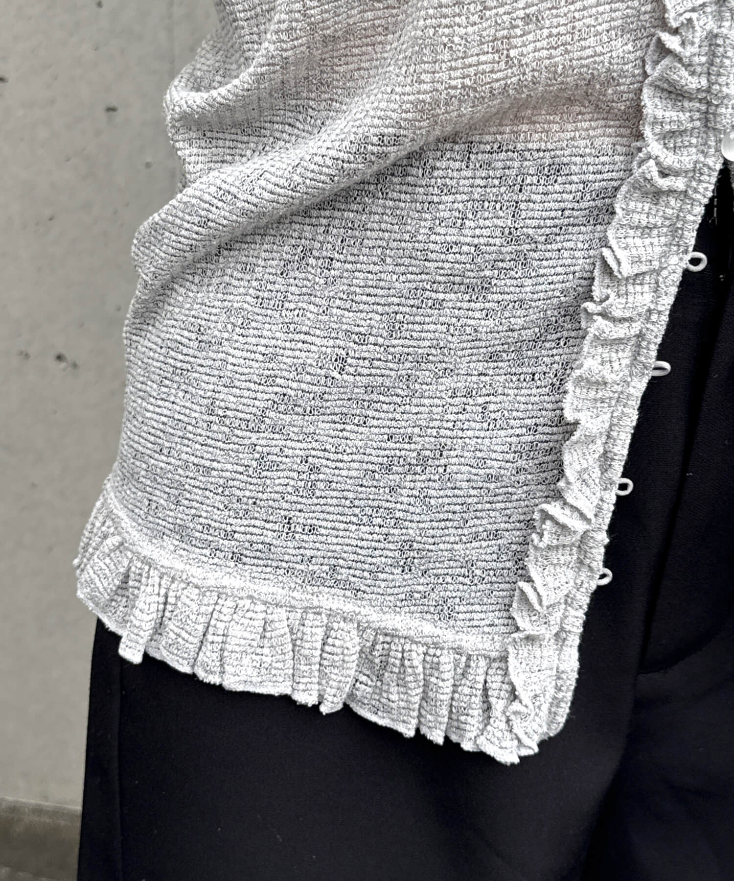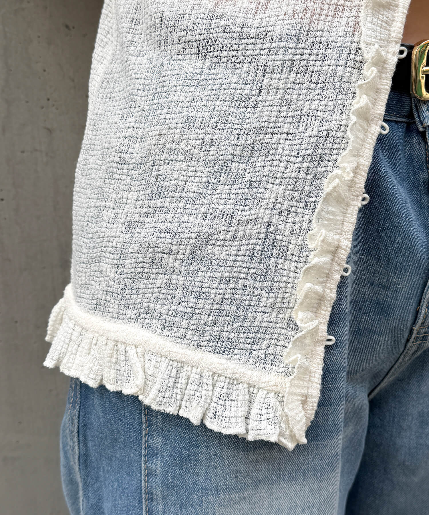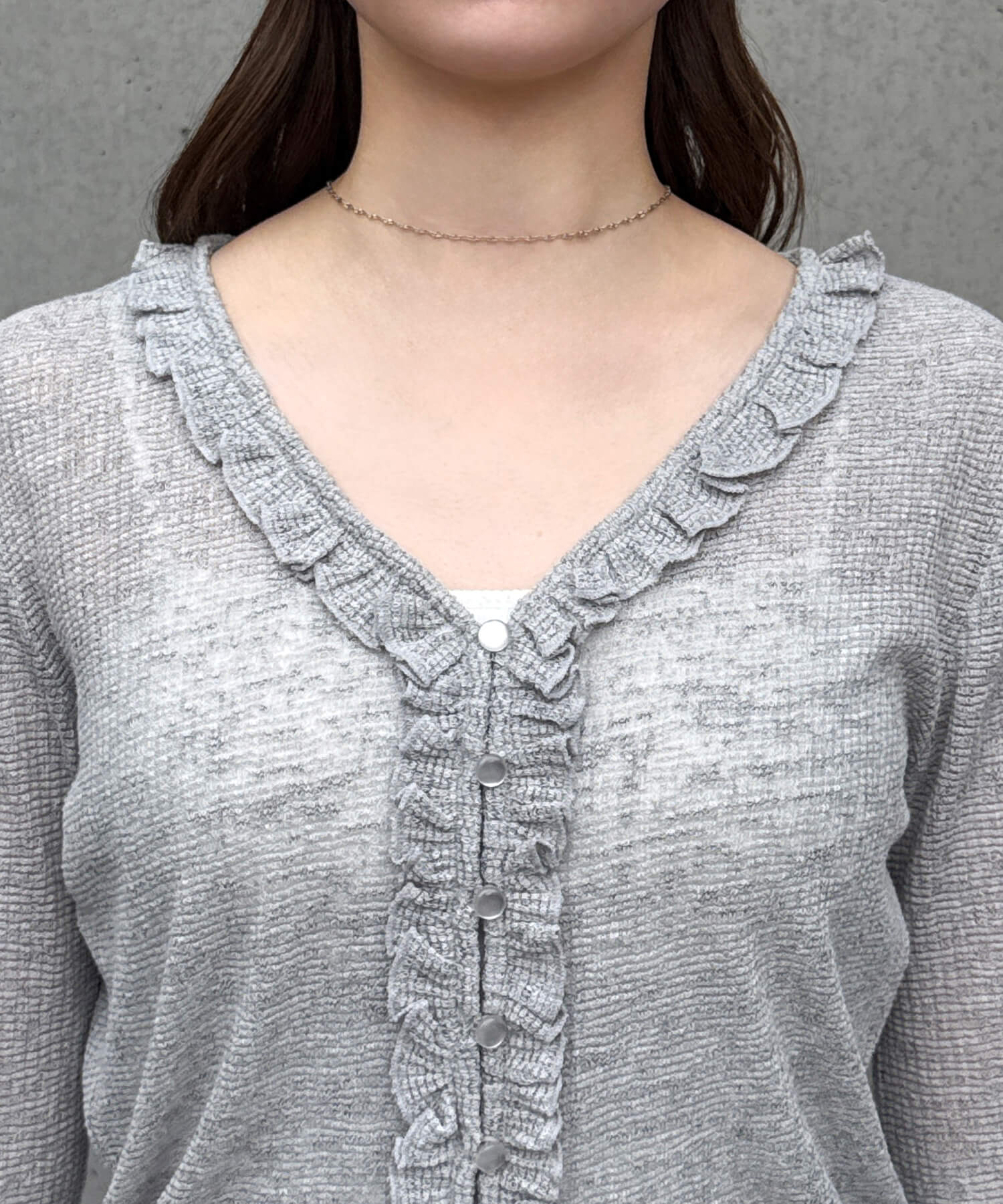 ・フェミニンなフリル使いと甘過ぎないディティールが効いたデザインカーディガンです。