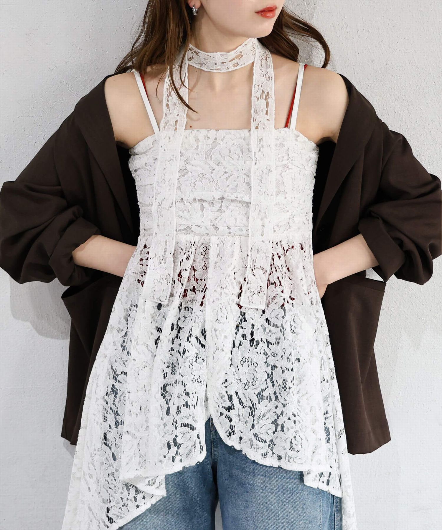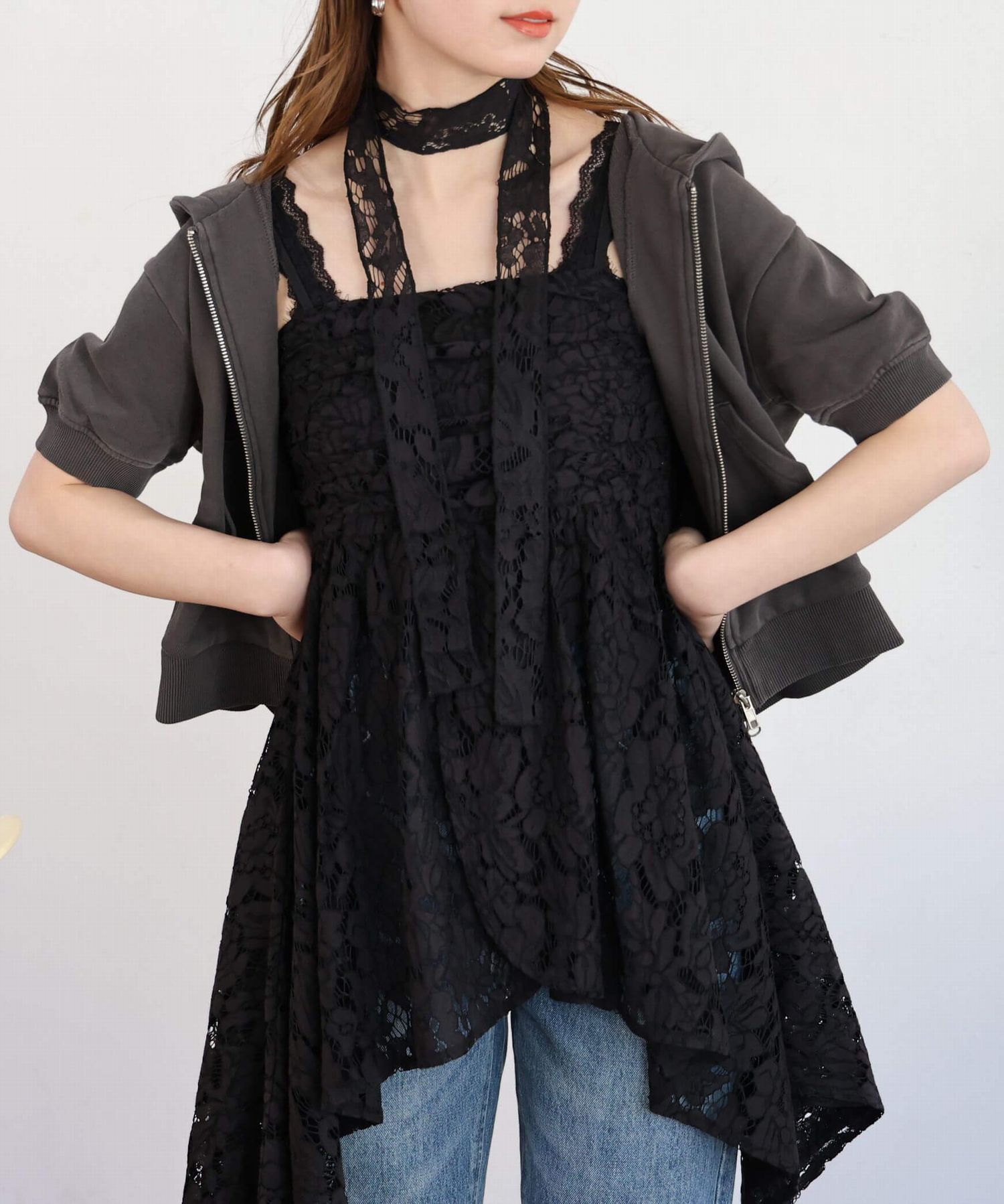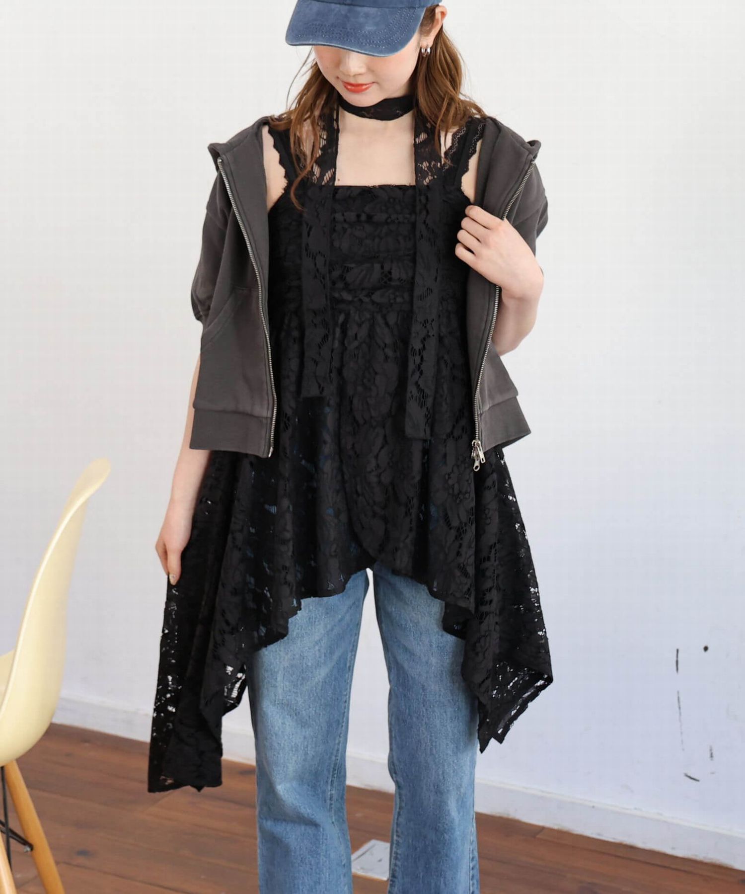 ※当アイテムはLサイズ表記ですが、チョーカー付きレースキャミチュニック(品番:165T511540)のロング丈です。フリーサイズとして着用頂けるサイズ感です。