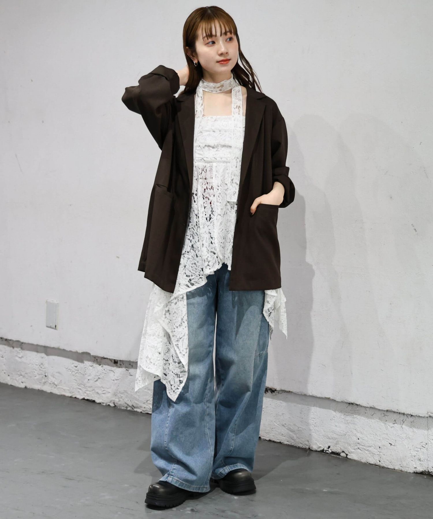 ・透け感を活かし、カラーインナーをポイントにしたコーディネートも楽しめます。