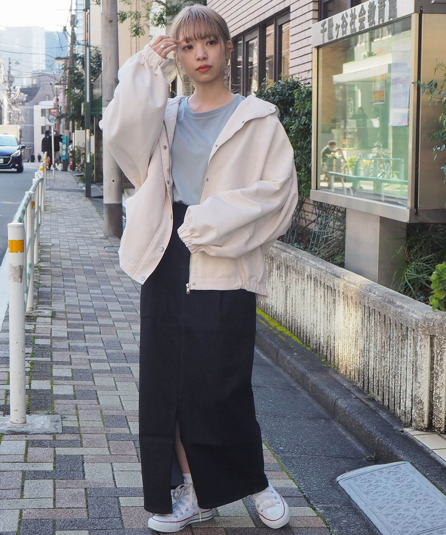 ・また、裾にはシルエットを調節できるボタン付きで、幅広いアイテムと合わせていただけます。