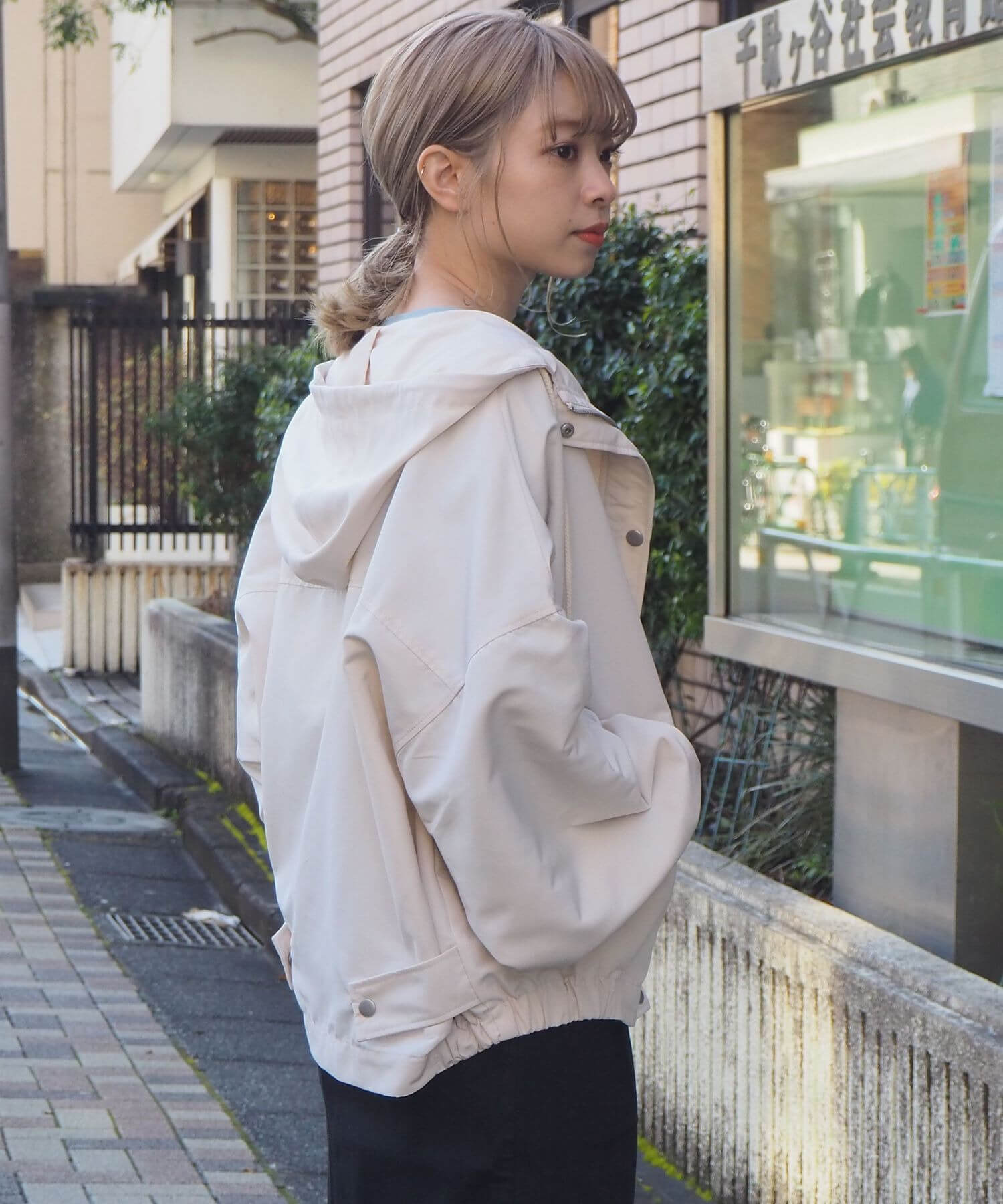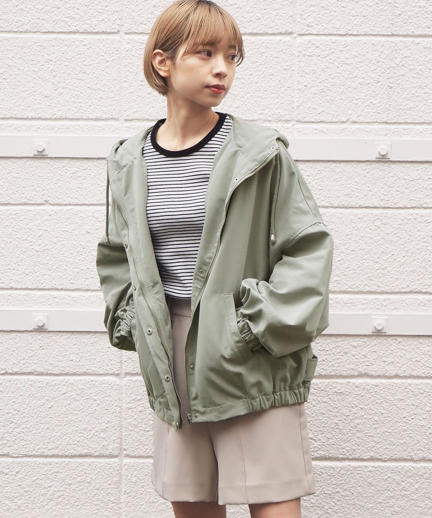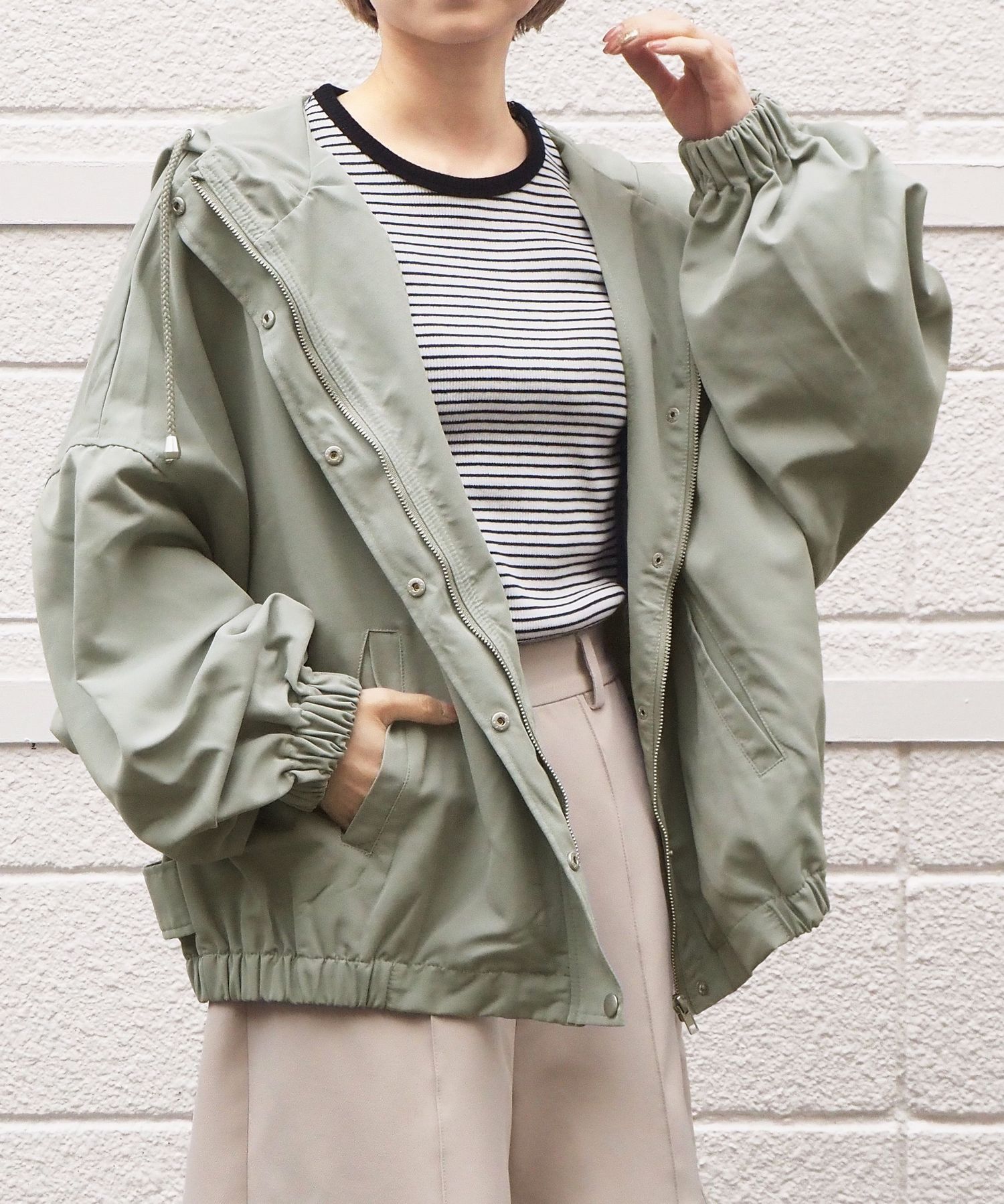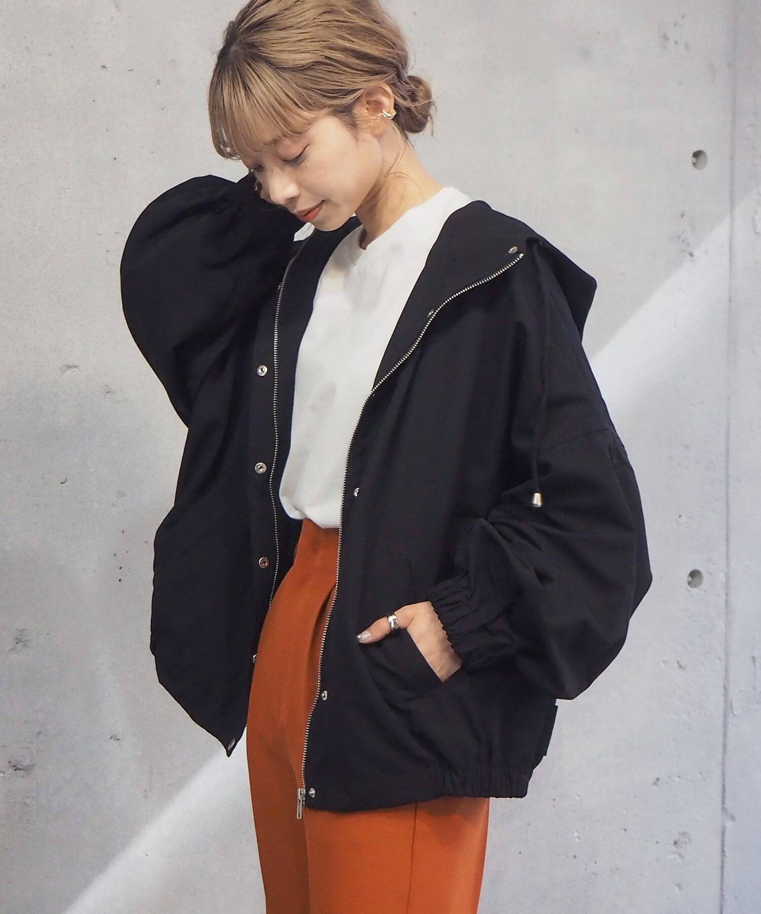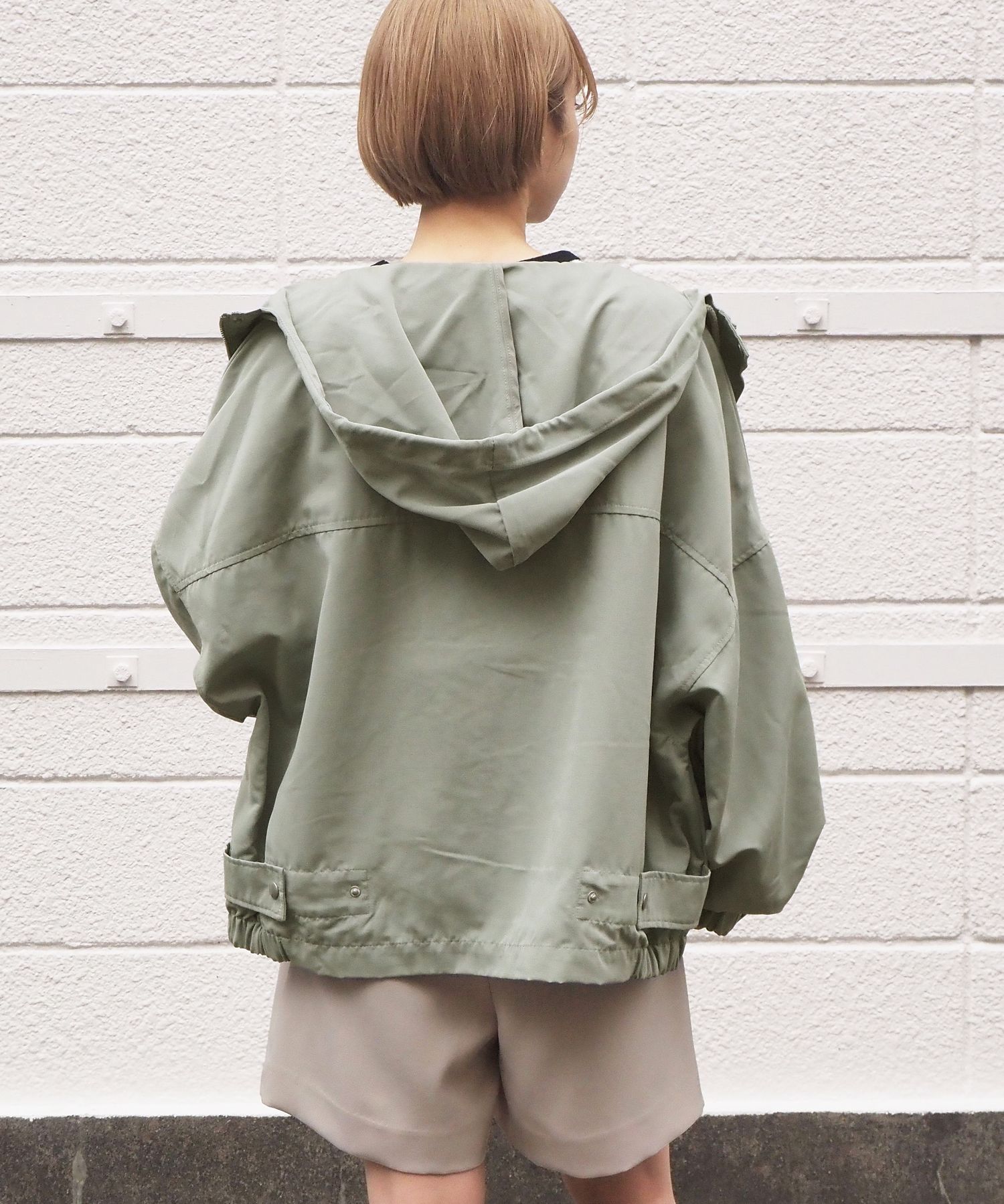 ・ジップを開いて着用していただくと、フードが広がり華奢見え効果大◎