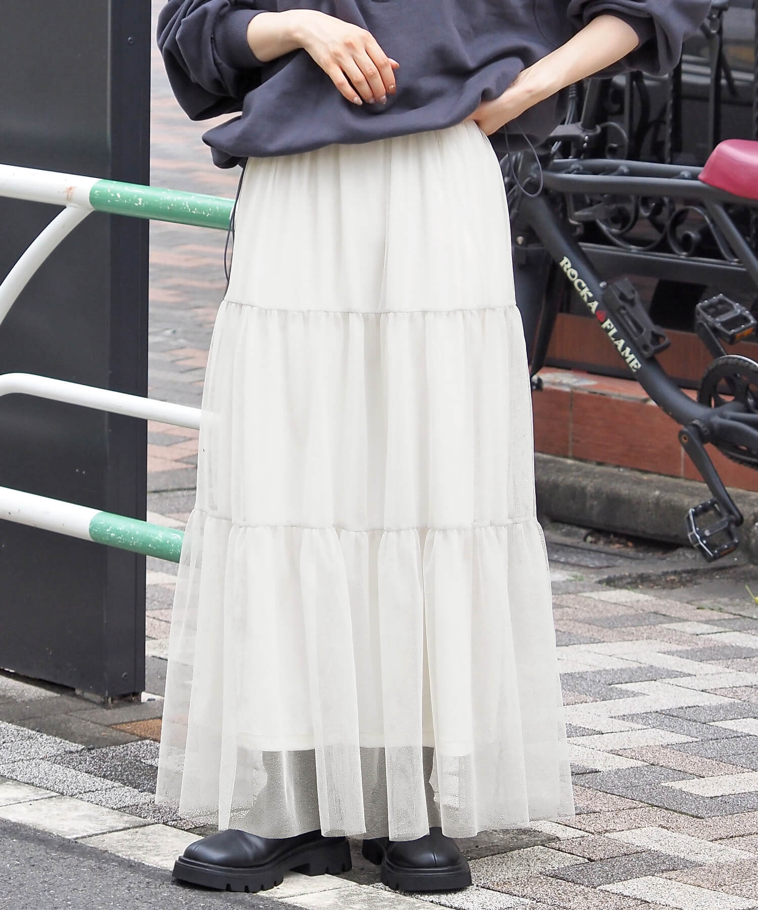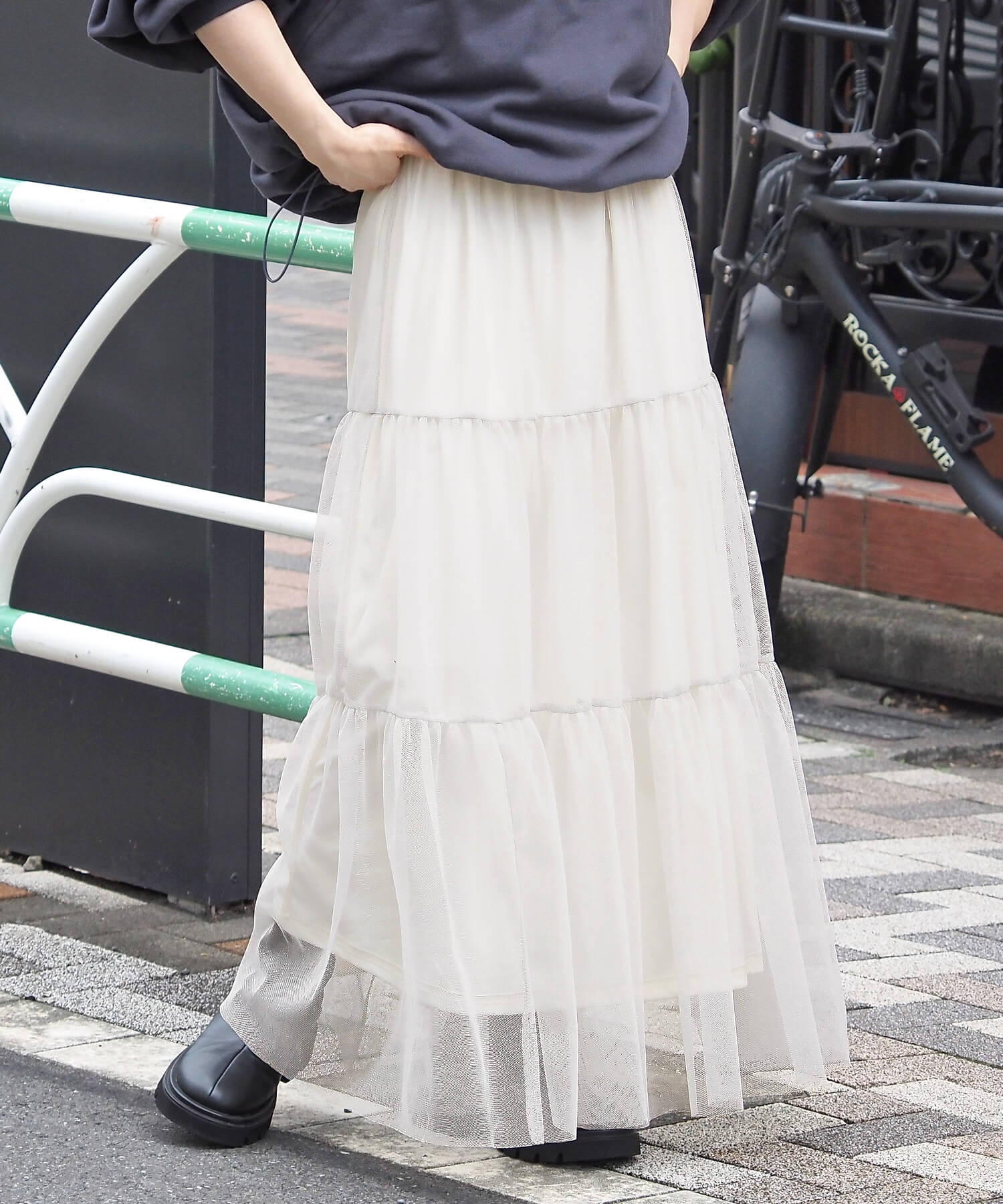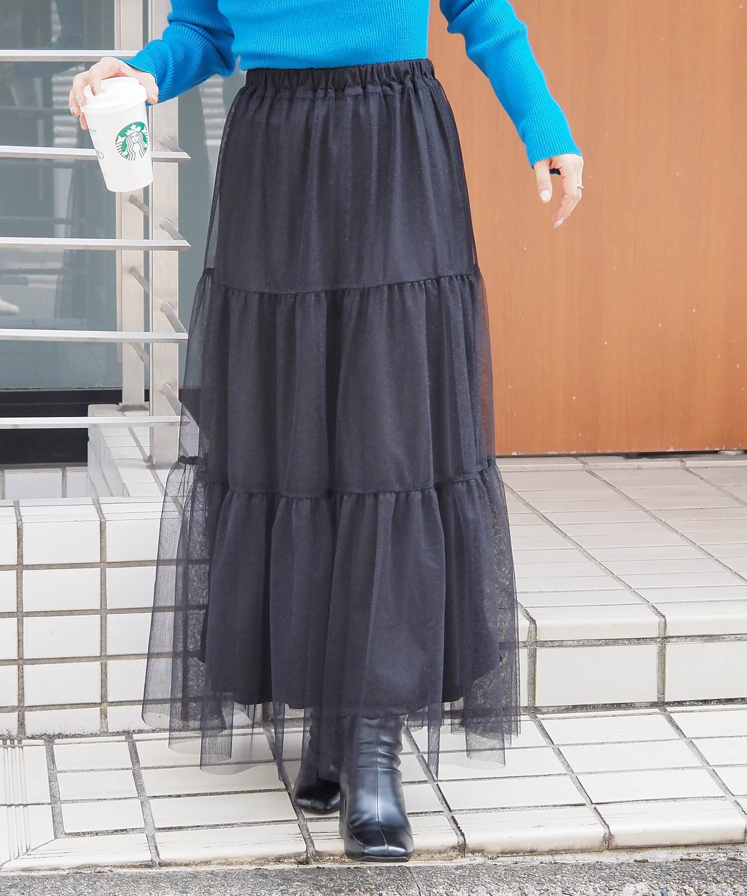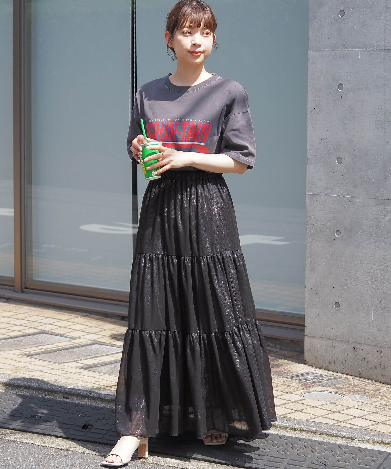 雰囲気の違う生地が選べるティアードスカート。コーディネートで使い分けもおすすめ♪