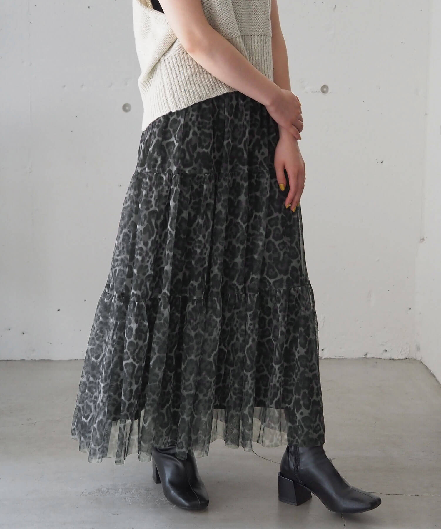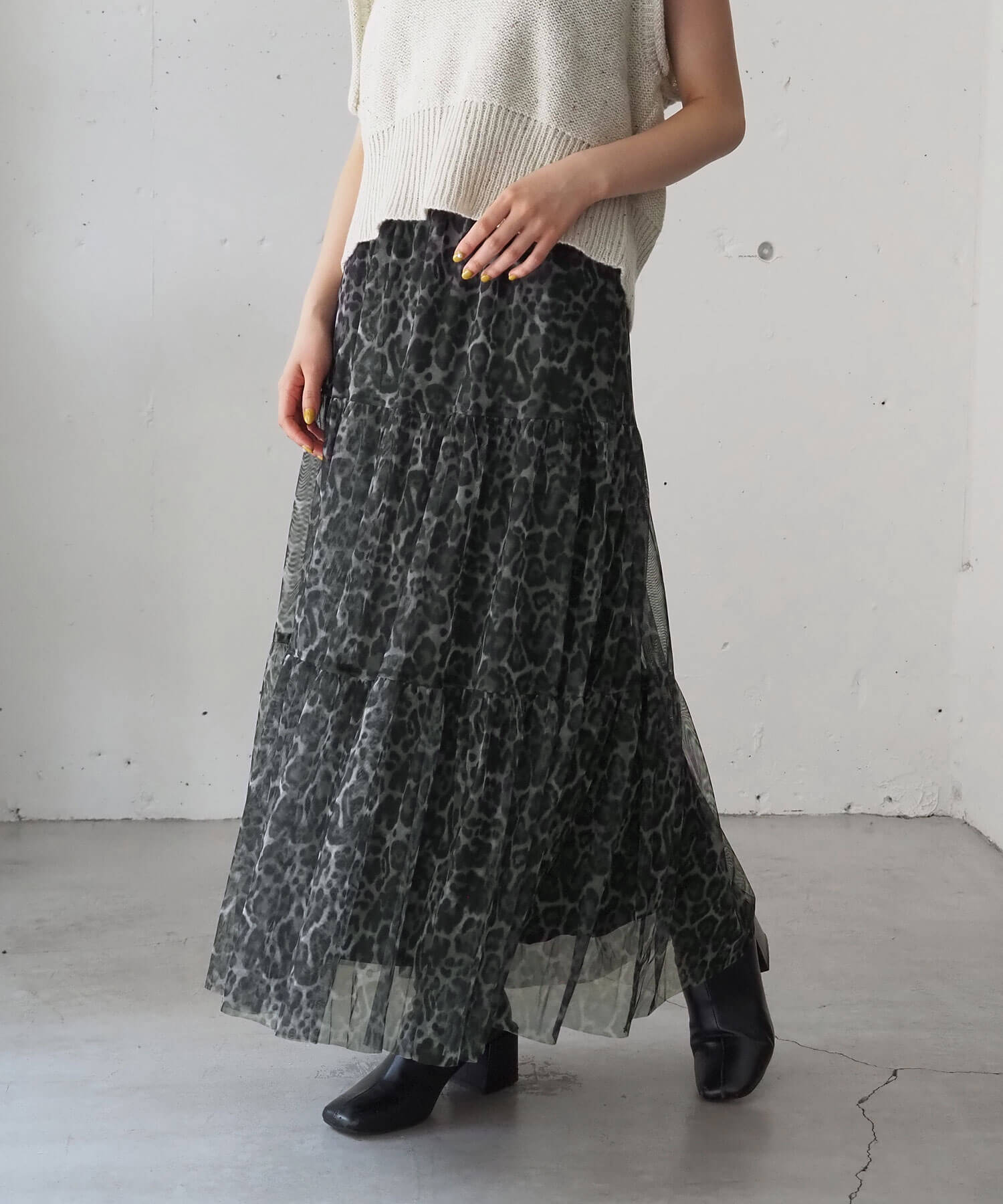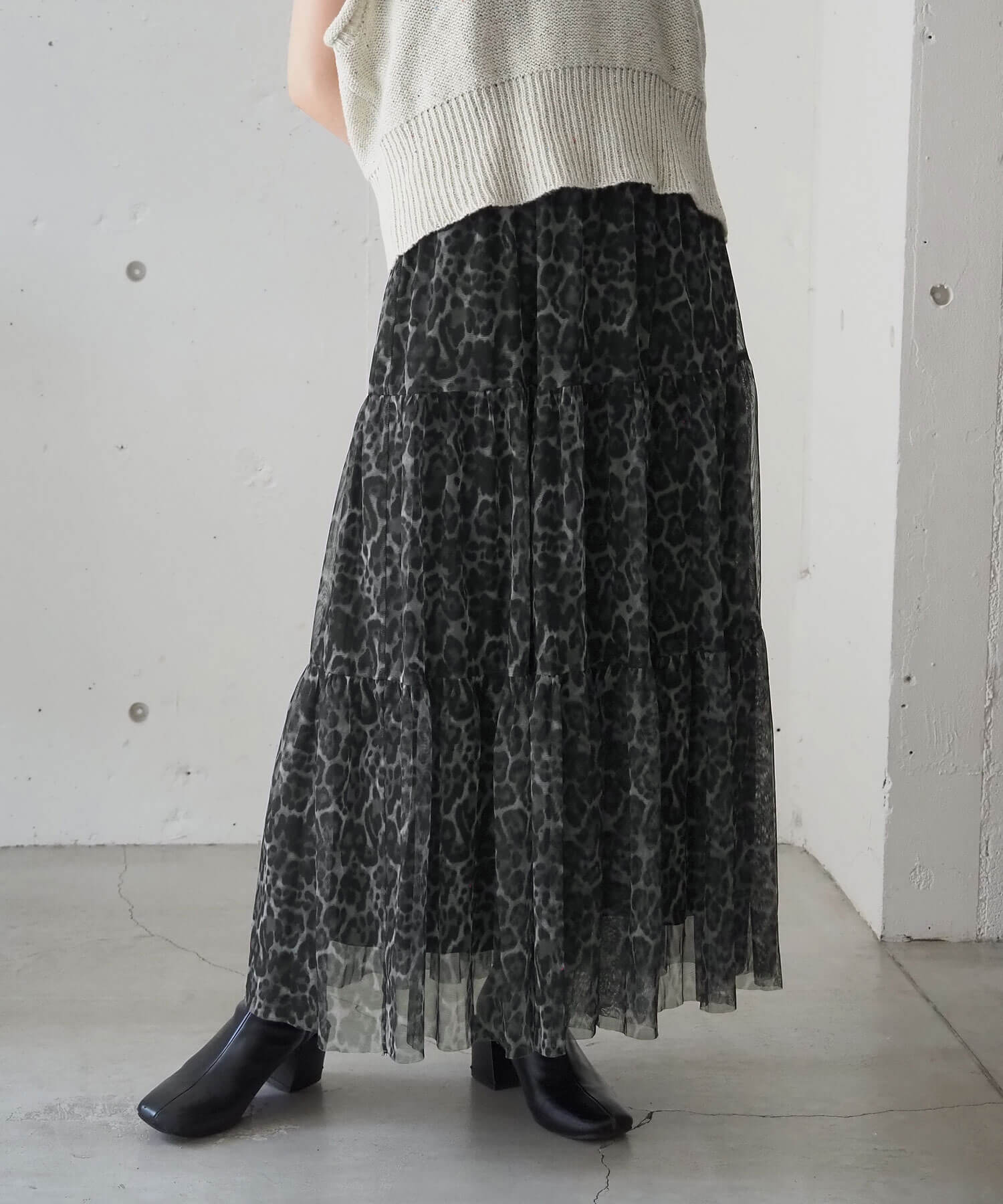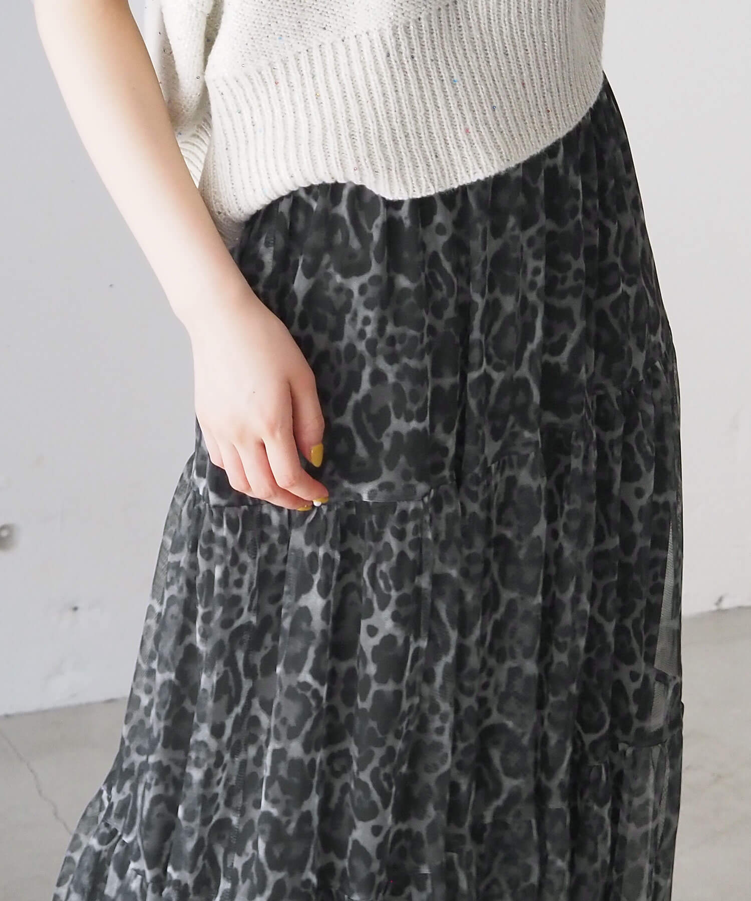 ブラック系その他4…レオパード柄チュール生地