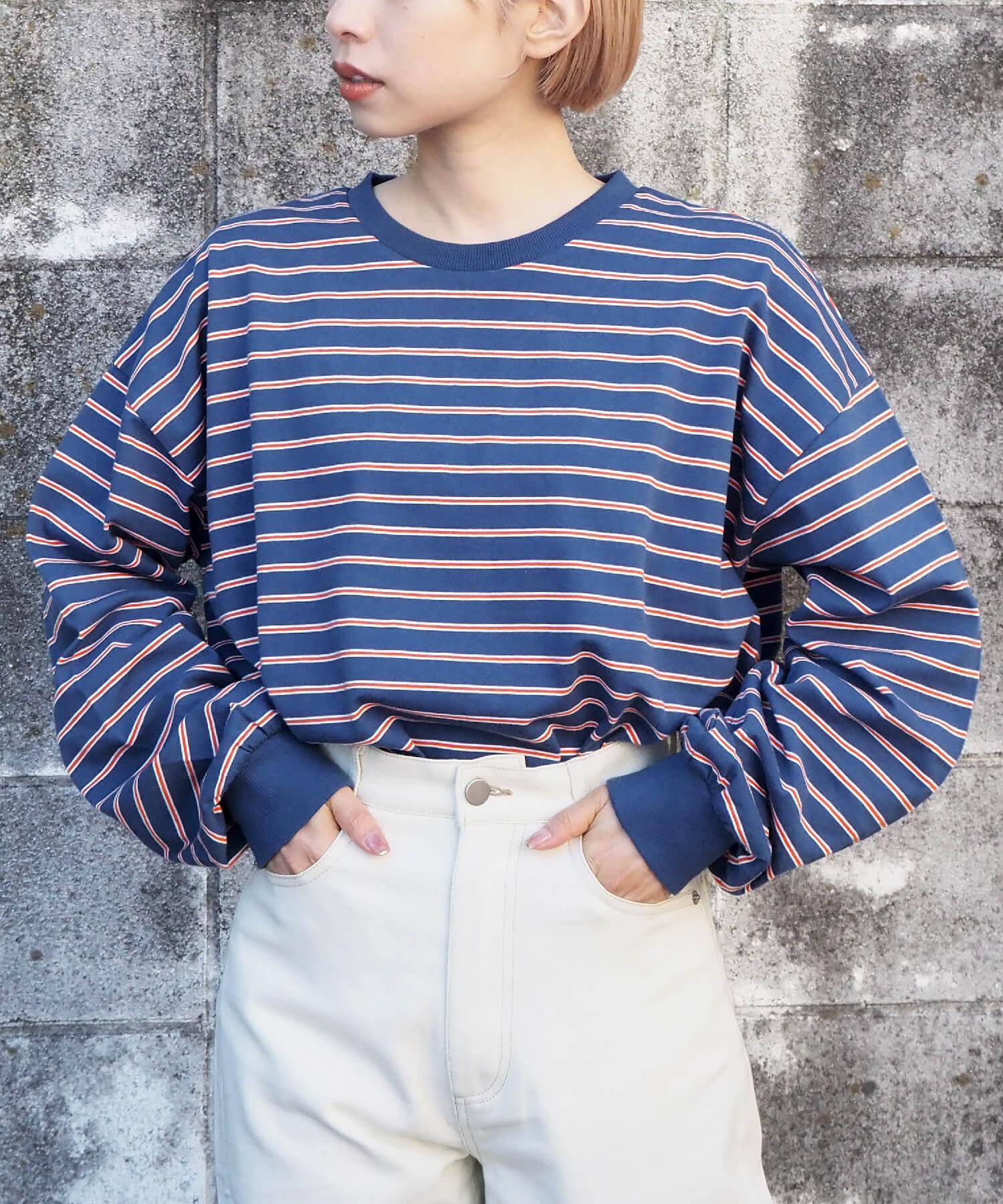 コーディネートに映えるオーバーサイズはボトムを選ばず、シンプルな着こなしも自然とこなれ感が出ます◎